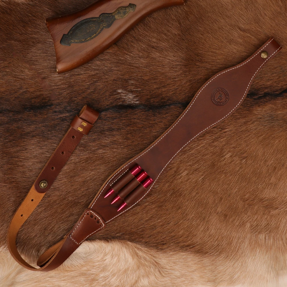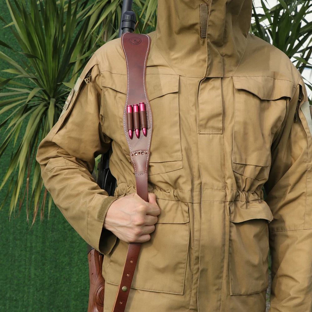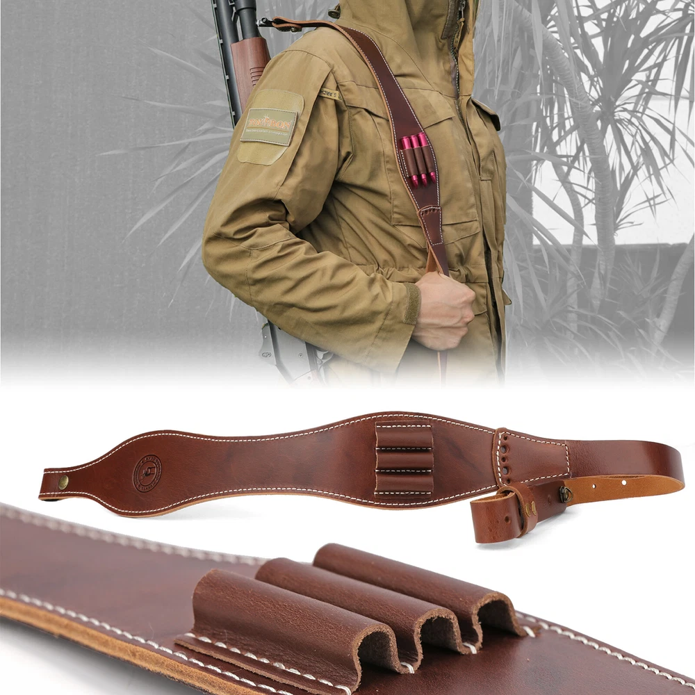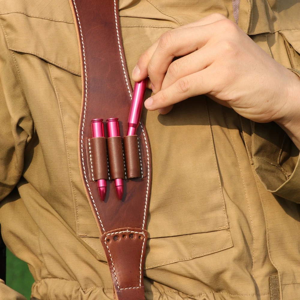 Leather Rifle Sling 308 Bullets Holder Finger Rest Strap-Clearance Sale-TOURBON