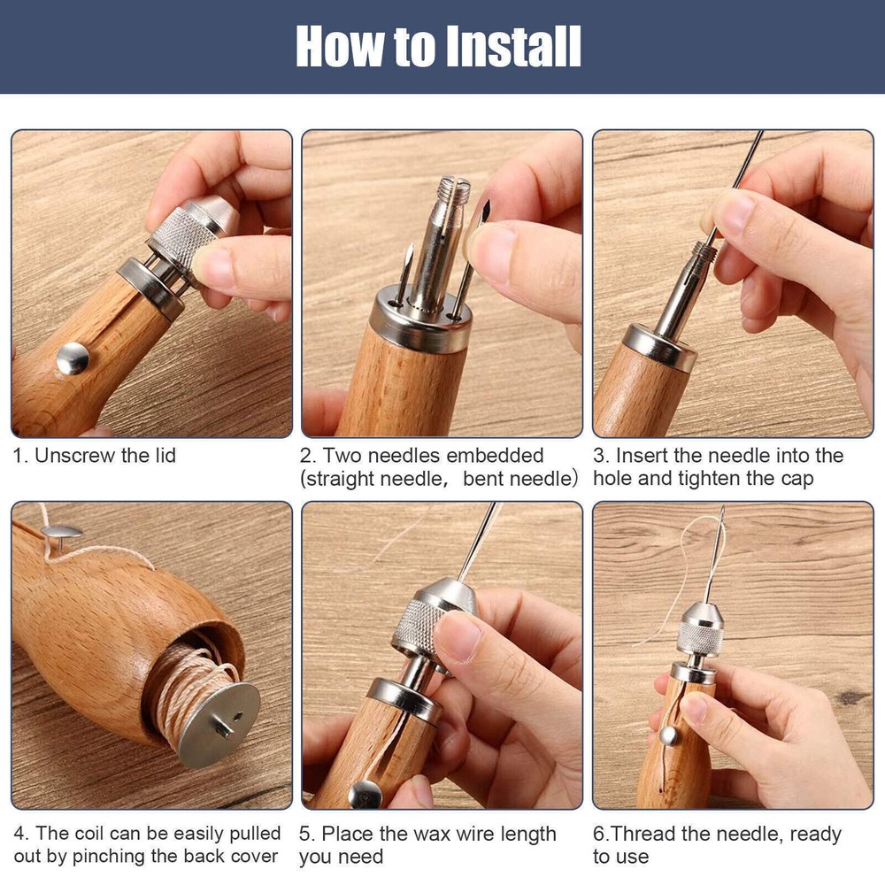 Product Description Sewing Awl Needle Repair Tools Kits for Leather Sail Canvas Features: Simple installation steps: remove the wire wheel with a screwdriver to bind the wax wire, the wax wire less than 0.6mm / 0.024 inches can be ground off by the reserved wire hole and thread along the wire groove; while the waxed hemp wire exceeding 0.8mm cannot be used. It needs to pass through the reserved thread hole, which can be directly extended to the needle tip and thread, and finally tighten the needle lock with a needle wrench, and it is ready to use. Convenient for you to store some parts: The handle part of the leather hand sewing machine can be separated, so you can store some small accessories such as needles, awl adjustment tools, etc., small enough to fit in your pocket, or you can also store in a tool bag. Multiple Uses: This leather hand stitcher is suitable for quick repair of belt lock seams, DIY crafts, leather, heavy fabrics, canvas, bags, and other stitched items, repairing military uniforms, leather shoes, leather bags, tents, camping gear, sailboats, saddles, sunshades Canopy, tarp repair, hunting and fishing gear, etc. Specifications: Type: Leather Hand Sewing Machine Model: Type B Color: Brown, Green Brown Material: Steel + Wooden Handle Size: 115x37.5mm (4.53x1.48in) Application: Leather/Canvas Items Package Includes: 1PCS Package B Split 1 x Hand Sewing Machine 1 x Spool 1 x Black Wax Line 1 x Small Screwdriver 1 x Tight Needle Wrench 1 x 45mm Short Tapered Needle 1 x 54mm Long Tapered Needle Shipping Returns Contact Us Payment 1. Items sent from US warehouse. 2. Receiving time = Processing time + Shipping time. 3. Processing Time: Around 1-2 business Days. 4. Shipping Time: 3-5 business day. It may have a little delay during some holiday (such as Christmas), any problem, please feel free to contact. Always believe we can figure things out with communication, if it comes to return, the pacakge must be intact and the same as you receive. If you have any questions, please feel free to email our service specialists 24 Hours a Day, 7 Days a Week. We will reply you ASAP. Return/refund is accepted within 30 days after the buyer receives the item. NO exchange will be accepted after 30 days from the date when the item is received. Please contact us first before returning your product!!! If you have any questions, our Customer Service staffs welcome you to email us. We strive to answer all questions and resolve any problems as quickly as possible. We care about our valued customers, and will always try to help you. So if you have any problems, You can contact us 7*24, we will reply at the first time. We accept all verified payments from ebay. Orders will be shipped after receiving cleared payment. Shipping 1. Items sent from US warehouse. 2. Receiving time = Processing time + Shipping time. 3. Processing Time: Around 1-2 business Days. 4. Shipping Time: 3-5 business day. It may have a little delay during some holiday (such as Christmas), any problem, please feel free to contact. Returns Always believe we can figure things out with communication, if it comes to return, the pacakge must be intact and the same as you receive. If you have any questions, please feel free to email our service specialists 24 Hours a Day, 7 Days a Week. We will reply you ASAP. Return/refund is accepted within 30 days after the buyer receives the item. NO exchange will be accepted after 30 days from the date when the item is received. Please contact us first before returning your product!!! Contact Us If you have any questions, our Customer Service staffs welcome you to email us. We strive to answer all questions and resolve any problems as quickly as possible. We care about our valued customers, and will always try to help you. So if you have any problems, You can contact us 7*24, we will reply at the first time. Payment We accept all verified payments from ebay. Orders will be shipped after receiving cleared payment. You may also like Brushed 60A ESC Waterproof Speed Control 2S-3S LiPo for 1/10 RC Cars Boat 18.89 USD 28-36.5mm 1.5mm Thick Flat Sapphire Watch Glass Crystal Replacement Repair Parts 8.59 USD 19.99 USD 10Pack Clear Battery Storage Case Protective Box Organizer for GoPro Hero 10 9 b 9.78 USD 19.99 USD High Quality Ebony Gold Plated Classical Guitar Chords Tuners 3R 3L Machine Head 23.89 USD 100PCS stem extenders/extensions for repairing Extending watch crown stems 12.78 USD 105Pcs Servo Plug Male Female JST JR Connector Crimp Pin Wire for RC Car Boat 13.89 USD powered by
