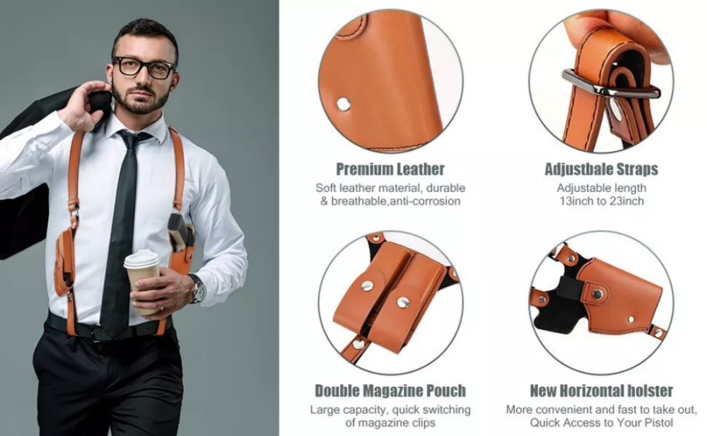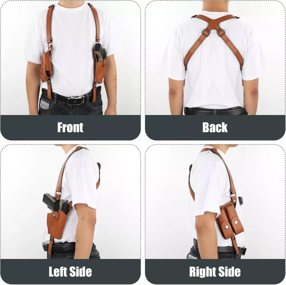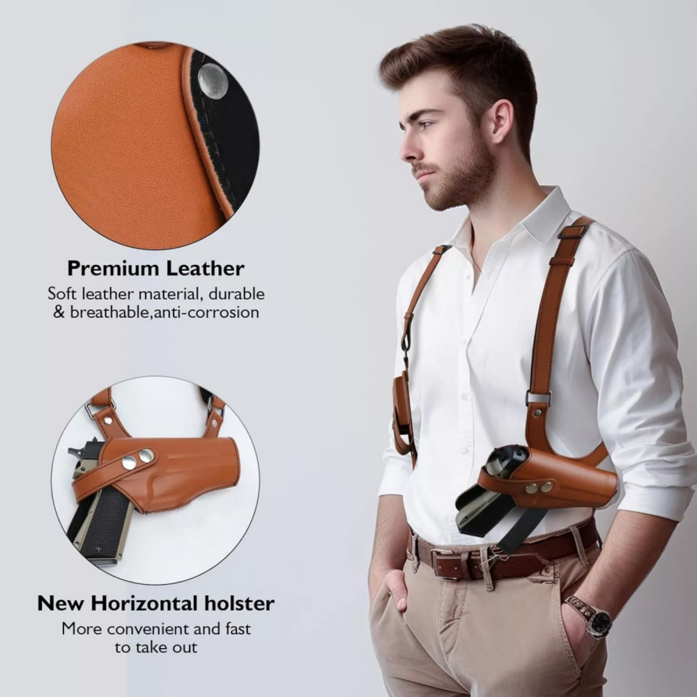 480 Pocket Coins Storage Book High-capacity Collection Album Folder Money/Holder 15.19 USD 15.99 USD Free shipping 5% off 2pc Headlamp Flashlight 1200 Lumen LED Rechargeable Headlight White Red Light 13.84 USD 14.57 USD Free shipping 5% off Indestructible Dog Toys for Aggressive Chewers Extreme Tough Dog Toys (Beef) A+ 12.34 USD 12.99 USD Free shipping 5% off 10-PCS Thick Pyrex Glass Chillum Tobacco Pipe, Smoking pipe, Smooth One Hitter 11.27 USD Free shipping No Crumbs Kitty Kurlz Cat Toy Wear-Resistant Cat Scratching Board A+ 12.91 USD 13.59 USD Free shipping 5% off Short Fluffy Layered Stright Dark Roots Blonde Mix Synthetic Hair Wigs Women US 15.97 USD Free shipping Note: There will be some color difference between the real object and the picture, if you mind very much,please do not order , thank you! This material is Faux Leather, the texture is not as good as that of real leather, please do not order if you mind, thank you! The holster is designed for right-handed use Product Detail: Universal Fit Holster: Shoulder holster accommodates nearly every small subcompact, compact, mid-size and even full size pistols, including Glock17/17C/17L/19/20/20C/22/23, Sig Sauer P220/P226/P227/P320, Ruger P85, Beretta92FS, full sized1911's, and firearms of similar sizes. Comfortable Material: PU Leather Shoulder Holster is made of durable double-stitched leather, Lightweight, comfortable and wear resistant, thick enough to provide protection,comfort when worn for long periods. Adjustable Straps: With adjustable buckles on the shoulder strap, this gun shoulder holster can fit chest sizes up to 57". Two buckles in the belt loops can secure the holster to your belt more perfectly configured. Hidden Shoulder Holster: Great for concealed carry without adding to the waist line. Can wear this shoulder holster on a shirt or inside your jacket. You can walk, run and exercise normally, and never worry about your gun falling or walking away! Fits Most Adults: The shoulder holster is for Right-handed users. Allows you to flick up the retention strap with the back of thumb to draw the firearm quickly and effectively. Features: 1.Premium Leather Holster: Made of durable double-stitched PU leather, this gun holster is built to last through excessive wear and tear and protect your firearm from scratches.Lightweight and comfortable enough to wear all day long. 2. Adjustable Shoulder Strap:Very Size-flexible and Universal Fit. The leather shoulder holster fits chest sizes up to 57".The shoulder strap length is adjustable by using the screwdriver, you can adjust the buckle according to your body size.The screw fastened design makes the holster keep more secure than other's. 3.Adjustable Belt Tie-Down Straps:Leather double magazine pouch with retention flaps. Flap with snap keeps magazines securely in place. Two buckles in the belt loops can secure the holster to your belt more perfectly configured. The belt loop fits 2.36" (60mm) , 3.94" (100mm) belt widths, which can be adjusted according to your needs. 4.Perfect Concealment:The concealed carry holster provides an excellent range of motion at the arms and waist without any exposing risking situation. You can wear this shoulder holster on a shirt or inside your jacket Just simply remove the strap with your thumb that holds the firearm in place for the quickest draw. 5.FITS 1911 Full Size: The shoulder holster is for right-handed users. The holster has two buckle positions, and can be applied to more pistols and handguns. Compatible with Glock 17/17C/17L/19/20/20C/22/23, Sig Sauer P220, P226, P227,P320,Ruger P85,Beretta 92F, M9,M9A1, full sized 1911's and all similar sized handguns or pistols. Specifications: Type:Tactical Gun Holster Hand:Right Hand Material:PU Leather Color:Brown,Black Closure Type :Buckle Packing Included: 1Pcs Gun Shoulder Holster