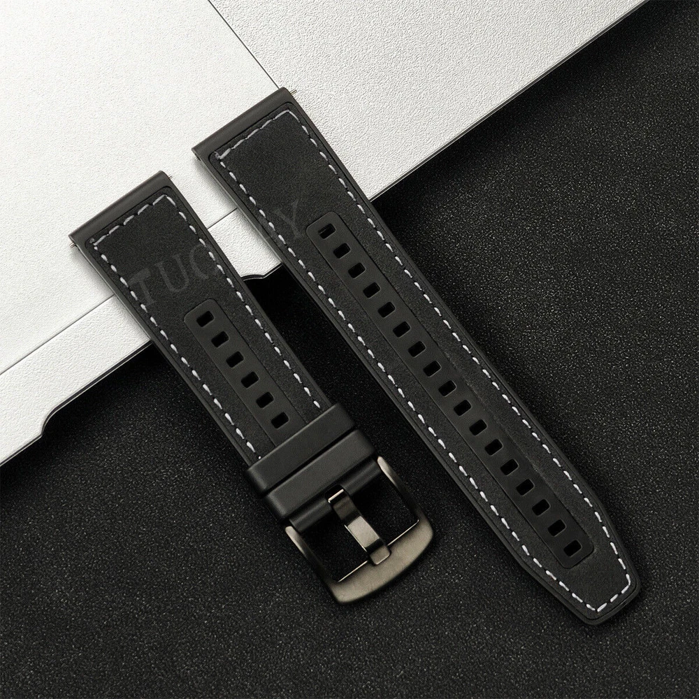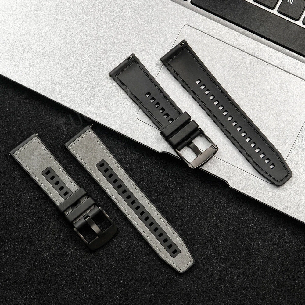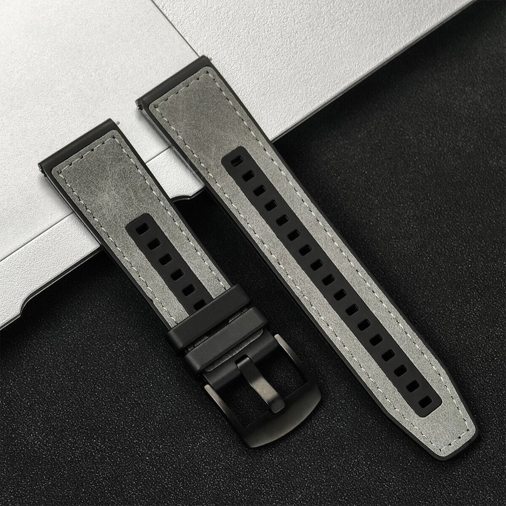 Leather Silicone Wrist Band Strap for Samsung Galaxy Watch 7 6 5 4 3 FE Active 2