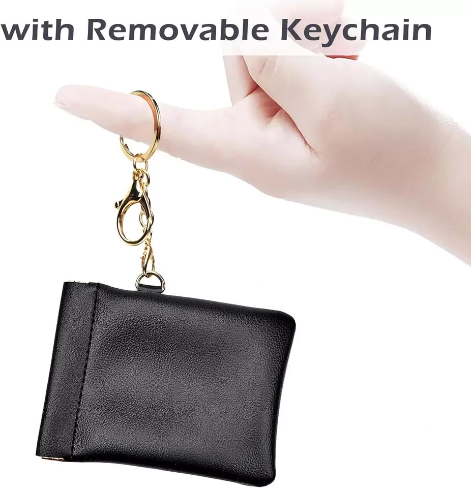 Leather Slim Coin Purse with Keychain Small Change Holder Wallet Pouch