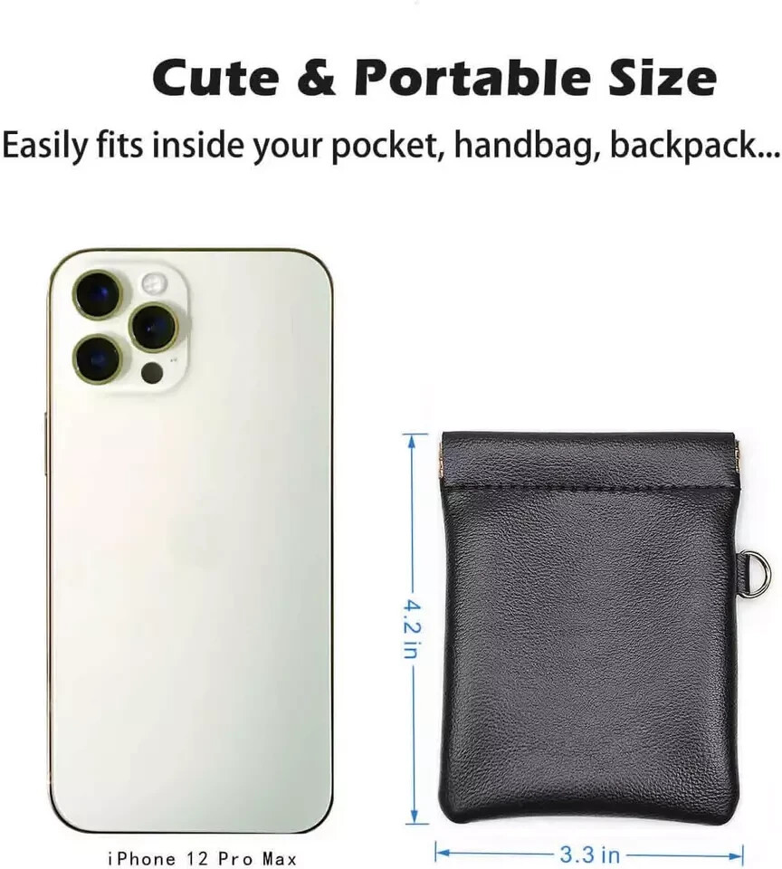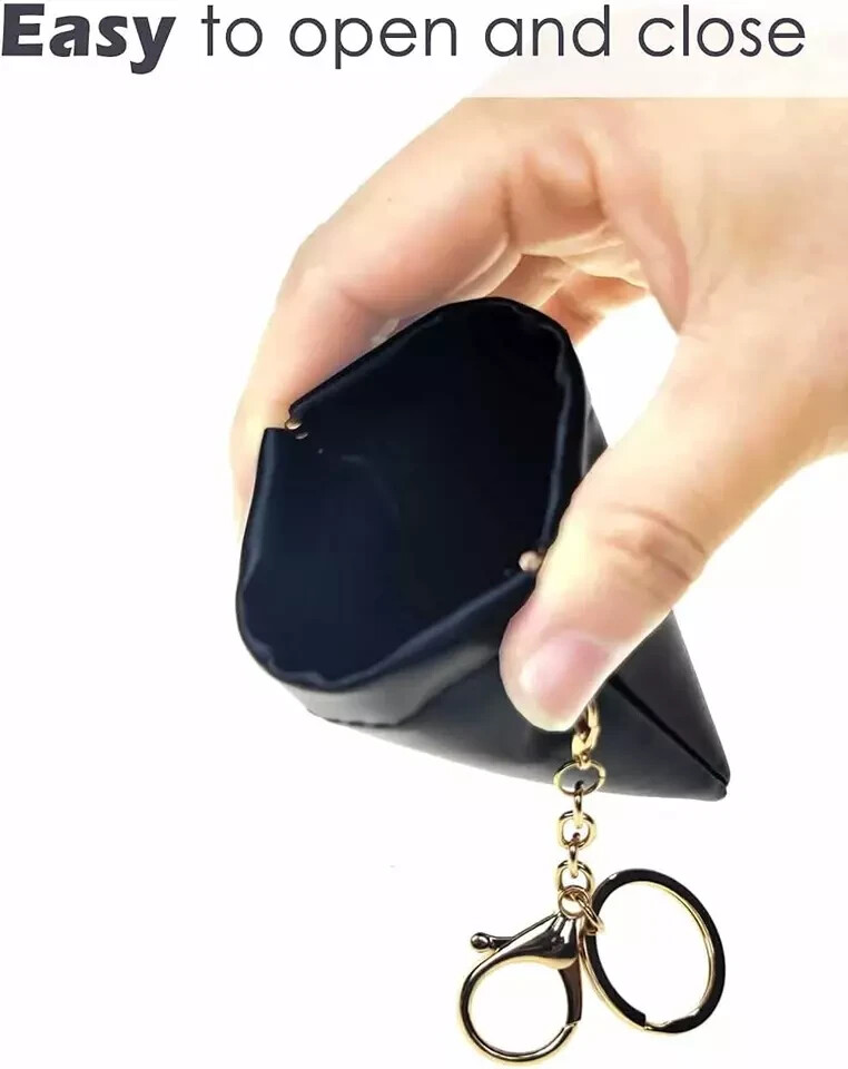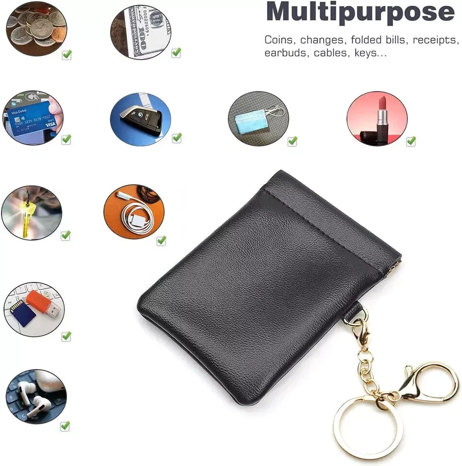Leather Squeeze Coin Purse with Keychain Small Change Holder Slim Wallet Pouch Card Holder for Women & Men (Black) Description Item model number 1018BK Color Black Product Dimensions 4.25 x 3.35 x 0.2 inches Item Weight 1.13 ounces Department unisex-adult 【High Quality Material】This slim coin purse card holder is made of soft PU leather, this artificial leather is made resistant to water penetration and has a high fade resistance. squeeze the metal frame for easy opening and release to let the frame spring to close. the sturdy spring frame will keep your change and essentials from spilling out. 【Portable Size】Perfect size to be everyday carried approx 4.2”x 3.3”inches, It's compact, super thin and easily fits inside your pocket, handbag, backpack. 【Simple Design】Minimalist, Lightweight, Slim design, Stylish, sober, enduring. 【Good storage space】Perfect for small items such as ID/Credit Card, coin, cash, earphone, earbud, earpieces, Chapstick, Lipstick, SD memory card, etc.