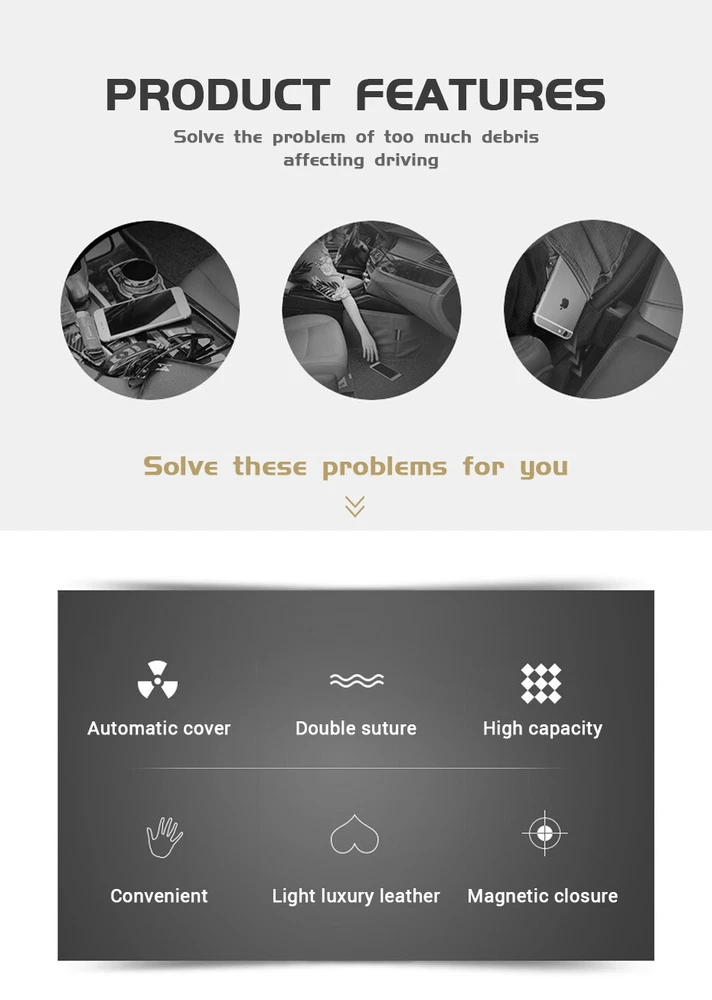 Product Description Saddle Leather Car Seat Slot Storage Box Gap Plug Filler Mobile Phone Card Key Organizer Interior Decoration Accessories Add our listing to Watchlist Or Add to Cart , you will get more discount Product name:Car Seat Gap storage pocket Color:Black Material:Saddle leather Size:238x225x65mm Feature: 1.Used in the gap between the center console and the seat Or other suitable gaps Tidy the space and fill the gaps. 2.Say goodbye to messy Neat and clean driving environment. 3.High capacity Meet daily travel needs. Payment Returns Contact Us Shipping We accept payment by PayPal only ! Payment should be completed within 5 days after buyer places the order,or else an unpaid case will be opened in order to cancel the transaction. If you can not pay in time, please contact us. e-check from PayPal will only be processed once the payment clears. All of the items will be shipped to buyer's EBAY address,please confirm your address on Ebay before you buy.Your order will be usually shipped out the same or next business days once the payment is made and cleared. 30-day Warranty with Exchange for defective, malfunctioned, incorrect or parts-missing items. Please notify us and return the item with all parts and accessories packed and marked "FOR EXCHANGE" within 14 days of receipt. If defective, malfunctioned or parts-missing items are no longer available, a refund may be issued. All returning postage costs will be the responsibility of the buyers under all circumstances. If you encounter any problems about anything, please feel free to contact us and we will do our best to assist you solve the issue. If you are not satisfied in anyway, please feel free to let us know and give us a second chance to correct it before you decide to leave any neutral or negative feedback. Please contact us through eBay link if you have any questions. We will reply you within 24- 48 hours. Please check you spam mail if no response for 48 hours. All items will be checked before packing. All items are new and of high quality. Item will be shipped within 1 business days upon receipt of payment, excluding weekends and public holidays. If to USA,we will ship your order by USPS,it will take about 8-12 working days to you,and you can track it on line. If to other country,we will ship your order by China Post or Singapore Registered Air Mail,it will take about 14-21 working days to you,you aslo can track it on line. Delivery time is about 14-28 business days and it may take up to 8 weeks . Payment We accept payment by PayPal only ! Payment should be completed within 7 days after buyer places the order,or else an unpaid case will be opened in order to cancel the transaction. If you can not pay in time, please contact us. eCHECK from PayPal will only be processed once the payment clears. All of the items will be shipped to buyer's EBAY address,please confirm your address on Ebay before you buy.Your order will be usually shipped out the same or next business days once the payment is made and cleared. Returns 30-day Warranty with Exchange for defective, malfunctioned, incorrect or parts-missing items. Please notify us and return the item with all parts and accessories packed and marked "FOR EXCHANGE" within 14 days of receipt. If defective, malfunctioned or parts-missing items are no longer available, a refund may be issued. All returning postage costs will be the responsibility of the buyers under all circumstances. Contact Us If you encounter any problems about anything, please feel free to contact us and we will do our best to assist you solve the issue. If you are not satisfied in anyway, please feel free to let us know and give us a second chance to correct it before you decide to leave any neutral or negative feedback. Please contact us through eBay link if you have any questions. We will reply you within 24- 48 hours. Please check you spam mail if no response for 48 hours. Shipping All items will be checked before packing. All items are new and of high quality. Item will be shipped within 1 business days upon receipt of payment, excluding weekends and public holidays. If to USA,we will ship your order by USPS,it will take about 7-10 working days to you,and you can track it on line. If to other country,we will ship your order by China Post or Singapore Registered Air Mail,it will take about 14-21 working days to you,you aslo can track it on line. Delivery time is about 14-28 business days and it may take up to 8 weeks . Welcome to our Store ~