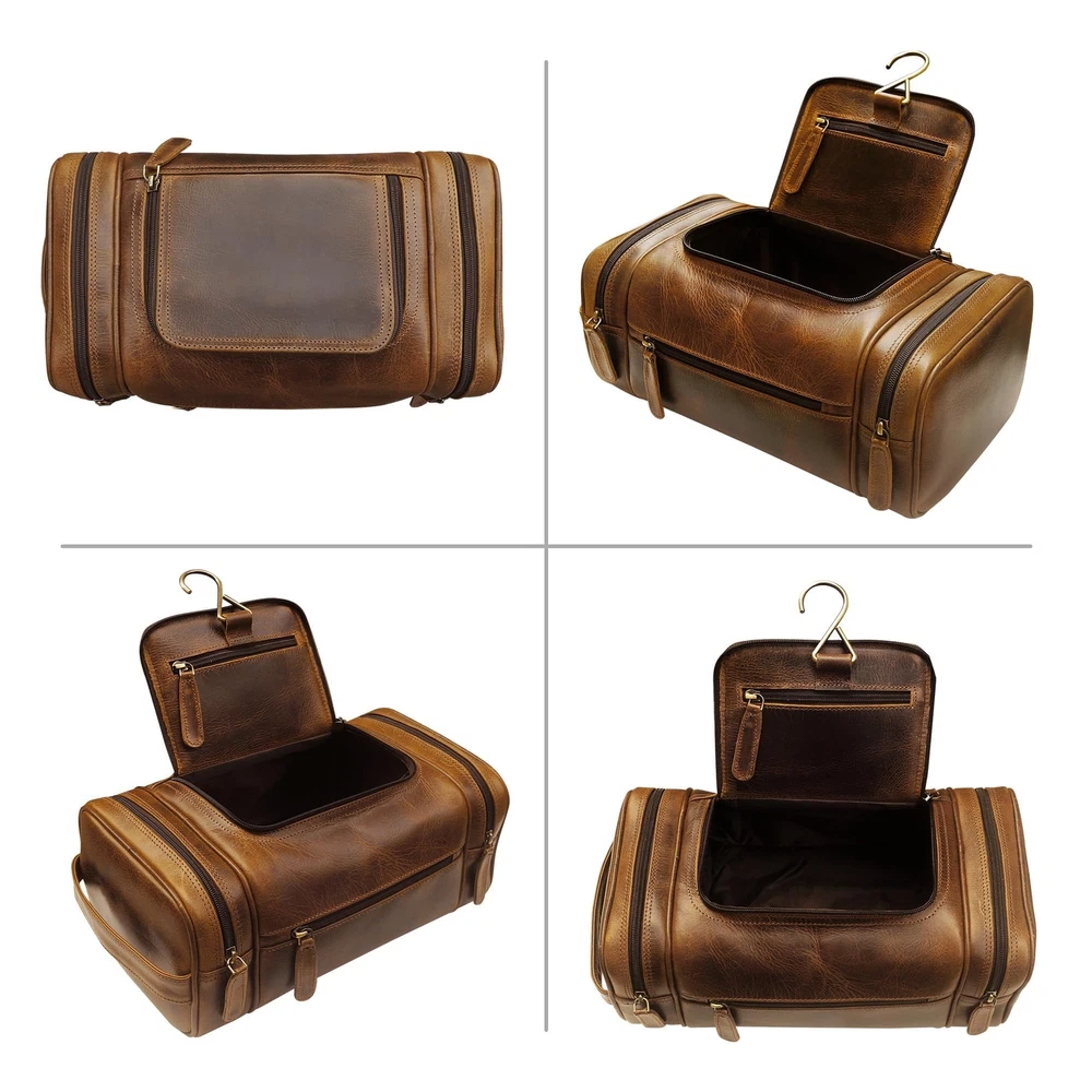 Toiletry Bag Mens Leather Travel Organizer Kit With Hanging Hook Large Waterresi
