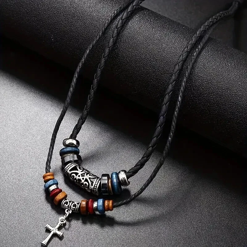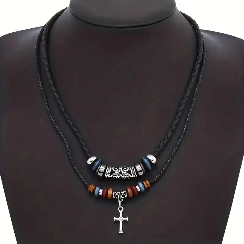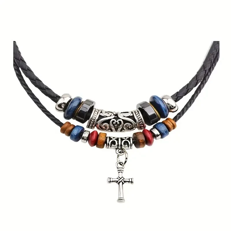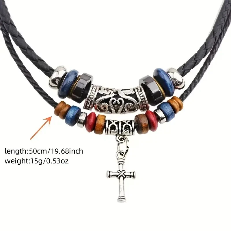 Leather Tribal for Cross Necklace for Women Men Vintage Ethnic