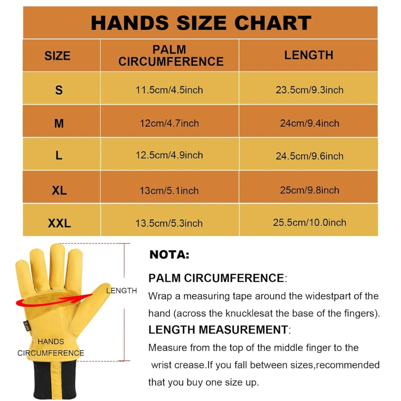 Material: Leather Size: X-Large Color: Yellow Special Feature: Thermal Insulated, Cold Resistant Windproof, Flexible, Abrasion Resistant, Water Resistant About this Item: Winter Work Gloves for Men: Warm, Durable, and Reliable Stay Warm All Day: These winter work gloves are lined with Thinsulate insulation, keeping your hands cozy and comfortable during cold-weather tasks. Water-Resistant & Tough: Made from high-quality cowhide, these gloves are wear-resistant, puncture-resistant, and feature a waterproof membrane to keep your hands dry and warm. (Note: Avoid soaking them in water for extended periods.) Snug Fit for Cold Weather: The elastic wrist cuff ensures a secure fit, keeps the gloves in place during demanding tasks, and provides extra warmth to your wrists. Built to Last: Reinforced leather palm patches add extra thickness for improved grip, slip resistance, and enhanced durability against wear and tear. Your Winter Work Essential: Perfect for any cold-weather job, these gloves are designed to keep you comfortable and protected no matter the task. Upgrade your winter gear with these rugged, insulated work gloves built for warmth, durability, and performance in tough conditions. Perfect for outdoor jobs, and more! Returnable until Jan 31, 2025 For the 2024 holiday season, eligible items purchased between November 1 and December 31, 2024 can be returned until January 31, 2025.