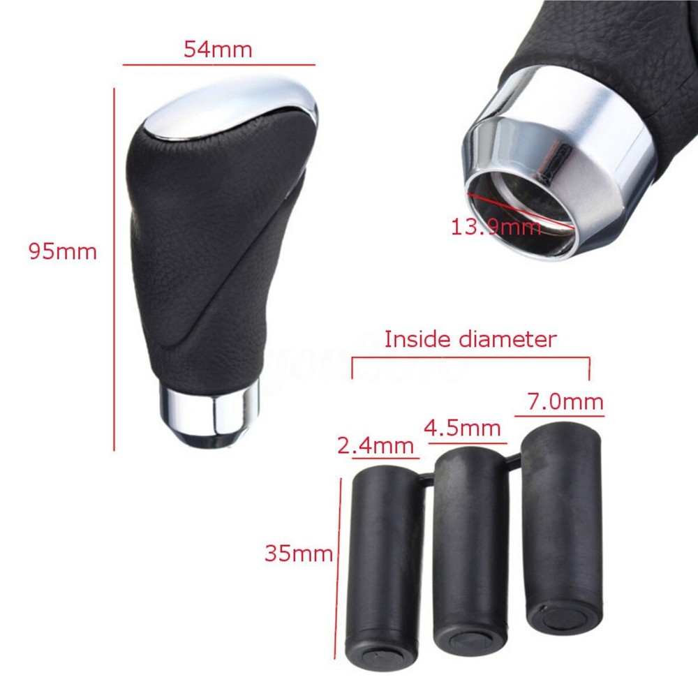 Home Payment Return Policy About us Contact us BCSMMCAR Manual/Automatic Car Leather Gear Stick Shift Knob Cover Handle Shifter Lever Product Overview Details Features: - 100% good quality - Material: Genuine Leather & Metal - Colour: Black and Chrome - With 3 Plastic adapters(8mm,10mm,12mm) for easy fitment - No modification required, directly upgrade your original knob Note: This Is Not Universal Type! 1. It only fit All Car Manual Transmission (MT) and Automatic Transmission (AT) Without Button's Lock 2. And Not Fit gear knob work on a lift up reverse knob Installation: - Remove the original car gear shift knob - Take Plastic adapters suitable size For shift knob - Put The gear head into the shift knob - The gear head directly set into the shift knob rod Package list: 1 Pcs X Shift Gear Knob 3 Pcs X Adaptors (8mm,10mm,12mm) 1 set X Wrench and Nuts Shipping Policy Payment Method Returns Policy Shipping Policy All items will be checked before packing. All items are new and of high quality. Item will be shipped within 1 business days upon receipt of payment, excluding weekends and public holidays. If to USA,we will ship your order by USPS or UPS,it will take about 2-6 working days to you,and you can track it on line. Payment Method We accept payment by PayPal only ! Payment should be completed within 5 days after buyer places the order,or else an unpaid case will be opened in order to cancel the transaction. If you can not pay in time, please contact us. e-check from PayPal will only be processed once the payment clears. All of the items will be shipped to buyer's EBAY address,please confirm your address on Ebay before you buy.Your order will be usually shipped out the same or next business days once the payment is made and cleared Returns Policy 30-day Warranty with Exchange for defective, malfunctioned, incorrect or parts-missing items. Please notify us and return the item with all parts and accessories packed and marked "FOR EXCHANGE" within 14 days of receipt. If defective, malfunctioned or parts-missing items are no longer available, a refund may be issued. All returning postage costs will be the responsibility of the buyers under all circumstances. Store Categories Store Categories Other Home Payment Shopping About Us Cont