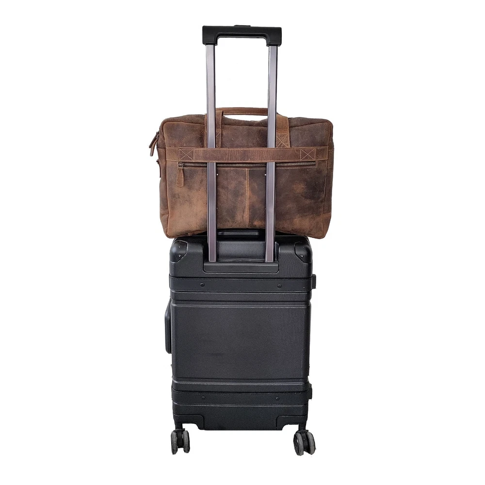 messenger briefcase for men laptop shoulder 16-inch leather laptop for men and leather office leather shoulder handmade leather messenger bag for men leather satchel shoulder bag for men 's laptop bag leather briefcase best handmade bag distressed best gifts for men computer bag leather Christmas valentine anniversary gifts for men and Premium Buffalo Leather & YKK Metal Zippers: Crafted from premium top-grain water buffalo leather by experienced craftsmen. All metal zippers used on this bag are from the renowned YKK brand, known for their durability and reliability. Trolley : Equipped with a convenient trolley strap at the back, allowing you to easily attach the bag to your suitcase for hassle-travel at airports. Sleek & Multipurpose Design: With dimensions of 16" (W) x 13" (H) x 5" (D), this bag can accommodate laptops up to 15.5 inches while maintaining a sleek, non-bulky look. It can be used as a briefcase, laptop messenger bag, or office satchel bag. Multiple Storage Sections: Features 2 large zippered compartments—with a padded section for laptops and valuables, and another for documents, journals, and files. Includes 2 side zip pockets for smaller items like wallets or diaries, as well as designated compartments for cards, pens, and mobile devices. Additionally, there’s a rear zip pocket and front pockets (with zip and button closures) for easy access to keys and frequently used items. Perfect Gift with : A great gift for any occasion—Christmas, Valentine’s Day, birthdays, or anniversaries. This bag comes with a -year , ensuring peace of mind..