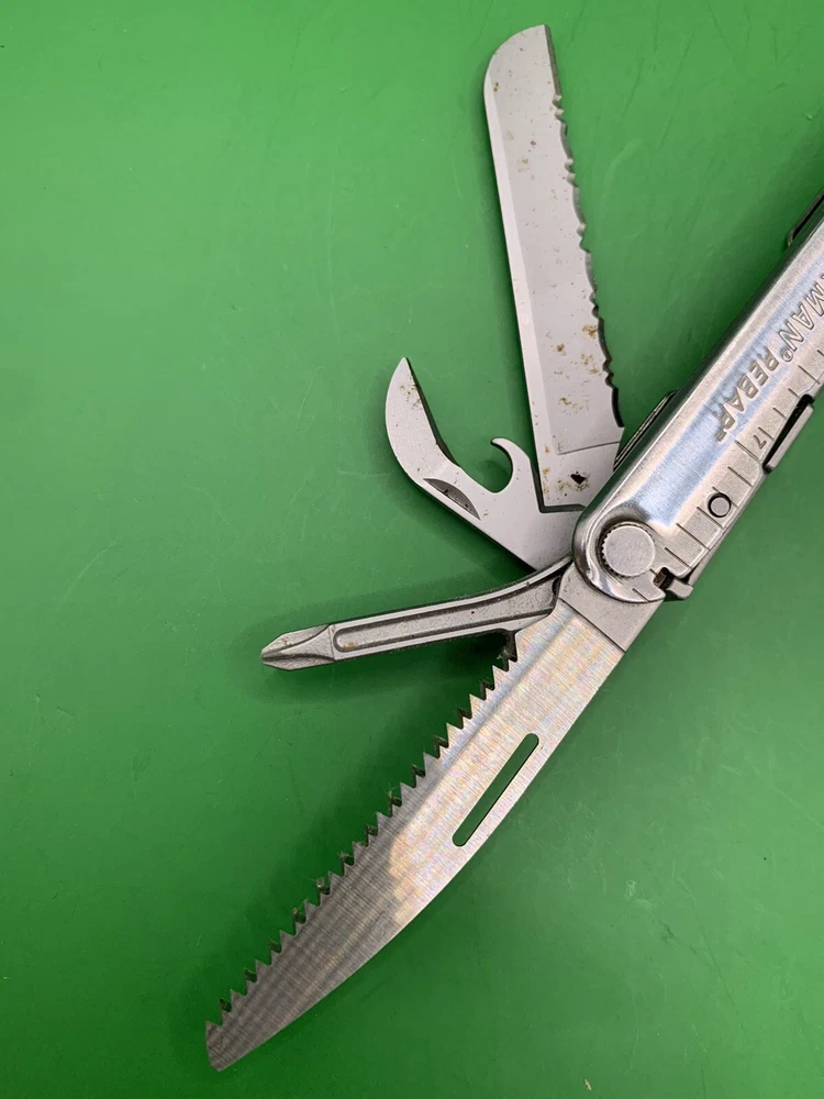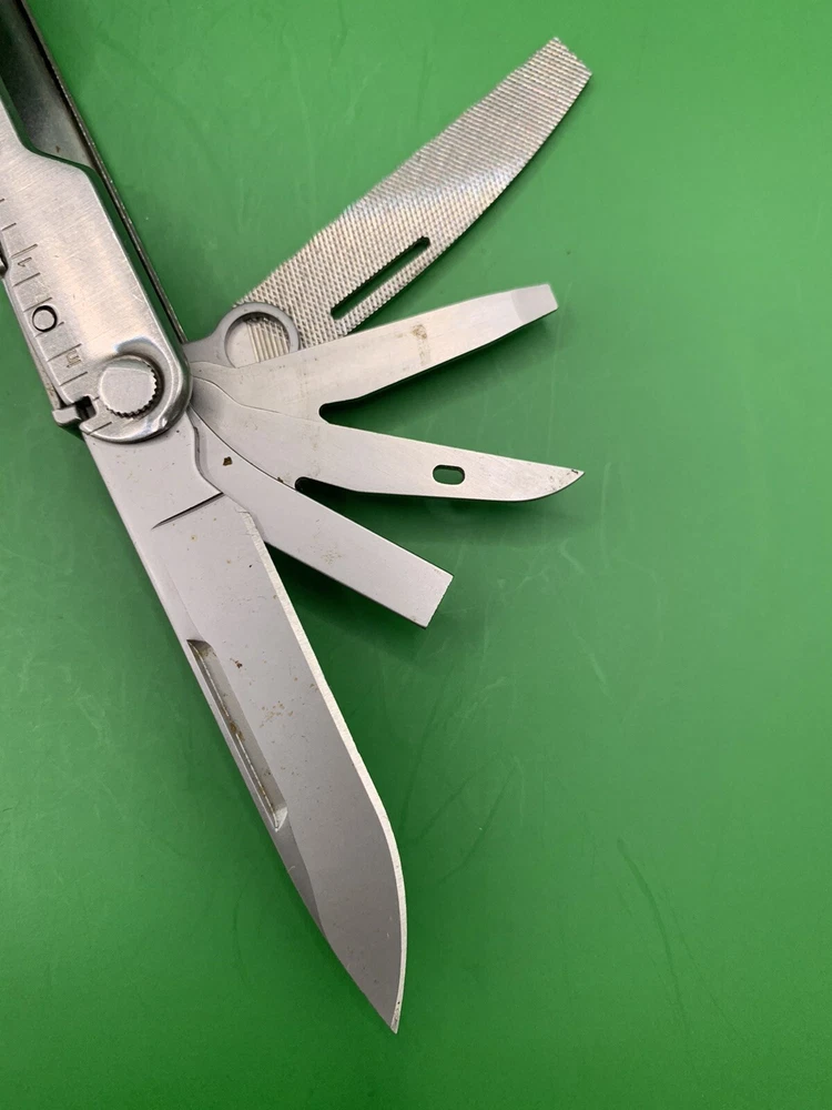 Used Leatherman multi tool. Has some wear on the handles and the blades may need to be sharpened. Could use some oil and a little cleaning. See pictures for overall cosmetic condition. By purchasing you affirm that you are of legal age and aware of all applicable laws.
