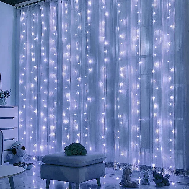 LED Window Curtain String Lights 3x3m Wedding Decoration 300 LEDs with 8 Lighting Modes Christmas Fairy Lights Home Decor Lights for Wedding Bedroom Party Garden Patio.\nFeatures:\nLED Beads Quantity: 300\nLight Color: Cold White, Warm White, Multi Color\nPower Supply: USB\nType: String Lights, Flexible LED Light Strips\nStyle: Window / Curtain / Icicle Lights\nFeatures: Cuttable, Curtain String Lights, Christmas Wedding Decoration\nVoltage (V): USB Powered\nInitial Lumens (lm): 300\nLength: 33 m\nMode: 8 Modes: ( Fade )\nControl Mode: Remote Control\n Led Curtain String Lights Lights LED Window Curtain String Lights 3x3m Wedding Decoration 300 LEDs with 8 Lighting Modes Christmas Fairy Lights Home Decor Lights for Wedding Bedroom Party Garden Patio. Features: LED Beads Quantity: 300 Light Color: Cold White, Warm White, Multi Color Power Supply: USB Type: String Lights, Flexible LED Light Strips Style: Window / Curtain / Icicle Lights Features: Cuttable, Curtain String Lights, Christmas Wedding Decoration Voltage (V): USB Powered Initial Lumens (lm): 300 Length: 33 m Mode: 8 Modes: ( Fade ) Control Mode: Remote Control Brand: Pellet Digital Electronic Technology Co