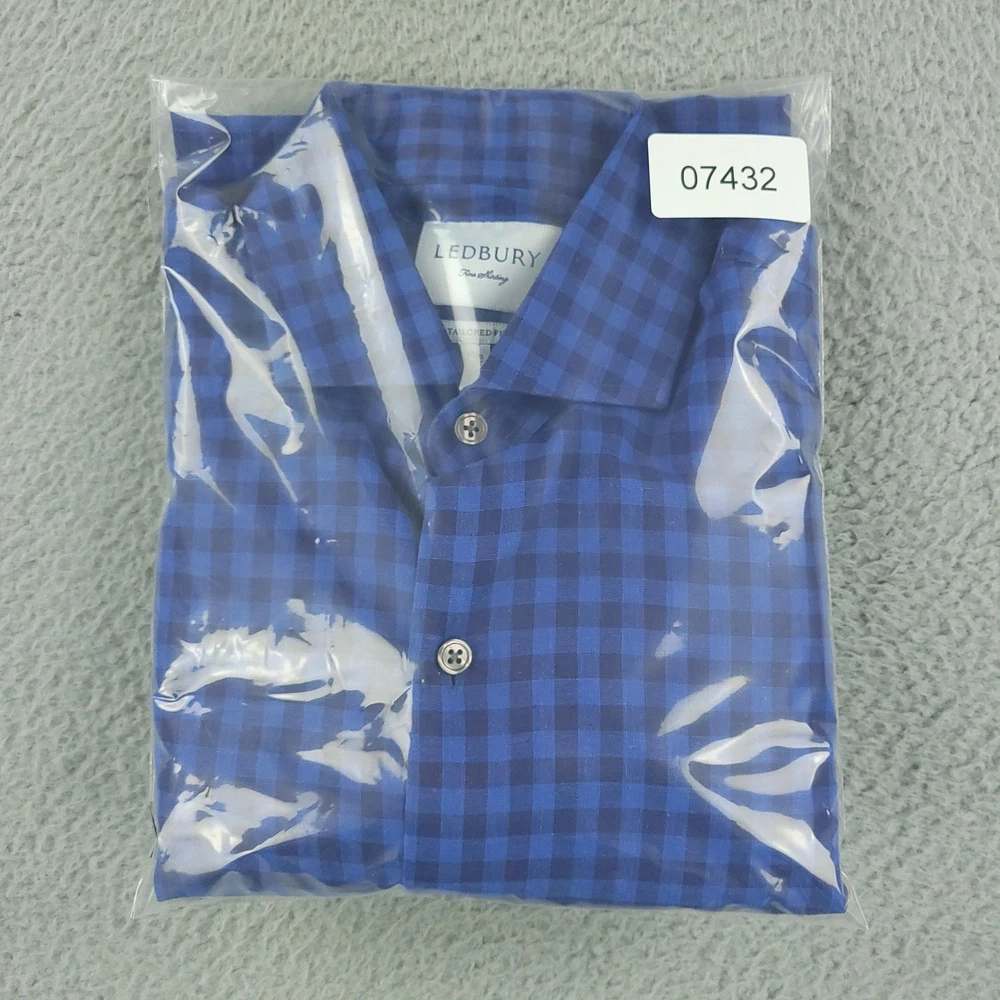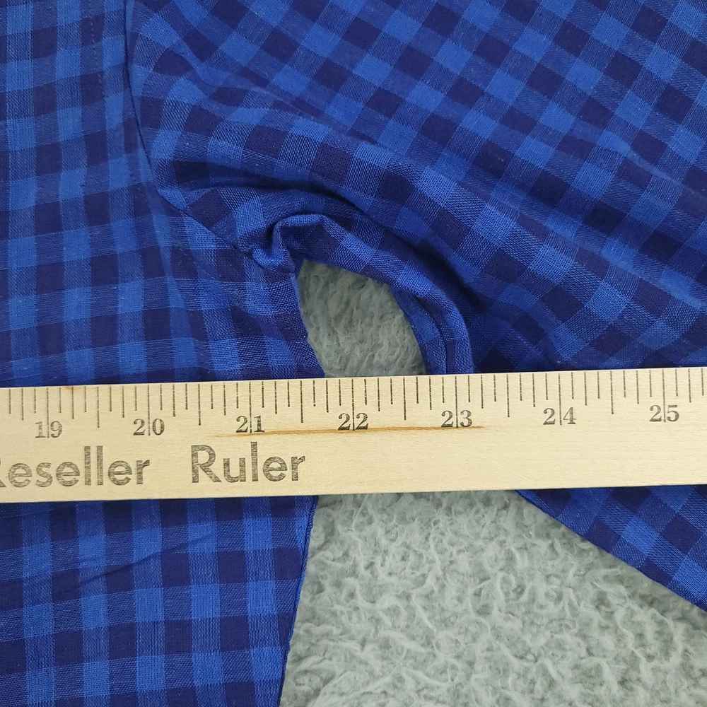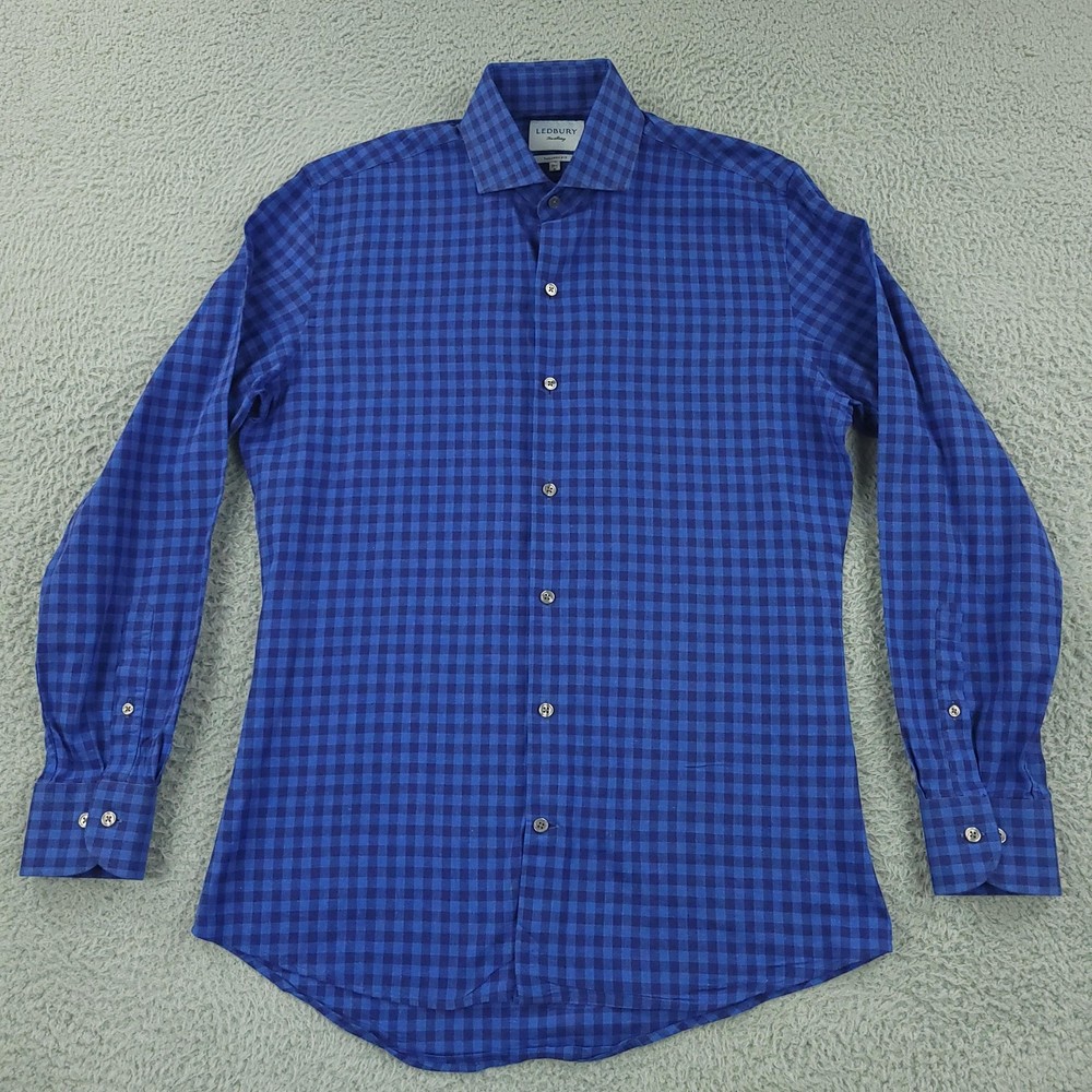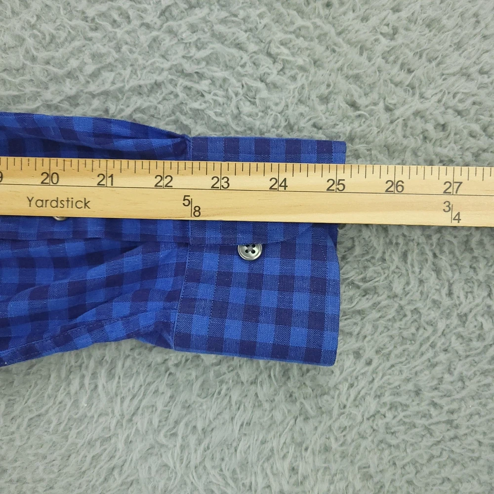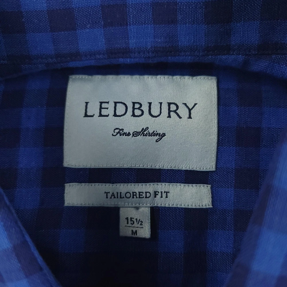 Ledbury Dress Shirt Mens 15.5 Blue Gingham Tailored Fit Cotton Linen Long Sleeve Brand: Ledbury Style: Mens long-sleeve dress shirt with spread collar and button front in a tailored slim fit silhouette. Color/Pattern: Blue gingham check with tonal shades of blue. Tag size: 15.5 Material: 55% cotton, 45% linen for lightweight, breathable comfort. Details: Front button placket, long sleeves with barrel cuffs and adjustable buttons, no chest pocket, back yoke, and curved shirttail hem. Made in Turkey Measurements are included in the photos, compare measurements with your item to ensure proper fit. Items are added daily click here to Visit My Store Combined shipping for US customers is 1.99 for each additional item Items are cleaned per eBay standards & policies