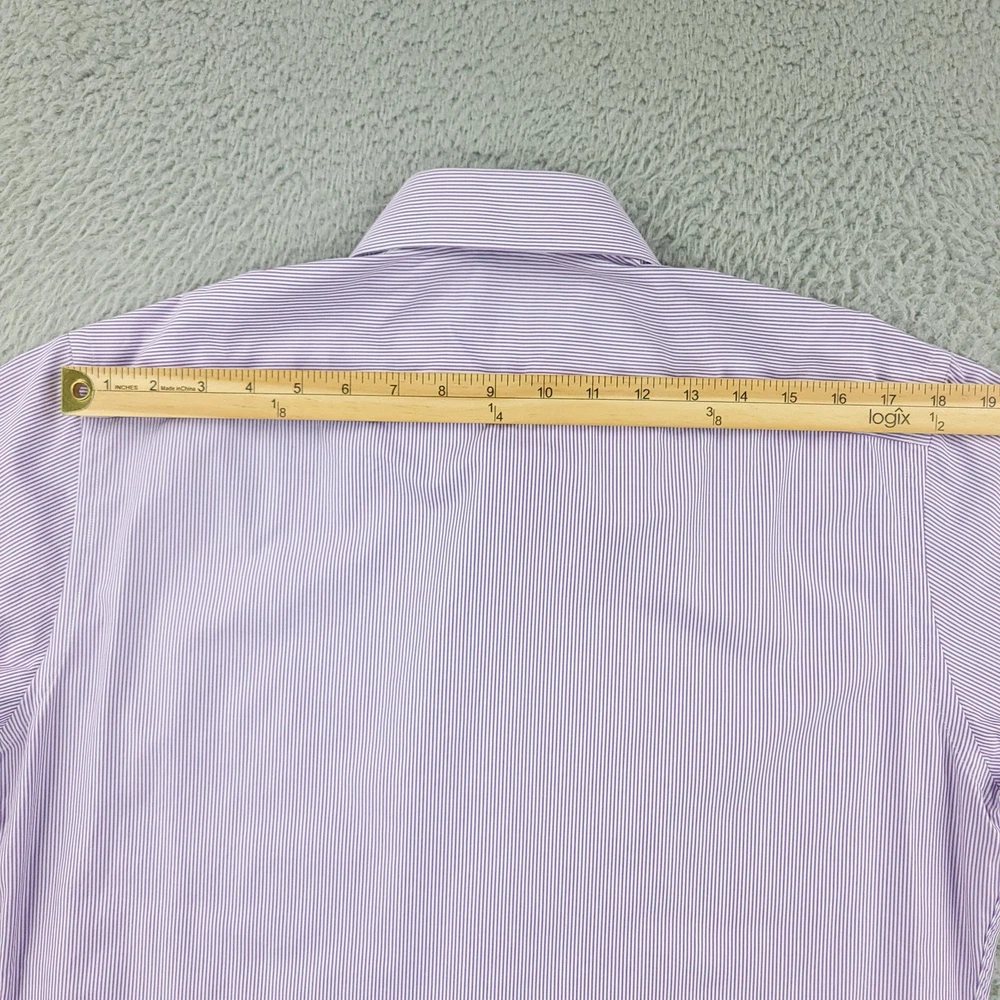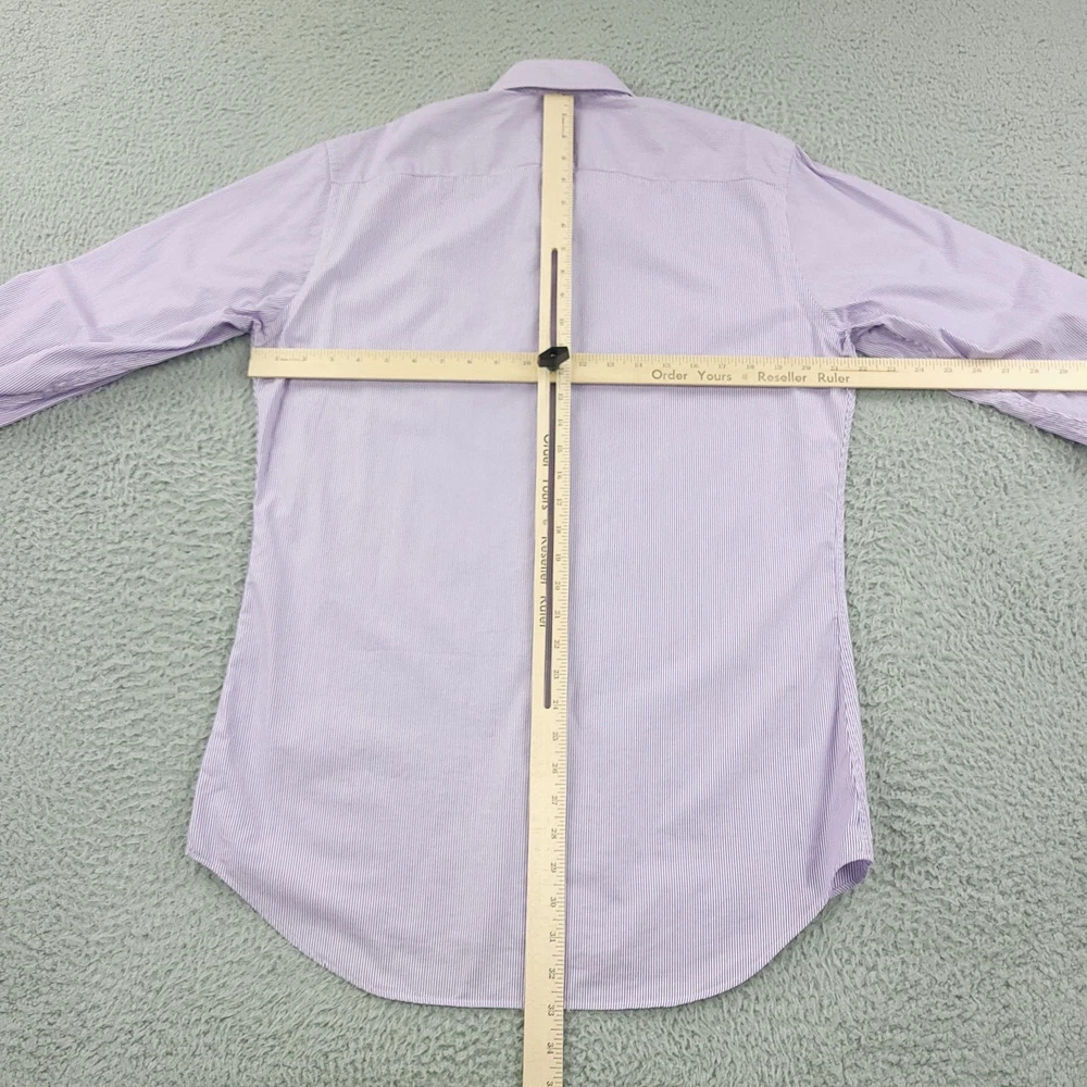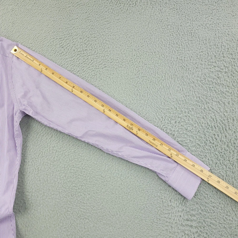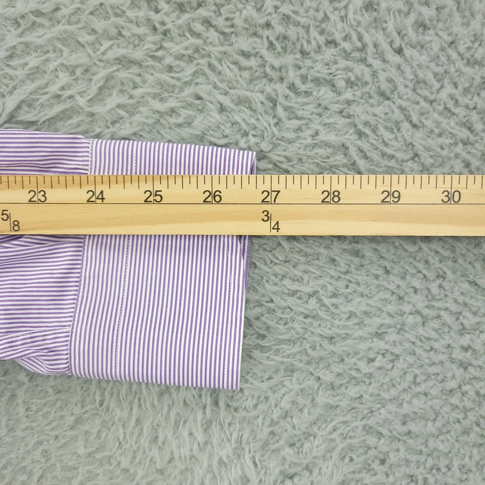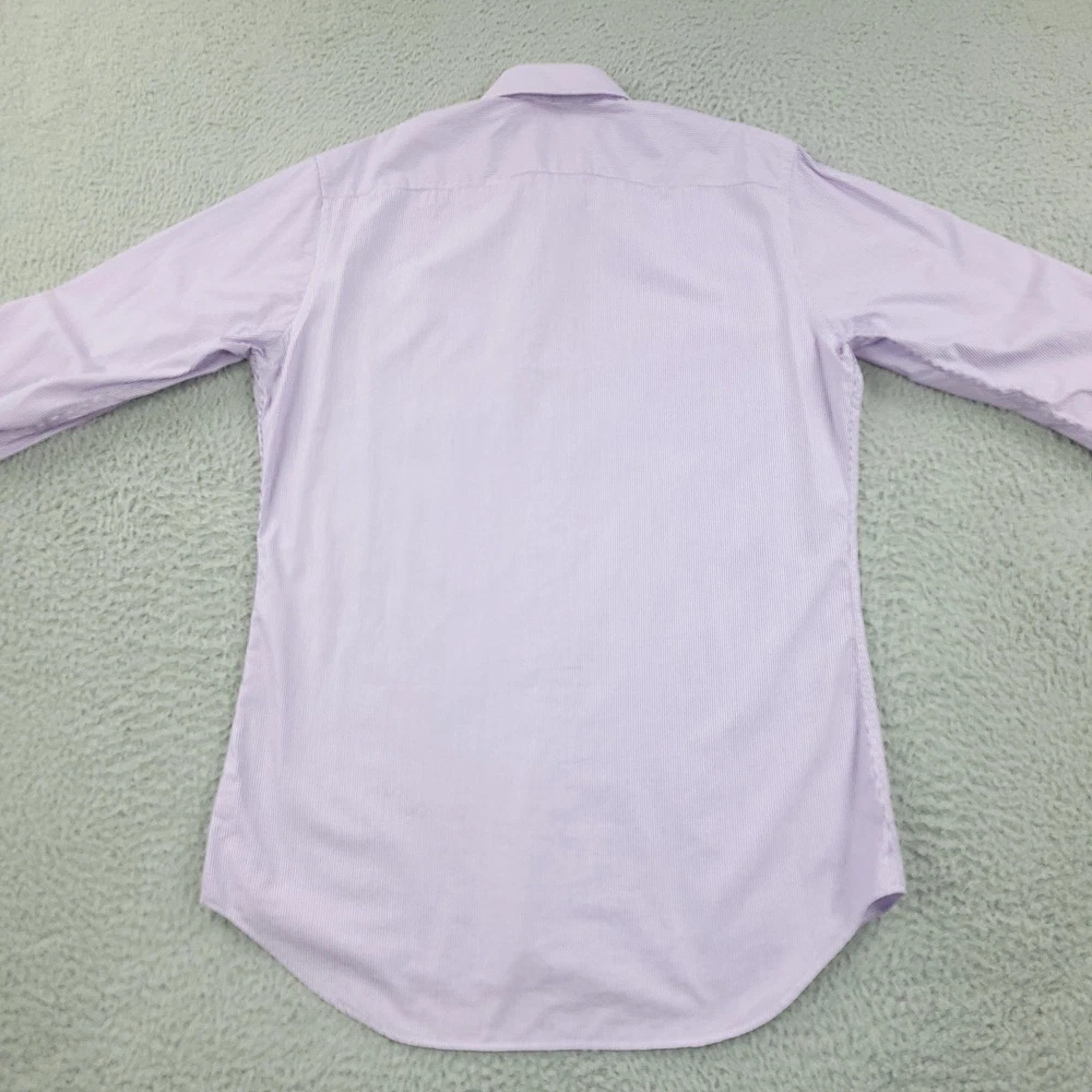 Ledbury Dress Shirt Mens 16 Purple Stripe 100% Cotton Long Sleeve Brand: Ledbury. Style: Mens long sleeve button-up dress shirt with full button front and spread collar. Color: Purple and white thin vertical stripe pattern. Size on tag: Mens 16 Material: 100% cotton woven fabric. Made in Poland. Features: Full button front placket with pearly buttons, long sleeves with button barrel cuffs and sleeve plackets, spread collar designed to be worn with or without a tie, no chest pocket for a clean front, curved shirttail hem suitable for wearing tucked or untucked, lightweight all-season cotton fabric with a regular fit silhouette ideal for business or office wear, Ledbury Fine Shirtmaker woven neck label, interior fabric content tag stating 100% cotton, interior Made in Poland label with code 1107-912. Measurements are included in the photos, compare measurements with your item to ensure proper fit. Items are added daily click here to Visit My Store Combined shipping for US customers is 1.99 for each additional item Items are cleaned per eBay standards & policies