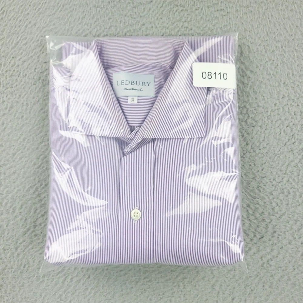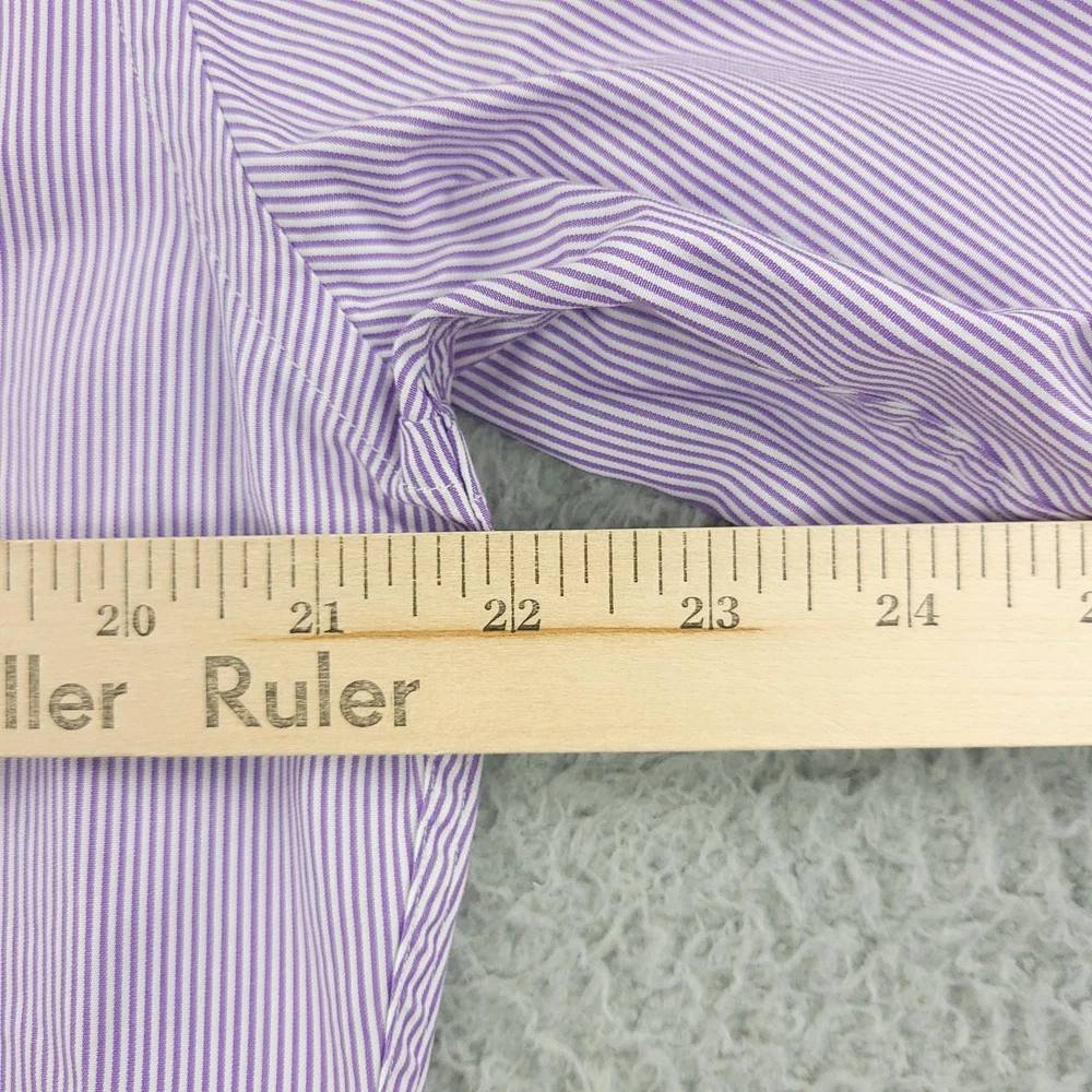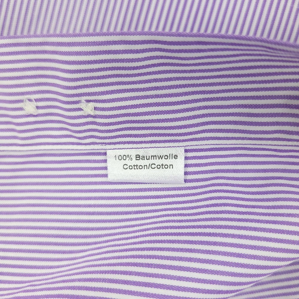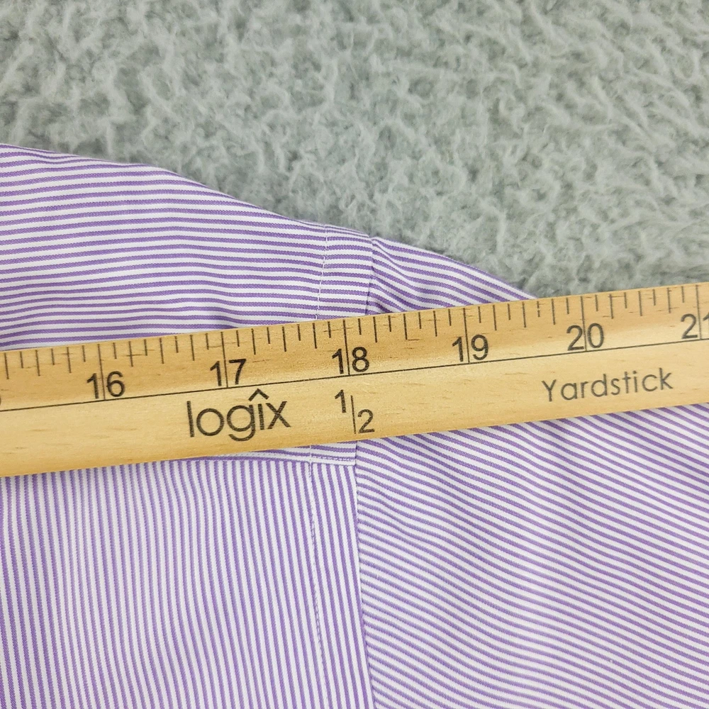 Ledbury Dress Shirt Mens 16 Purple Stripe 100% Cotton Long Sleeve Brand: Ledbury. Style: Mens long sleeve button-up dress shirt with full button front and spread collar. Color: Purple and white thin vertical stripe pattern. Size on tag: Mens 16 Material: 100% cotton woven fabric. Made in Poland. Features: Full button front placket with pearly buttons, long sleeves with button barrel cuffs and sleeve plackets, spread collar designed to be worn with or without a tie, no chest pocket for a clean front, curved shirttail hem suitable for wearing tucked or untucked, lightweight all-season cotton fabric with a regular fit silhouette ideal for business or office wear, Ledbury Fine Shirtmaker woven neck label, interior fabric content tag stating 100% cotton, interior Made in Poland label with code 1107-912. Measurements are included in the photos, compare measurements with your item to ensure proper fit. Items are added daily click here to Visit My Store Combined shipping for US customers is 1.99 for each additional item Items are cleaned per eBay standards & policies