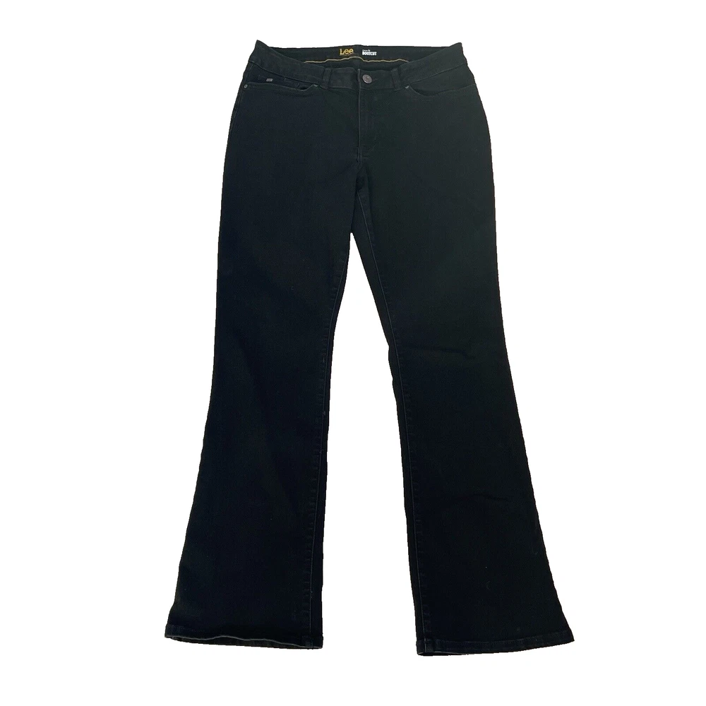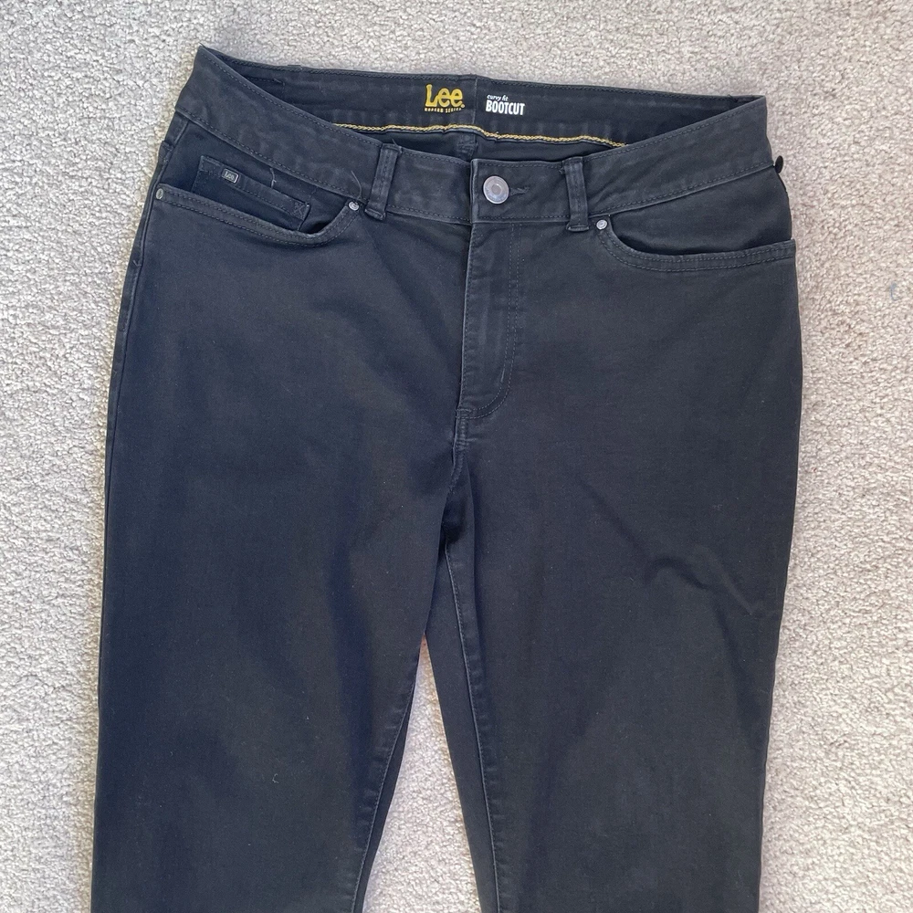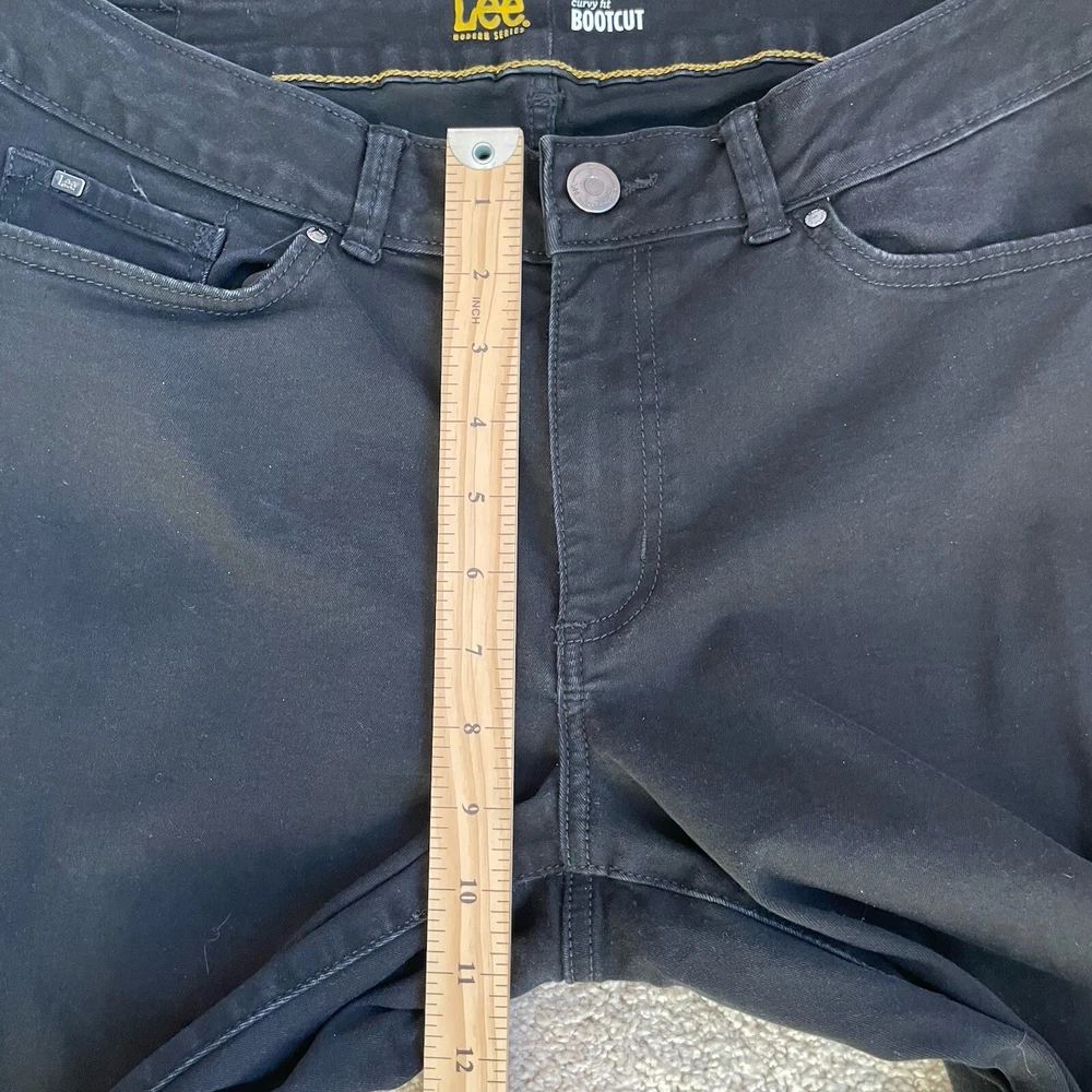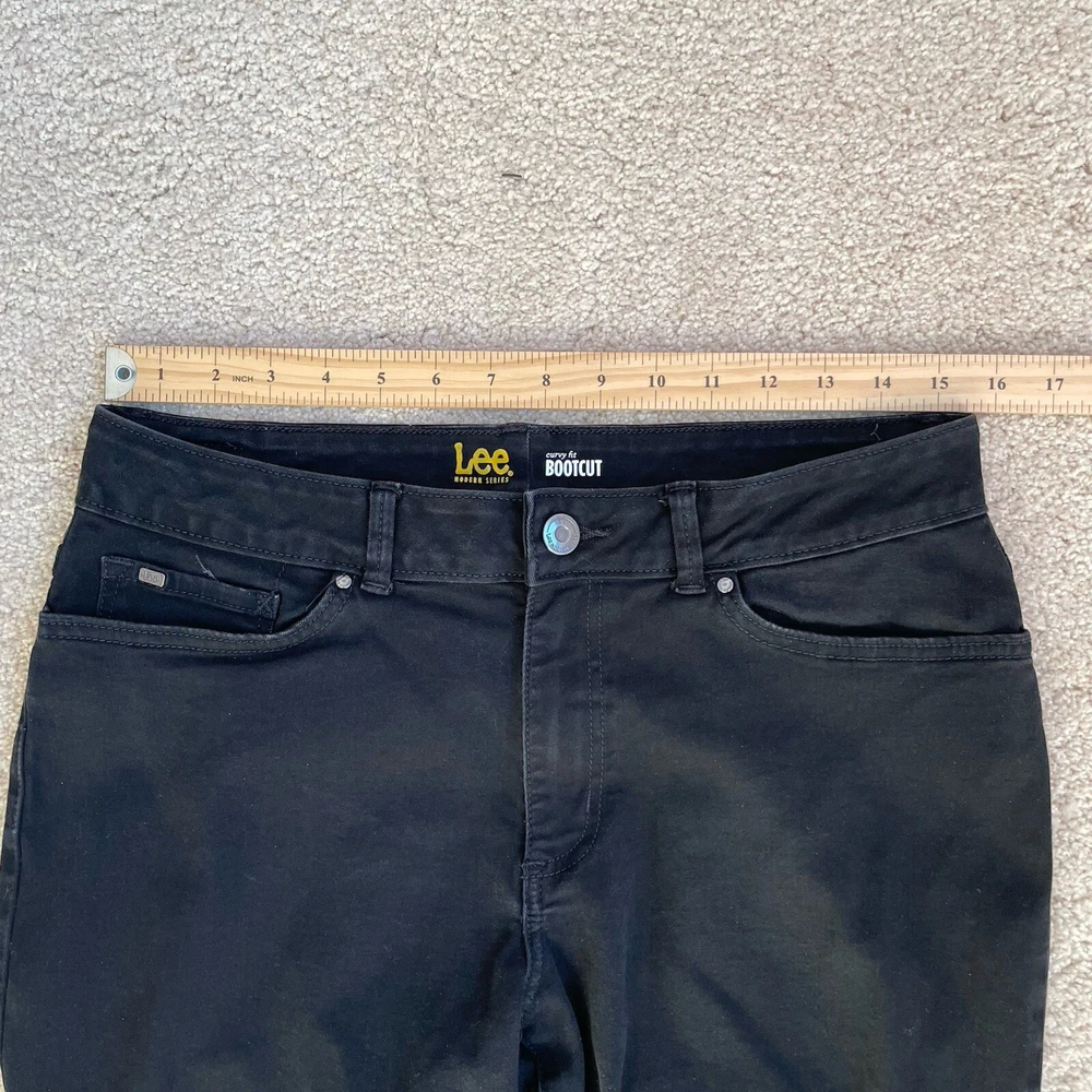 Lee Modern Jeans Womens 14 Medium Black Curvy Fit Bootcut Rodeo Cowgirl (Fit 31x30) Style Profile/Aesthetics: Bootcut Rodeo Cowgril Western Description/Specifics Mid-Rise Dark Wash Bootcut Stretch 5 pocket design with belt holes Zip-Fly with Button Closure Color/Fabric: Black Denim Materials: 69% Cotton, 15% Rayon, 13% polyester, 3% Spandex Washing Instructions: Machine Wash Cold Measurements : Please see photos for approximate measurements taken laying flat (in inches), be aware that tagged and actual measurements may differ on pre-owned clothes due to prior wash or wear so please compare measurements to clothes you already have to ensure proper fit! Tagged Size: 14 Medium Actual approximate measurements (inches), see pictures Waist: 31 Inseam: 30 Condition: This item has no observed holes, tears or stains. Please see photos for details, color may vary due to lighting! All preowned items have been cleaned. Please reach out with questions!