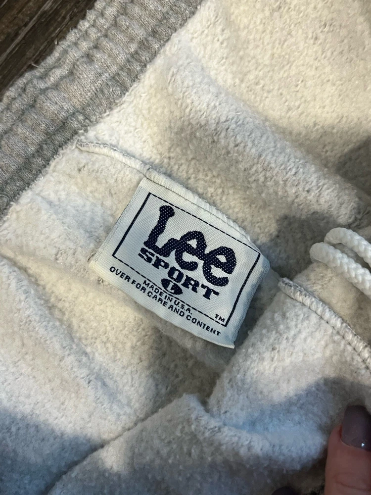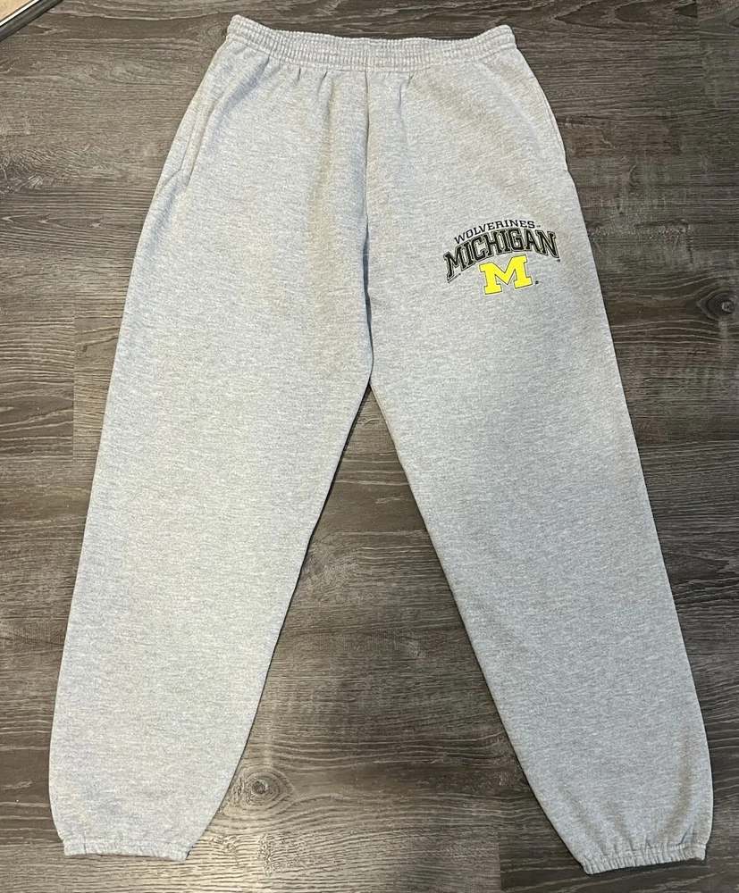 Get ready to cheer on your team with these Lee Sport Michigan Wolverines jogger pants. Made of 100% cotton blended fabric, these pants are perfect for walking and other activewear occasions. The drawstring closure and athletic fit make them comfortable and easy to wear, while the two side pockets provide convenient storage. These pants are sized L with a 40-inch waist and 30-inch inseam, and feature a solid gray color and sports theme. Whether you're a fan of the Wolverines or just looking for a cozy pair of joggers, these Lee pants are a great addition to your wardrobe.