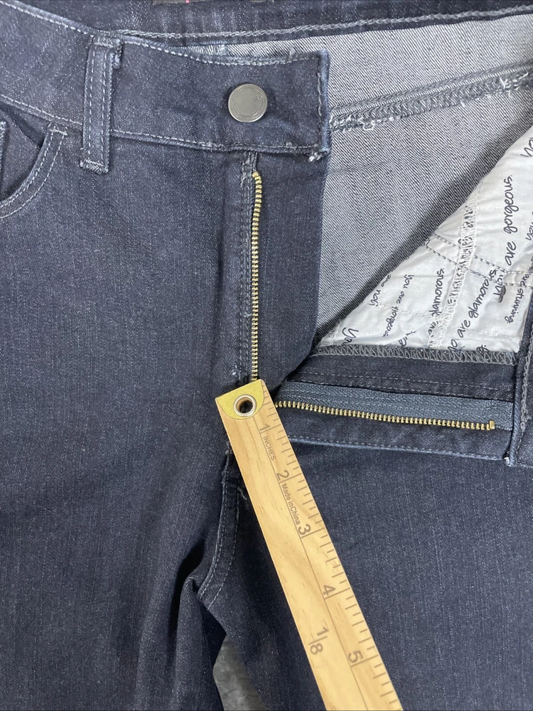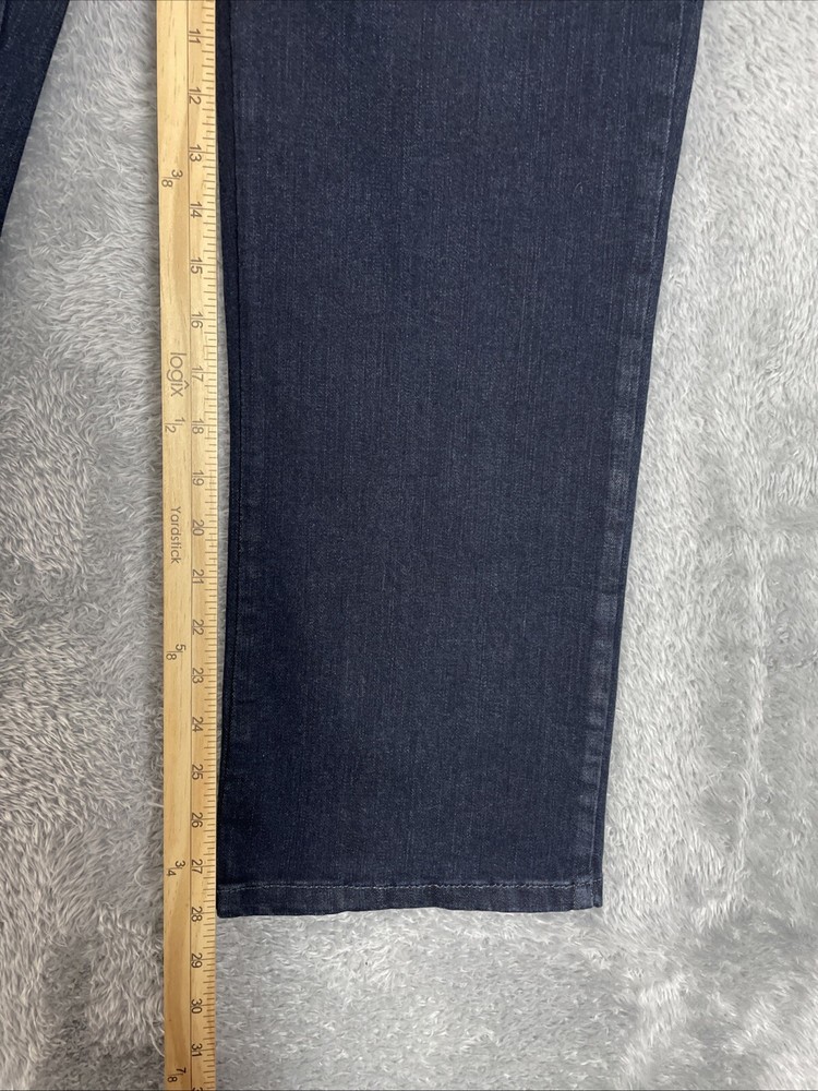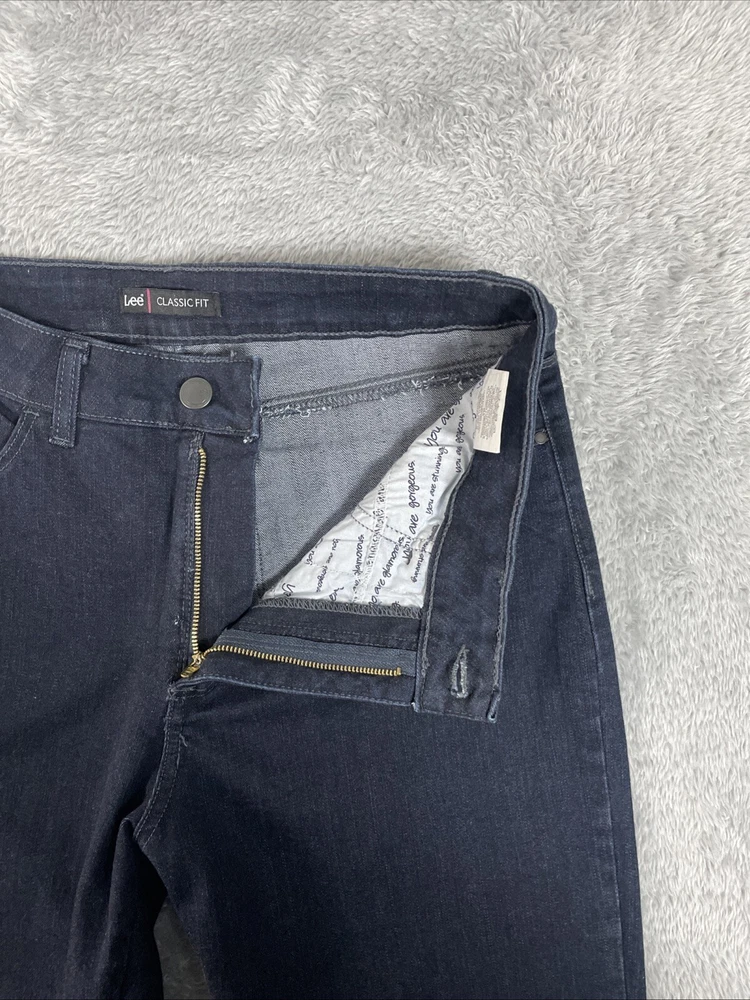Lee Jeans Women's Petite 14P Dark Blue Classic Fit Straight Leg Stretch Denim There's a little nick by the zipper that may eventually need mending. The zipper flap covers it. CHECK THE MEASUREMENTS. Title only states tag size. Sizes can vary. Condition is used. Good used condition with typical wear. No losses to note. See photos for condition and detail. Please look carefully at all photos. The photos are an important part of the description. If you have questions, please ask. Returns are accepted within 30 days of purchase. The item must be returned in exactly the same condition as received. Items will be inspected, serial numbers checked, etc. Shipping fees are not refundable.
