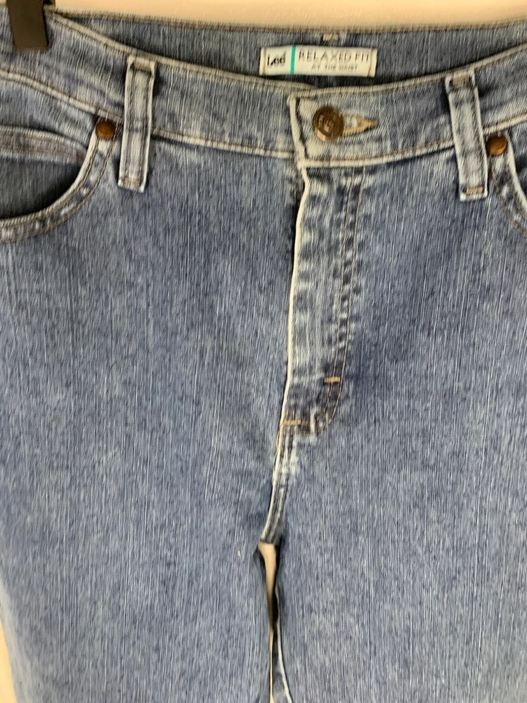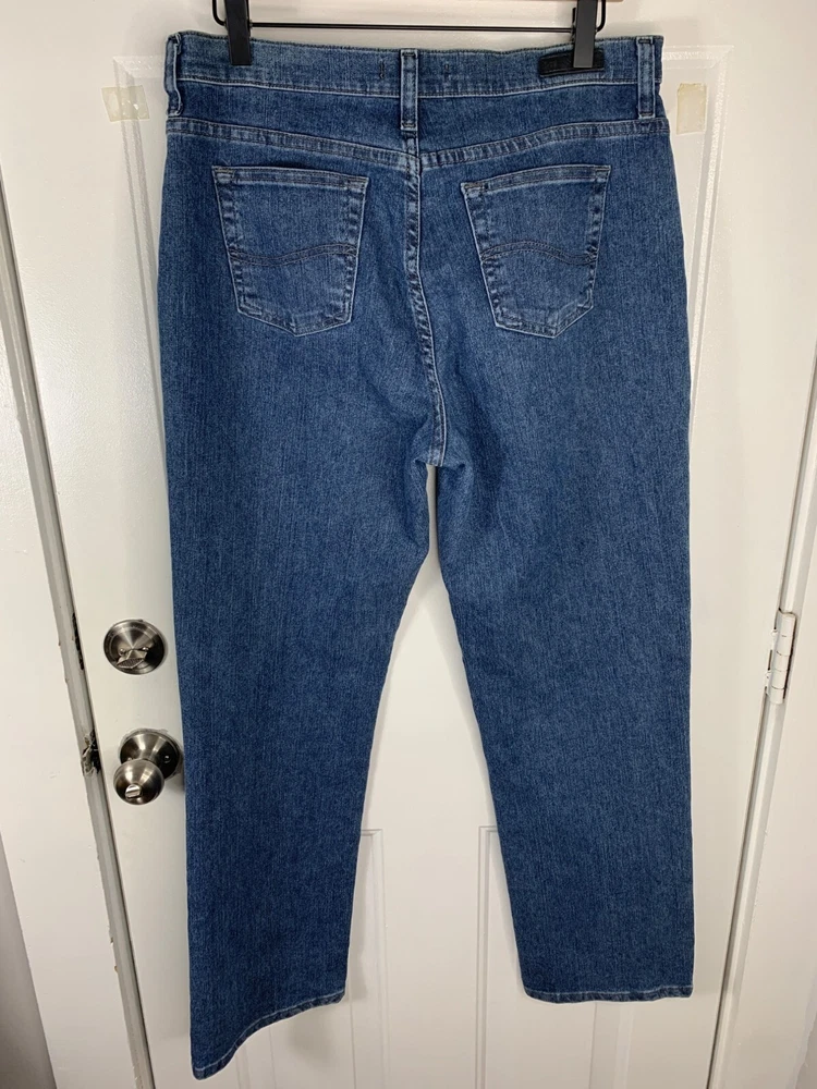 Type: Jeans Pattern: Denim Material: Denim, Cotton Brand: Lee Size: 12 Style: Straight Size Type: Regular Fit: Relaxed Fabric Wash: Medium Color: Blue Department: Women