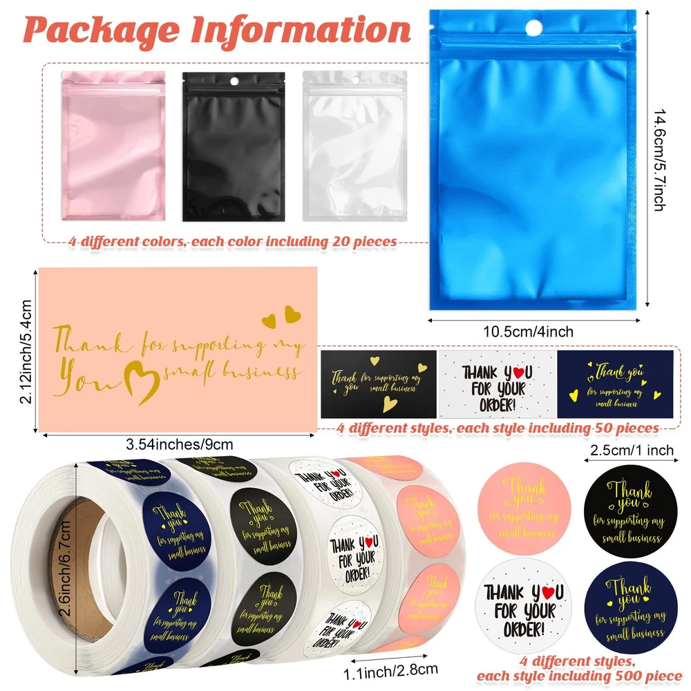 Features: Nice gifts: These business supplies are suitable for sending to your friends, colleagues, relatives, family and other who want to start a small business, they will be happy to receive these gifts. Thank you cards and stickers set: Our thank you sticker labels, thank you for supporting my small business cards and packaging bags are nice combinations, which can make your business thrive. Specifications: Color: as shown on the picture Size: Card: 3.5 x 2 inches Sticker: 1 inch Package includes: 2000 Pieces thank you stickers 200 Pieces thank you cards 80 Pieces bags Notes: Manual measurement, please allow slight errors on size. The color may exist slight difference due to different screen displays. Graduation Small Business Market Supplies Essentials: our thank you cards set totally have 2280 pieces in 4 different designs sets, each set includes 50 pieces 3.5 x 2 inches thank you for supporting my small business cards, 1 roll (500 pieces) 1 inch thank you label stickers, and 20 resealable packaging bags, sufficient style and quantity to meet your business needs Attractive Designs: printed with 4 attractive thank you designs, these small business supplies are suitable for small businesses, online shops, retail stores, etc., they can be also applied for flower bouquets, gift boxes, wine bottle decorations and more Multiple Uses Stickers: our thank you sticker labels are adhesive and waterproof, which can be stuck on most smooth surfaces, suitable for different type cards, envelopes, gift boxes, bottles, etc., cute and practical, bringing much convenience to you Lovely Postcards: the thank you for supporting my small business cards are made of quality thick cardboard in 4 kinds of beautiful design, which you can get a nice way to leave unforgettable memories on your customers by leaving your name, addressing or other blessing language Packaging for Small Business: there are 20 pieces small bags per-color for you to store your commodity, use them with thank you stickers and thank you cards will so catch your costumers' heart; They can be also applied for home or office use, putting jewelry, coffee beans, candy, rice, biscuits, dried flowers and more