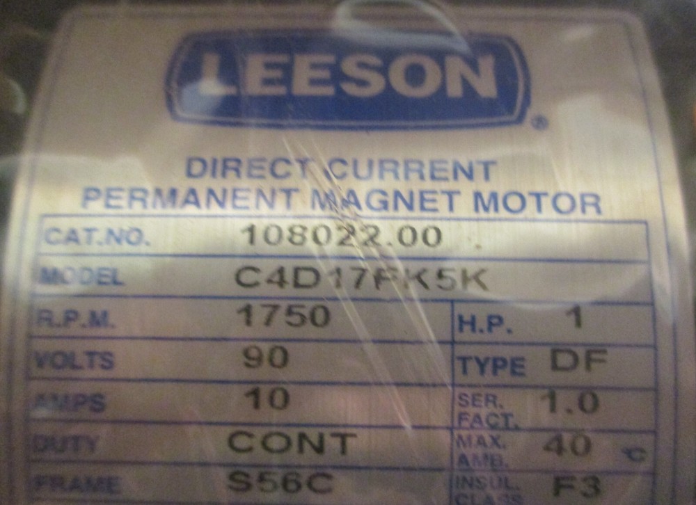 Motor For sale is a Leeson 108022.00 DC Permanent Magnet Motor C4D17FK5K 1750RPM 1HP 5/8" Shaft Dia. Item appears new and in excellent condition. Will come as shown and with what is pictured. May show minor imperfections from shelf wear but nothing that will impact performance. Shaft Dia: 5/8" Thank you for looking and please let us know if you have any questions. eTech Surplus Rochester, NY Shipping: Charged according to location. Please note that eBay charges sales tax, we do not. We at eTech Surplus strive to honestly and accurately describe each item we sell. Please feel free to contact us with any questions. International Buyers - Please Note: Import duties, taxes and charges are not included in the item price or shipping cost. These charges are the buyer's responsibility. Please check with your country's customs office to determine what these additional costs will be prior to bidding or buying.