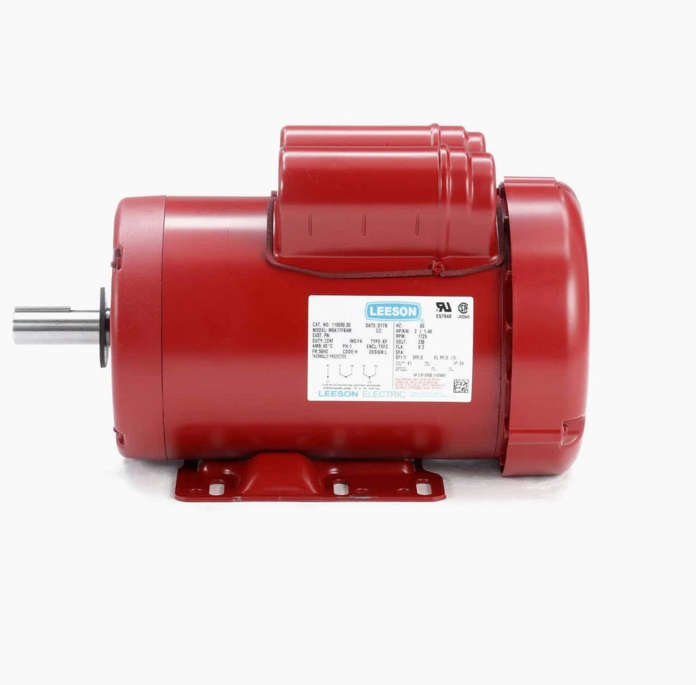 Leeson Farm Duty Electric Motor – 2 HP, 1,725 RPM, 230V, Single Phase Model Number: M6K17FB4 Speed: 1,725 RPM Voltage: 230 Volts Horsepower: 2 HP Material: High-quality copper winding Features & Applications: Heavy-duty motor built for demanding agricultural applications Ideal for feeders, conveyors, fans, grain elevators, and silo unloaders Single-phase design ensures efficient performance and reliability Durable construction to withstand harsh farm environments Thermal protection for extended motor life Perfect for farms needing a powerful, long-lasting motor to keep operations running smoothly.