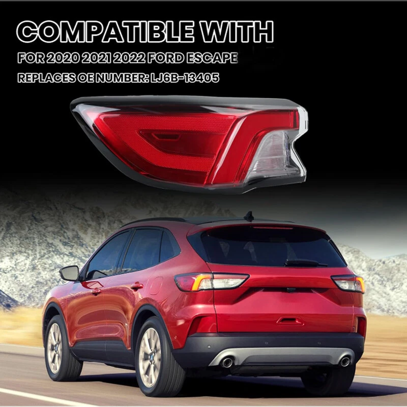 Product Description ITEMS DESCRIPTION: Type: Car Tail Light Condition: Brand New Lens: Heavy Duty Polycarbonate Color: Red & Clear Function: Driving Light*With Side Marker Light+Brake Light + Turn Signal Light Placement on Vehicle: Rear, Left Feature: Long Service Life Stable Performance Strong and Durable Exquisite Workmanship Non destructive installation Direct Replacement Tail Light High Impact Resistance Package: 1x Left Side Tail Light OE Number: LJ6B-13405 Fit: For Ford escape 2020 2021 2022 please refer to the given part number to check compatibility! Please make sure it will fit your vehicle before you buy. Shipping Returns Feedback Customer Service We do our best to ship it out ASAP after receiving your order and provide tracking numbers on all orders. Please note that we can only ship to addresses verified with PayPal or your credit card. We may contact you for additional verification if needed. We cannot ship to APO or FPO addresses, and orders to Puerto Rico, Hawaii, and Alaska will incur additional shipping charges. Hassle Free Returns! All our products come with a 30-Day Return Policy. If you would like to return your item and you are within 30 days of the purchase, and it is still in its original condition, you can request a return label and return the item by contacting us through eBay messaging. If there are any product defects, we offer Free Returns and will provide you with a prepaid return label. Once the item has been received and verified, a refund of the purchase price and any taxes paid will be issued through PayPal. Our return policy is void if you attempt to modify, open, unlock, root, or change the operating system of the device. 1. We hope to give you a positive eBay experience by working hard, and we expect to receive a positive feedback and Detailed Selling Rating (DSR) of 5 Rating in ALL of the feedback categories (Item as described, Communication, Shipping Time and Shipping and handling charges) from the buyer upon receiving the item . 2. If you are not satisfied with our Products or service, please don’t hesitate to contact us before you leave any Neutral/Negative feedbacks, we will always try our best for 100% customer satisfaction. 3. Communication is the best way to solve problem. leaving a negative feedback will not help us solve any problems. If you have any questions,Welcome to email/talk us. We will answer all questions and resolve any problems as quickly as possible. Business Hours: Sun-Fri 10:00-18:00 (HongKong Time GMT+8:00)Please email us through Ebay Messages box. Note: 1.We try our best to reply to your emails as soon as possible, however, due to high volume of daily incoming emails and time zone difference, we may not be able to reply your emails immediately. Please allow 1 business days for us to response. If you do not receive any reply from us, please check your email ensuring your mailbox has not reached full size. 2.Due to some ISP SPAM filter settings, you may not be able to receive our replies; if you have problems receiving our emails, you may need to use a different email account to contact us. 3.Please give us the opportunity to resolve any problem. We understand the concerns and frustrations you might have, and will try our best to resolve the issues. Please email us before leaving any negative feedback or open any dispute on PayPal. 4.We care about our valued customers, and will always try to help you. So if you have any problems, please e-mail us immediately. Shipping We do our best to ship it out ASAP after receiving your order and provide tracking numbers on all orders. Please note that we can only ship to addresses verified with PayPal or your credit card. We may contact you for additional verification if needed. We cannot ship to APO or FPO addresses, and orders to Puerto Rico, Hawaii, and Alaska will incur additional shipping charges. Returns Hassle Free Returns! All our products come with a 30-Day Return Policy. If you would like to return your item and you are within 30 days of the purchase, and it is still in its original condition, you can request a return label and return the item by contacting us through eBay messaging. If there are any product defects, we offer Free Returns and will provide you with a prepaid return label. Once the item has been received and verified, a refund of the purchase price and any taxes paid will be issued through PayPal. Our return policy is void if you attempt to modify, open, unlock, root, or change the operating system of the device. Feedback 1. We hope to give you a positive eBay experience by working hard, and we expect to receive a positive feedback and Detailed Selling Rating (DSR) of 5 Rating in ALL of the feedback categories (Item as described, Communication, Shipping Time and Shipping and handling charges) from the buyer upon receiving the item . 2. If you are not satisfied with our Products or service, please don’t hesitate to contact us before you leave any Neutral/Negative feedbacks, we will always try our best for 100% customer satisfaction. 3. Communication is the best way to solve problem. leaving a negative feedback will not help us solve any problems. Customer Service If you have any questions,Welcome to email/talk us. We will answer all questions and resolve any problems as quickly as possible. Business Hours: Sun-Fri 10:00-18:00 (HongKong Time GMT+8:00)Please email us through Ebay Messages box. Note: 1.We try our best to reply to your emails as soon as possible, however, due to high volume of daily incoming emails and time zone difference, we may not be able to reply your emails immediately. Please allow 1 business days for us to response. If you do not receive any reply from us, please check your email ensuring your mailbox has not reached full size. 2.Due to some ISP SPAM filter settings, you may not be able to receive our replies; if you have problems receiving our emails, you may need to use a different email account to contact us. 3.Please give us the opportunit
