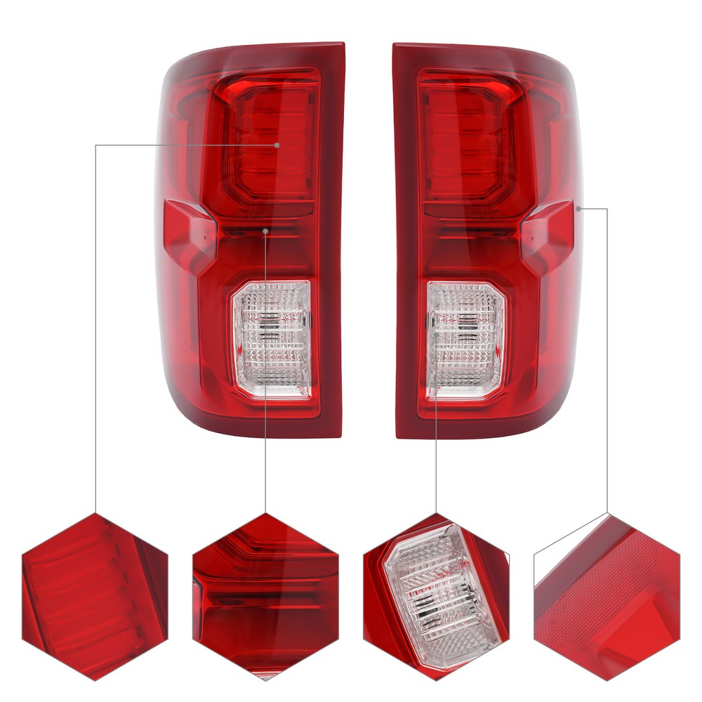 Left & Right LED Tail Lights For 2016-2018 Chevy Silverado 1500 High Country LTZ Left and Right LED Tail Light For 2016-2018 Chevy Silverado 1500 High Country | LTZ 【 4-Door Crew Cab Pickup/4-Door Extended Cab 】 , Rear Lights, Tail Light Lamps Specifications Manufacturer Part Number: 84288719, 84288718 Interchange Part Number: GM2801294, GM2800294 OE/OEM Part Number: 84288719, 84288718 Applicable Models: For 2016-2018 Chevy Silverado 1500 High Country | LTZ 【 4-Door Crew Cab Pickup/4-Door Extended Cab 】 Condition: New Material: Acrylic, ABS Process: Injection Molding Lens Color: Clear, Red Housing Color: Grey Light Source Type: LED+Halogen Parking Light/Brake Light: Included Reverse Light: Included Turn Signal Light: Included Side Marker Lamp Type: Included Installation Position: Rear, Right Side, Left Side Way of Use: Direct Replacement Assembly Method: Closed Voltage: 12V Each Gross Weight: 1.8kg/3.97lbs Each Net Weight: 1.3kg/2.87lbs Each Package Size: 40*29*15cm/15.75*11.42*5.91in Key Features Safe Driving: The taillight adopts LED and halogen dual light sources with good color rendering performance, helping prevent many accidents in road traffic by warning oncoming traffic from behind to avoid unnecessary collisions when slowing down and braking. High-quality: The product is made of acrylic and ABS with an injection molding process, featuring high impact resistance for premium reliability and performance. Good Compatibility: This product is a customized product, specially customized for the 2016-2018 Chevy Silverado 1500 High Country | LTZ 【 4-Door Crew Cab Pickup/4-Door Extended Cab 】 , so it can be compatible with the adapted models. Protective Package: To prevent damage to the product due to bumps in transit, we place sponges to protect the product as much as possible. Highlights Brand New , With High Quality Trouble-free Installation Good Safety Stylish Appearance Direct Replacement Good Sealing Performance Long Service life Notes We strongly recommend professional installation. Before buying, please check the compatibility, item specifics, part numbers as well as product description to ensure this is the correct part for your vehicle. Please allow for slight color differences caused by shooting light and errors caused by manual measurement, and make sure you don't mind before ordering. If you have any questions, please contact us, and we will reply and solve your problem as soon as possible. Fits (As a Reference) For 2016-2018 Chevy Silverado 1500 High Country | LTZ 【 4-Door Crew Cab Pickup/4-Door Extended Cab 】 OE/OEM Part Number: 84288719, 84288718 Package Included 1x Right Taillight 1x Left Taillight Payment Delivery details Terms of sales About us Contact us Payment We accept ebay payment 。 Fees such as import duties, taxes are not included in the item price or shipping costs. These charges are the buyer's responsibility. Delivery details Shipping: 2-9 working days to: USA Terms of sales We maintain high standards of excellence and strive for hundred percent customer satisfaction. Feedback is very important to us. We hope that you contact us immediately before you give neutral or negative feedback, so that we can address your concerns. It is impossible to address issues if we do not know about them! About us Your satis faction is our ultimate goal. We work hard to earn your trust and future business. Our certified technicians have tested each item before shipping. The unit comes with 1 year limited warranty on all manufacturing defects. a) If you receive a defective item, you may return it or ask for a discount. Please contact us within 14 days after you receive the package. b) What you returned must be intact and in its original packaging as re? u. Customer is responsible for shipping costs of the returned item. c) We will cover the cost of shipping back t with the shipping rate indicated in the registration page. We will send you a new unit or refund the full payment you paid. Thank you. Contact us Business Hour Business Hour: Monday To Friday: 8:30 AM to 5:00 PM (Beijing China time) Due to time zones, our reply to your questions may not be immediately. But within above working time, we will reply your email within 24 hours. If it's non-workdays, please kindly be patient and wait till Monday. Please contact us with ebay message. Please feel free to contact us if you have any questions. Monday To Friday: 8:30 AM to 5:00 PM (Beijing China time) Due to time zones, our reply to your questions may not be immediately. But within above working time, we will reply your email within 24 hours. If it's non-workdays, please kindly be patient and wait till Monday. Please contact us with ebay message. Please feel free to contact us if you have any questions. Warranty 10 years Manufacturer Warranty 10 Years Item Location CA /NJ /Austell Note Do not send to Brazil Feature 4 FAST SHIPPING FROM US LOCAL WAREHOUSE! Feature 3 Stable performance,Durable Applicable Models For 2016-2018 Chevy Silverado 1500 High Country | LTZ Type Tail Light Assembly Lighting Technology LED Placement on Vehicle Rear, Left, Right, Outer OE/OEM Part Number 84288718, 84288719 Interchange Part Number GM2800294, GM2801294 Manufacturer Part Number 84288718, 84288719 Brand Unbranded Features DOT-Certified, SAE-Certified Lens Color Clear, Red Housing Color Grey Light Color Red Material PC, ABS Light Source Type LED+ Halogen Parking Light/Brake Light Yes (Bulb Included) Reverse Light Yes (Bulb Included) Turn Signal Light Yes (Bulb Included, Halogen) Side Marker Lamp Type Yes (Bulb Included) Number of Bulbs 4 Bulb Shape Code / Voltage 12 V UPC 756804830687