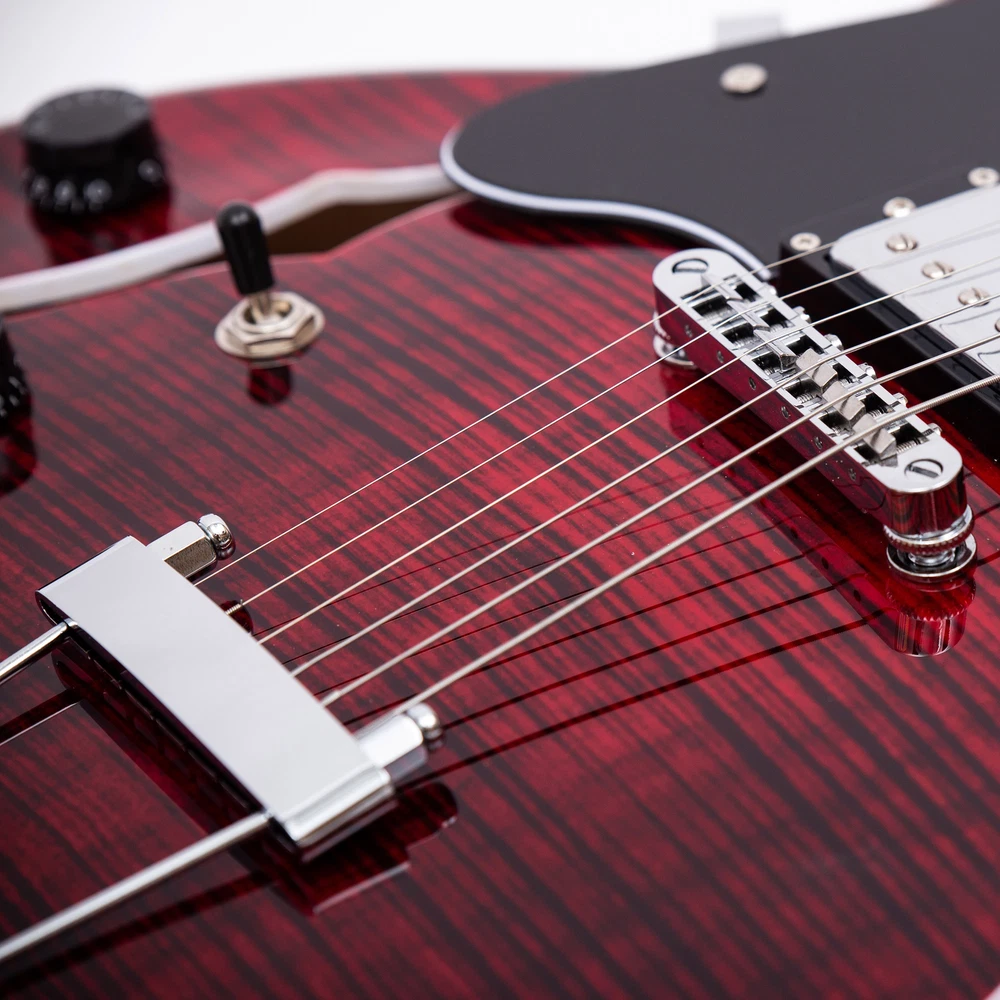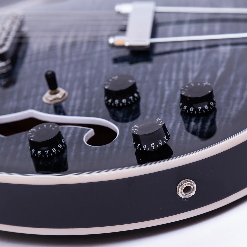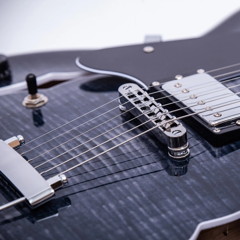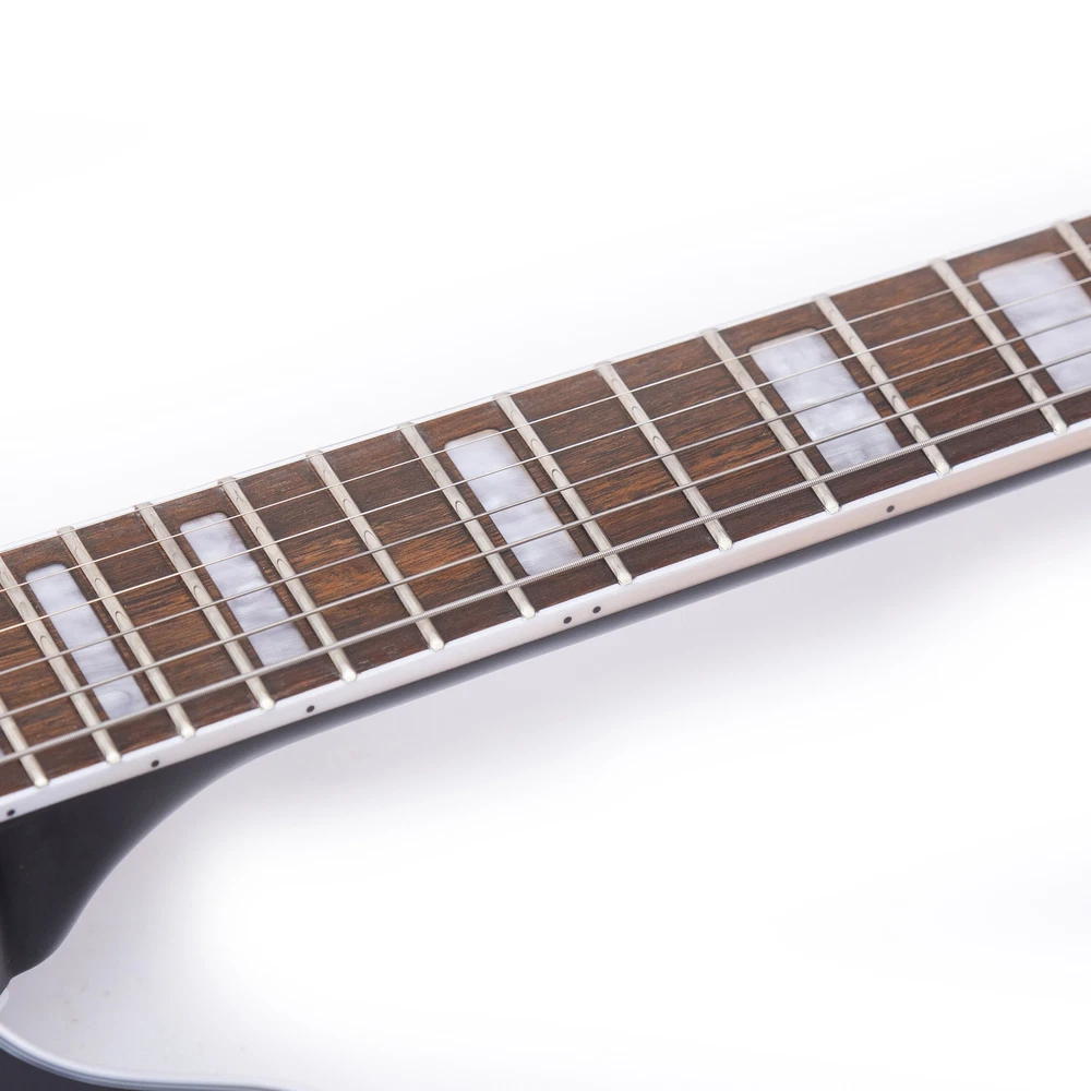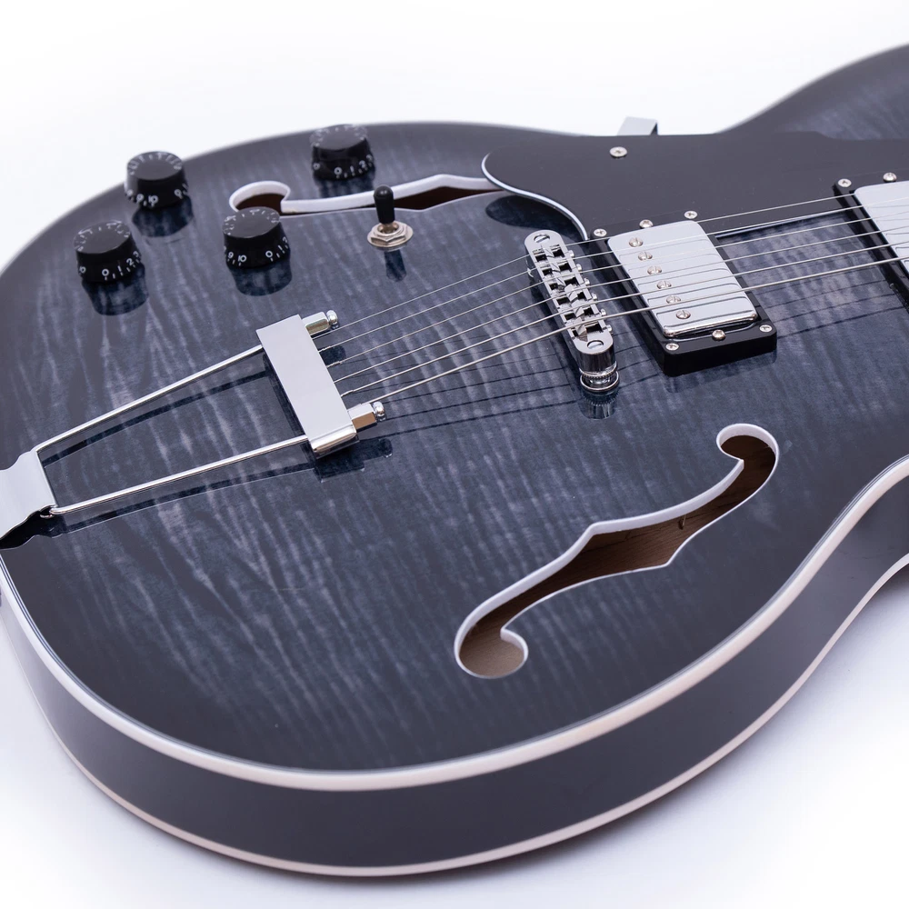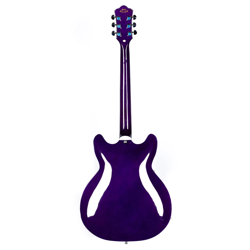 The perfect combination of unique style and left-handed design with our reverse electric guitar. The semi-hollow body made of high-quality basswood produces a warm and rich tone with excellent sustain, while the stunning maple printed design adds a touch of personality and style.Left-handed players can now enjoy a unique and inspiring playing experience with a guitar that is specifically designed for their needs. The Grote laser anti-counterfeiting label that you are getting an authentic and high-quality instrument, while the metal truss rod cover provides extra durability and protection. Designed for powerful, high-gain tones and a thicker, fuller sound, our humbucker pickups offer a level of versatility that can't be matched. Whether you're playing heavy metal, classic rock, or blues, our guitar will provide a dynamic range of sound that will have you shredding like a pro. The rosewood fingerboard on this electric guitar adds a touch of elegance and warmth to its already exceptional sound and playability. With its smooth surface and rich, resonant tone.