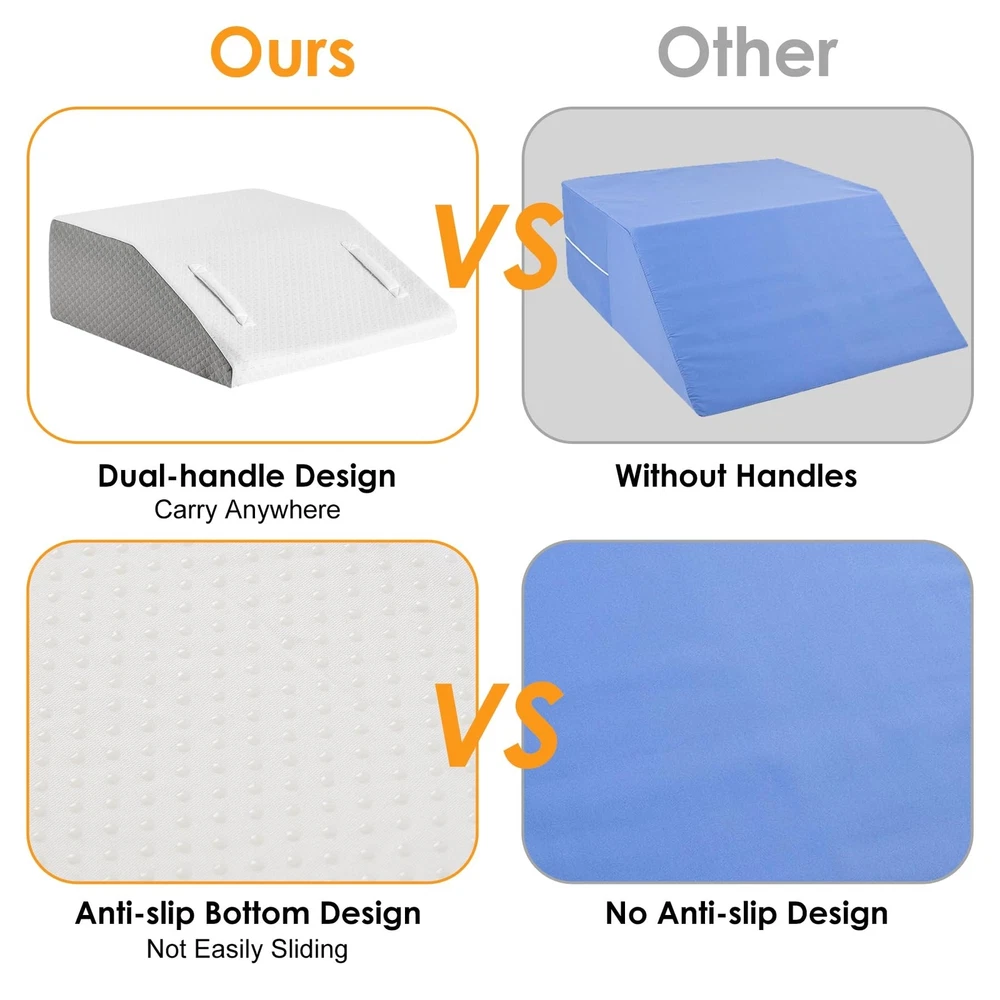 Leg Elevation Pillow for After Surgery, 8inch Foam Leg Elevating Pillow for Swelling and Blood Circulation, Leg Wedge Pillow for Sleeping, Knee Pillow for Knee Hip Ankle Pain Relief, White Product Details Size: Flat Top 8 Inch Color: White/Grey Brand: Ruqmuis MPN: RUTX8KQCBH UPC: Does not apply EAN: Does not apply Brand: Ruqmuis Special Feature: Removable Cover Color: White/Grey Size: Flat Top 8 Inch Fill Material: Foam Brand: Ruqmuis Special Feature: Removable Cover Color: White/Grey Size: Flat Top 8 Inch Fill Material: Foam Shape: Wedge Age Range (Description): Adult Recommended Uses For Product: Sleeping, Reading, Post Surgery, Sitting, Improve Circulation, Leg Swelling, Back/Shoulder/Neck Pain Use for: Whole Body Material: Foam Item Firmness Description: Soft Product Care Instructions: Machine Wash Number of Pieces: 1 Pattern: Solid Material Feature: Breathable Model Name: Leg Elevation Pillow Manufacturer: Ruqmuis Product Dimensions: 8"L x 8"W Unit Count: 1.0 Count Item Weight: 3.94 pounds Country of Origin: China Item model number: RUTX8KQCBH Date First Available: December 28, 2023 Versatile Pain Relief: Our leg elevation pillows provide versatile relief from back pain, knee pain, restless leg syndrome and post-surgery discomfort. The ergonomic design targets specific areas to alleviate various forms of discomfort. Premium Materials for Lasting Comfort: Crafted with CertiPUR-US certified foam, this wedge pillow for legs offers a perfect balance of softness and support. The two-layer foam construction ensures durability, preventing flattening over time and providing lasting comfort. Offer Comfort for Multiple Activities: Our leg support pillows are designed to enhance your experience while sleeping, reading, relaxing, or working. The adaptable design provides customized support, alleviating swelling and discomfort in the legs, knees, and feet for a personalized and versatile experience. Smart and Convenient Design: The inclusion of dual handles on the front allows for easy repositioning, making it convenient for users to adjust the leg wedge pillow according to their preference. The non-slip design at the bottom ensures stability during use. Luxurious and Stylish Design: Featuring a jacquard pillowcase, our knee wedge pillows are not just functional but also add a touch of style to your bedroom. The removable, machine-washable cover ensures a clean and elegant appearance.
