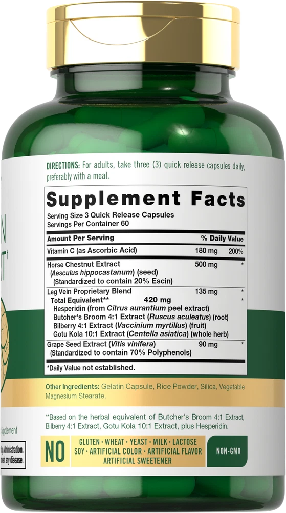 Support for Healthy Vein Function:* An active lifestyle is the best way to support leg veins. This starts with strong nutritional care and a key flavonoid compound called Hesperidin. Complete your routine today with a high-quality blend, featuring key and carefully selected ingredients and many more support factors. Carlyle Leg Vein Support:* Carlyle Leg Vein Support is the ultimate healthy leg vein supplement.* Our gluten-free and non-GMO formula features potent herbal extracts in quick-release capsules. Also included are Horse Chestnut and Grapeseed extract for additional support. Get superior value today with our 180-capsule supply! Rooted in Wellness: Our expertise in sourcing the purest ingredients combined with advanced technologies makes us proud to deliver premium, honest supplements at the best value. Carlyle Leg Vein Support* is a testament to our commitment to excellence, made with powerful ingredients rooted in wellness. Thanks for choosing us in your pursuit of living healthy. *These statements have not been evaluated by the Food and Drug Administration. This product is not intended to diagnose, treat, cure, or prevent any disease.