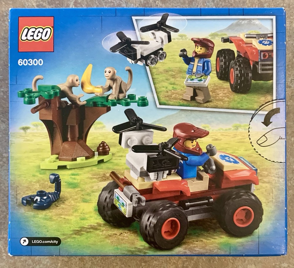 Brand:LEGOLEGO Set Number:60300Type:Complete SetNumber of Pieces:74Age Level:5+Packaging:BoxLEGO Theme:CITYLEGO Set Name:Wildlife Rescue ATVLEGO Subtheme:City Wildlife