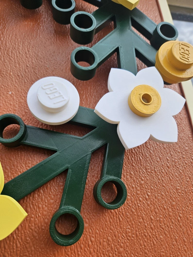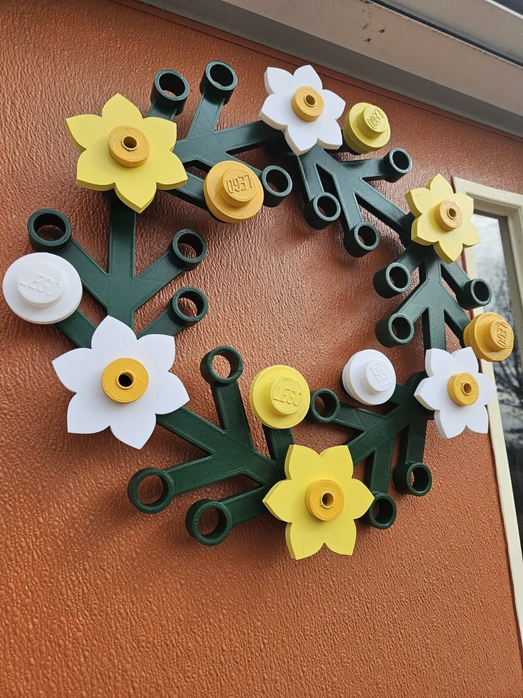 This unique wreath is a must-have for any LEGO enthusiast, gamer or young at heart. Featuring a colorful daffodil design, this 2 ft door decoration is made of high-quality plastic petals and is perfect for all occasions. Celebrate your love for SPRING with this stunning piece, made in the United States via 3D printing. Measuring 12 inches in height and width, it's perfect for both indoor and outdoor use. Whether you're looking for a gift for a loved one or just want to add a touch of fun to your home decor, this LEGO DAFFODIL wreath is the perfect choice.