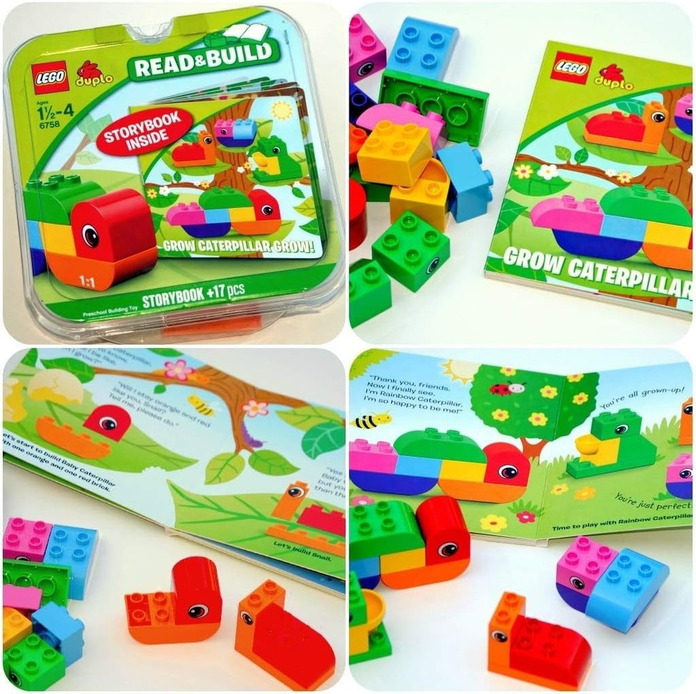 Brand New LEGO Duplo Read & Build Grow Caterpillar Grow Story Book Inside Item #: 6758 Features: Includes 3 Lego Duplo figures: Mom, Dad and child Features a buildable car and caravan, beach scene and outdoor barbecue area with parasol, table and chairs Build and rebuild the scenery for hours of fun Develop role play with this family vacation-themed set