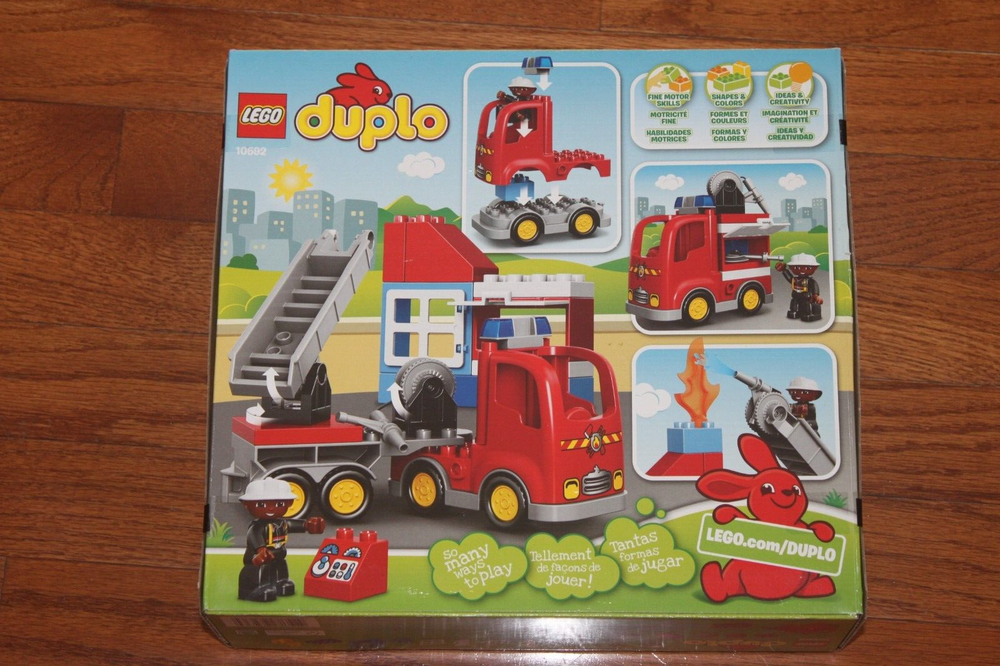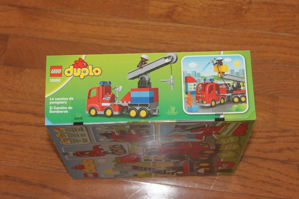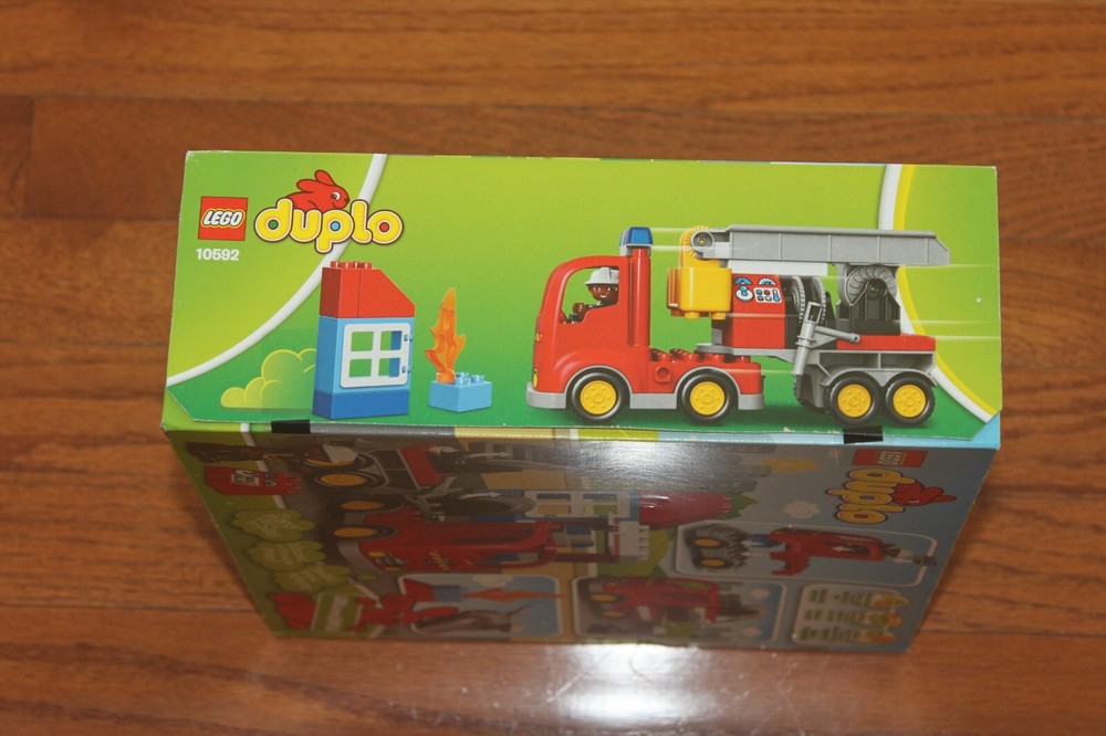 Welcome! Available is an authentic Lego Duplo Town Fire Truck 10592 (2015) 26 pieces Retired and Brand New In Box! This set was given to my son when he was little and never opened it and phased out of Duplos for smaller Legos the year after before he had a chance to enjoy it. The package is brand new and does have some minimal storage wear as shown in the pictures. The package does come with a figurine and 26 total pieces to form a firetruck. I hope this collector's playset will make someone else's child very happy. The toy will ship within 2 business days and comes from a pet, smoke free, and very clean house. Sorry, no international orders are accepted at this time and will only ship to United States destinations. I will combine shipping if you purchase or win/buy multiple items and please contact me so I can create an adjusted invoice. I currently don't ship to Puerto Rico, Hawaii, Alaska or APO/FPO and not responsible for the loss or damage of shipping uninsured items or post office errors. The item is final sale and no returns will be accepted at this time, but your satisfaction is my number one priority so if you have any concerns, please reach out to me to resolve before opening a case or leaving feedback. Please check out my other listings that will be coming soon as i will have a lot more name brand clothes as well as toys my kids have grown out of right in time for Christmas. Thank you for looking and have great day!!
