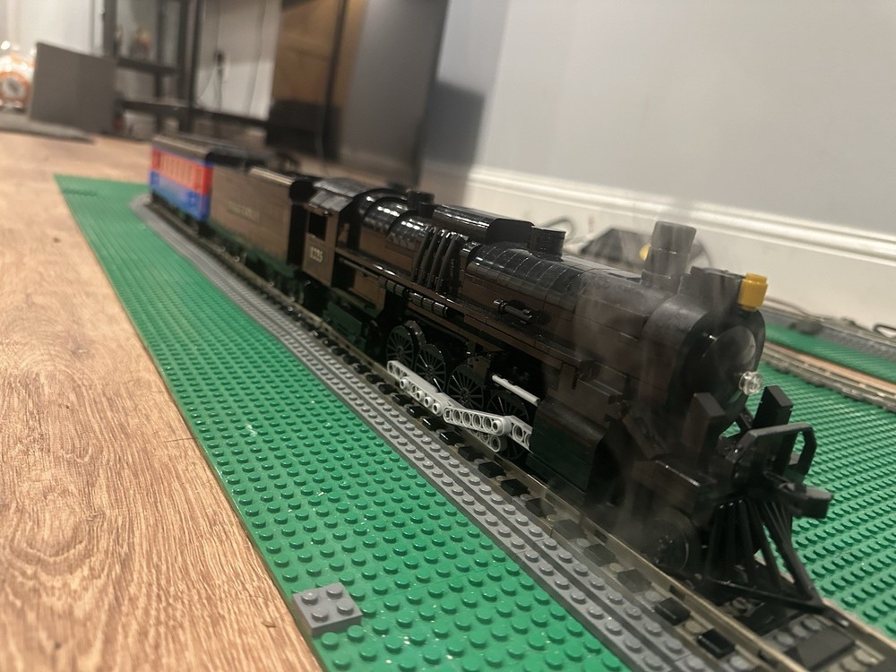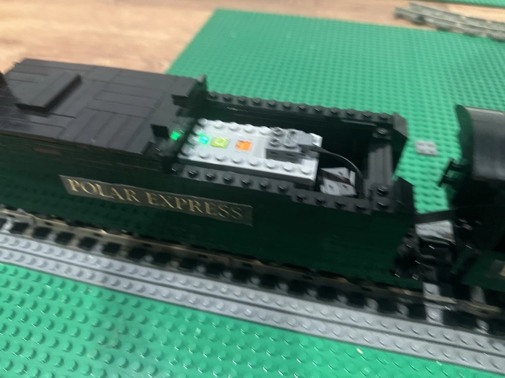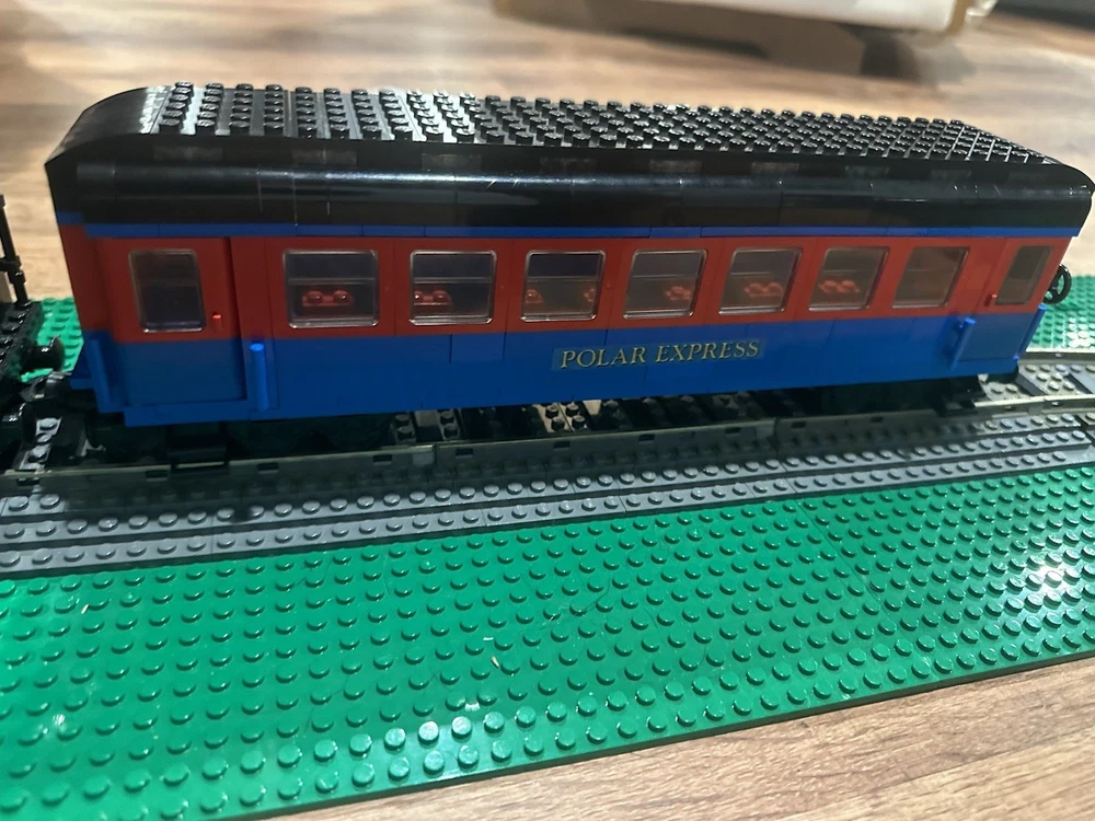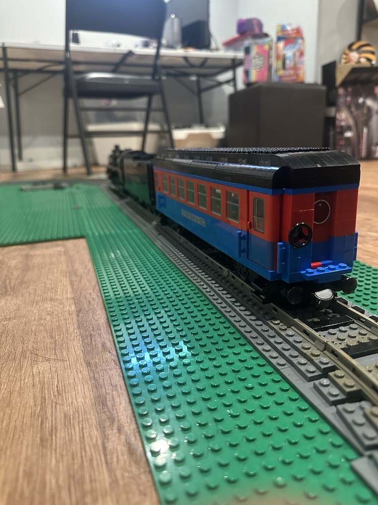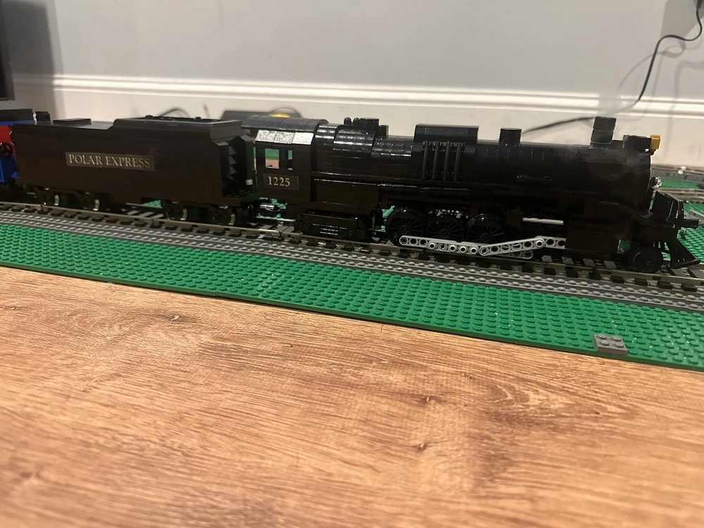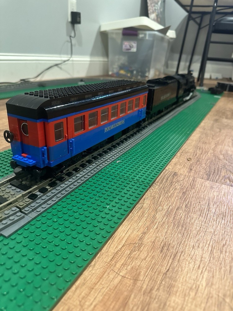 Here I am selling a custom built Lego Polar Express train MOC steam locomotive for sale it includes the engine with a working smoke stack and the coal car and one passenger car this does not include the train track layout!!!. If you have any questions please feel free to contact me if curious about mailing I can do shipping or in person for the item if sent out mailing process if damaged and or brakes apart or lost I am not responsible for it I will make sure it is well secured & all sales are final!!. When the train is running around the tracks It won’t goes as fast because how heavy it is you can probably switch to motorized wheels instead of the 9V motor to make much more faster!?