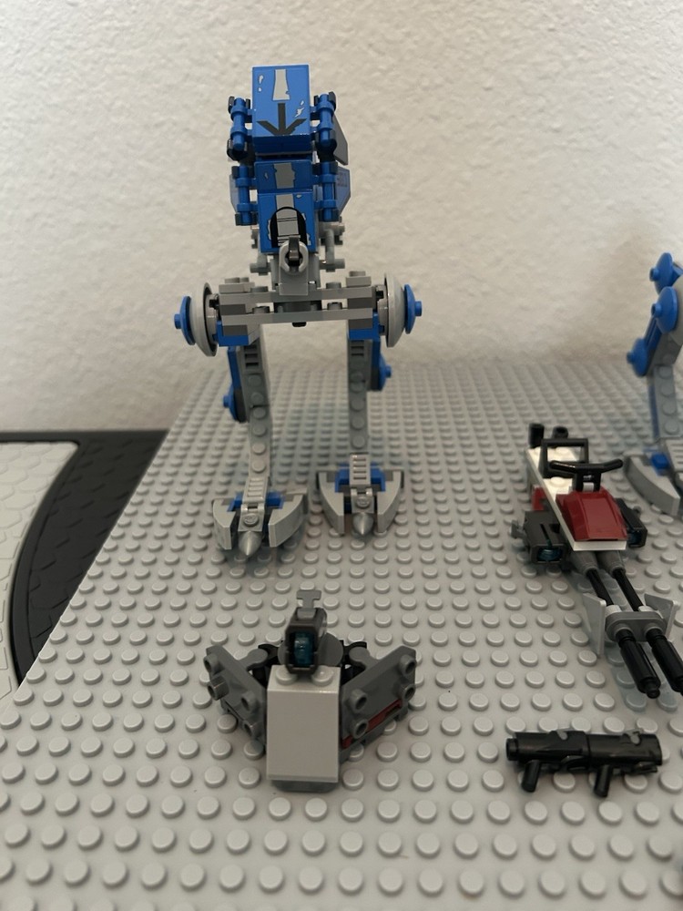 The Lego Star Wars Set Lot includes 2 complete 501st AT-RTs, a speeder, barricade and 10 stud shooters.