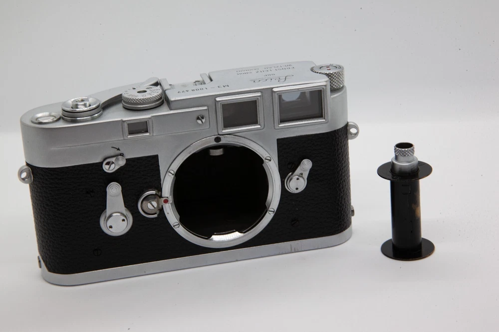 Up for sale is a Leica M3 Single Stroke 35mm rangefinder camera. This camera works wonderfully. I have film tested it myself, as this was my main film camera until I got an M2. The viewfinder looks really clean and clear. There are some scratches on the top and bottom plate, and paint rubbed off a small area(s) on the back film door, which are to be expected from a camera this old. Everything functions well. Seems to have been previously modified to focus down closer than what is normal on an M3. Has not been CLA'd, but it also has never let me down. All shutter speeds work correctly, although, I have no way of knowing how accurate they are since I do not have the equipment to test that. Take a close look at the pictures, since they will be part of the description for this camera. Please do not hesitate to reach out if you have any questions.
