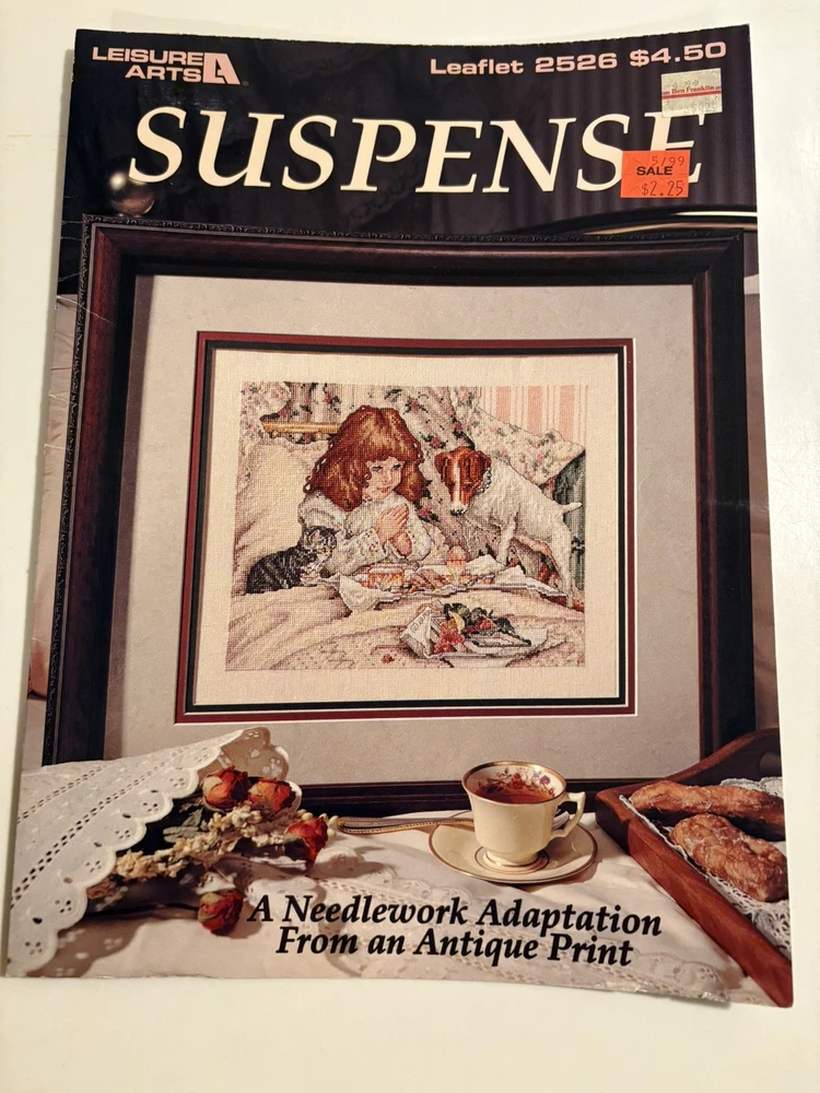 Leisure Arts SUSPENSE Cross Stitch leaflet #2526 features a charming design featuring a girl and her dog and cat. Proudly made in the United States, this non-modified, original Leisure Arts product is a must-have for any craft enthusiast looking to add to their collection. The leaflet is a high-quality pattern that is sure to inspire and engage, bringing the joy of needlecraft to life. Smoke free/pet friendly home.