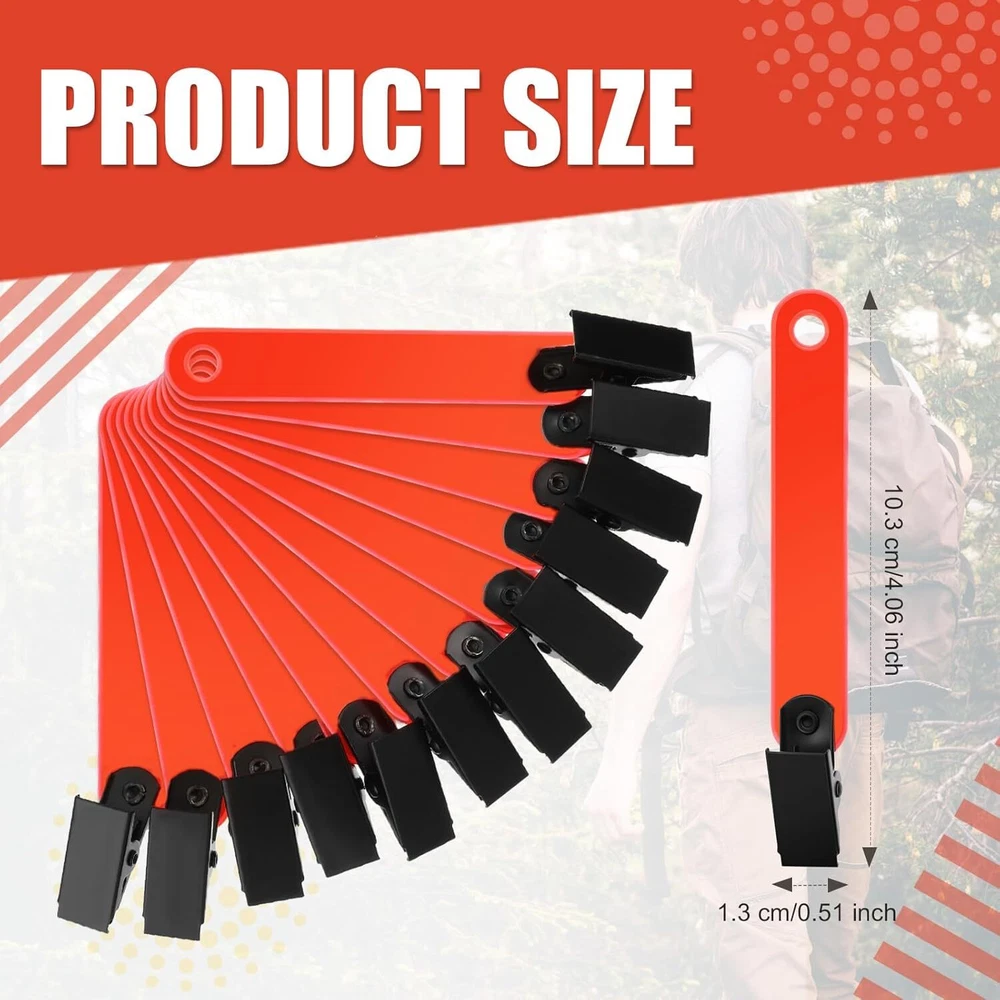 Leitee Trail Markers Reflective Tree Tacks Hunting Fluorescent Orange Product Details Item Package Dimensions L x W x H: 9.88 x 7.91 x 0.79 inches Package Weight: 0.19 Kilograms Brand Name: Leitee Color: Fluorescent Orange Number of Items: 48 Manufacturer: Leitee Part Number: FDE-Leitee-1733 Included Components: 48 x Trail markers Outer Material: plastic, iron plastic, iron Serviceable and Lasting: the trail markers for trees are made of quality plastic and iron, reliable and sustained, not easy to deform or break, and can be kept for a long time; The surfaces of them are smooth and comfortable to touch, so you do not need to worry about scratching your fingers Ideally Reflective Accessories: these hunting reflective trail markers are available in fluorescent orange as the main color, conspicuous in daytime and can reflect light at night, practical and easy for you to apply, saving time and energy Proper Dimension to Apply: the size of these trail markers for trees is about 10.3 x 1.3 cm/ 4.06 x 0.51 inches, appropriate and eye catching for you to use, bringing you a nice and satisfying experience Adequate to Meet Your Needs: you will receive 48 pieces of hunting trail markers in total; The quantity is sufficient for you to apply and replace, and can easily meet your daily use and other requirements Assorted Occasions to Apply: these trail markers reflective are applicable for diverse kinds of occasions, including but not limited to hunting, hiking, climbing, camping, running, backpacking and others