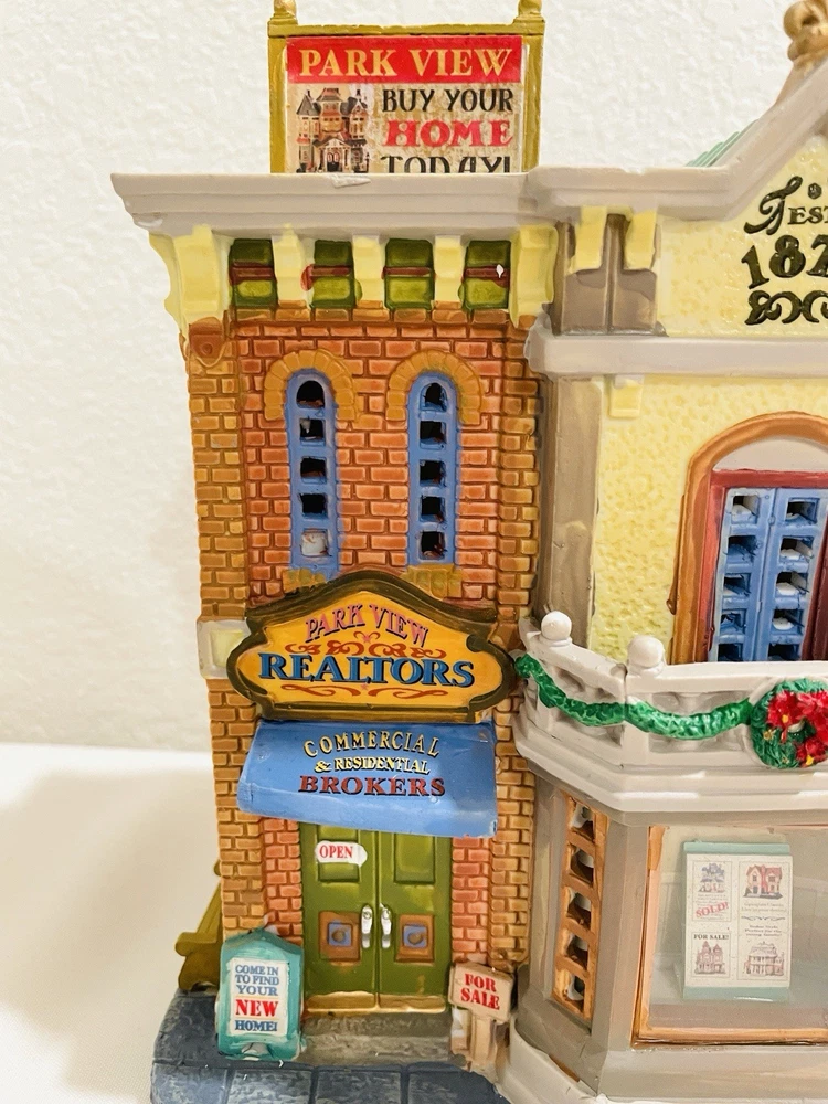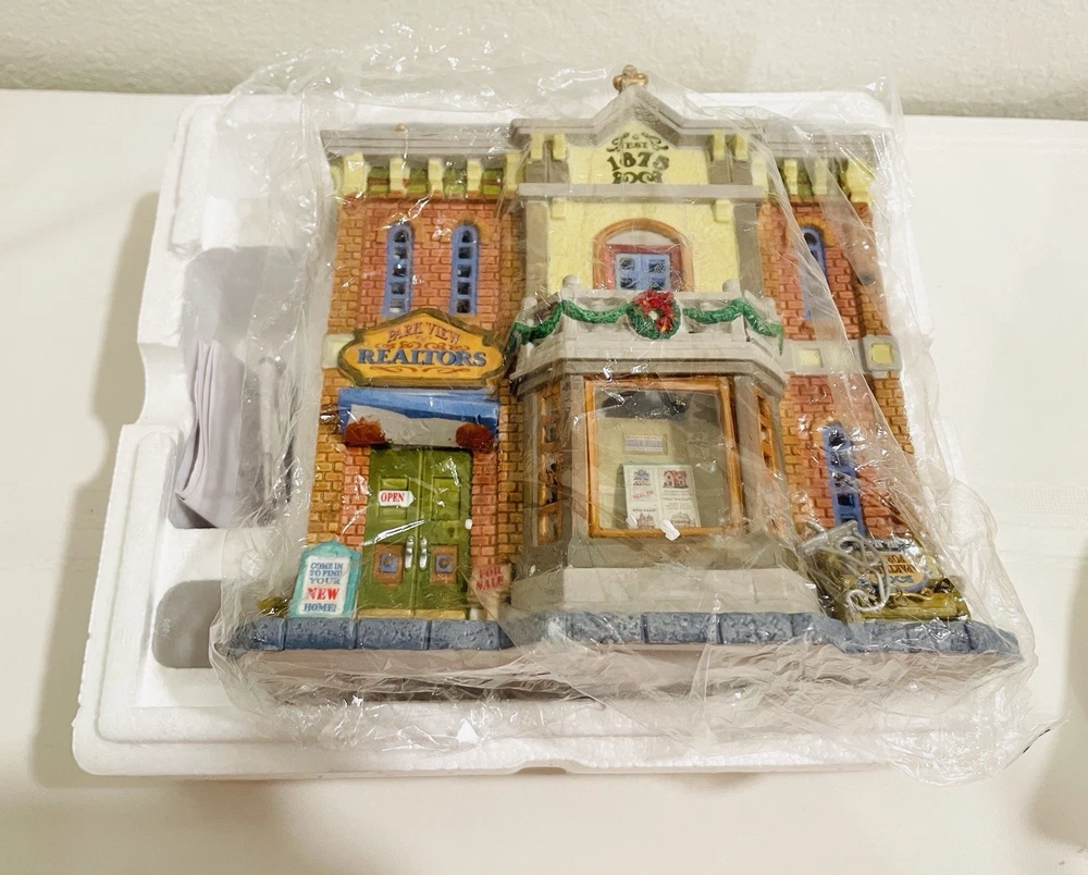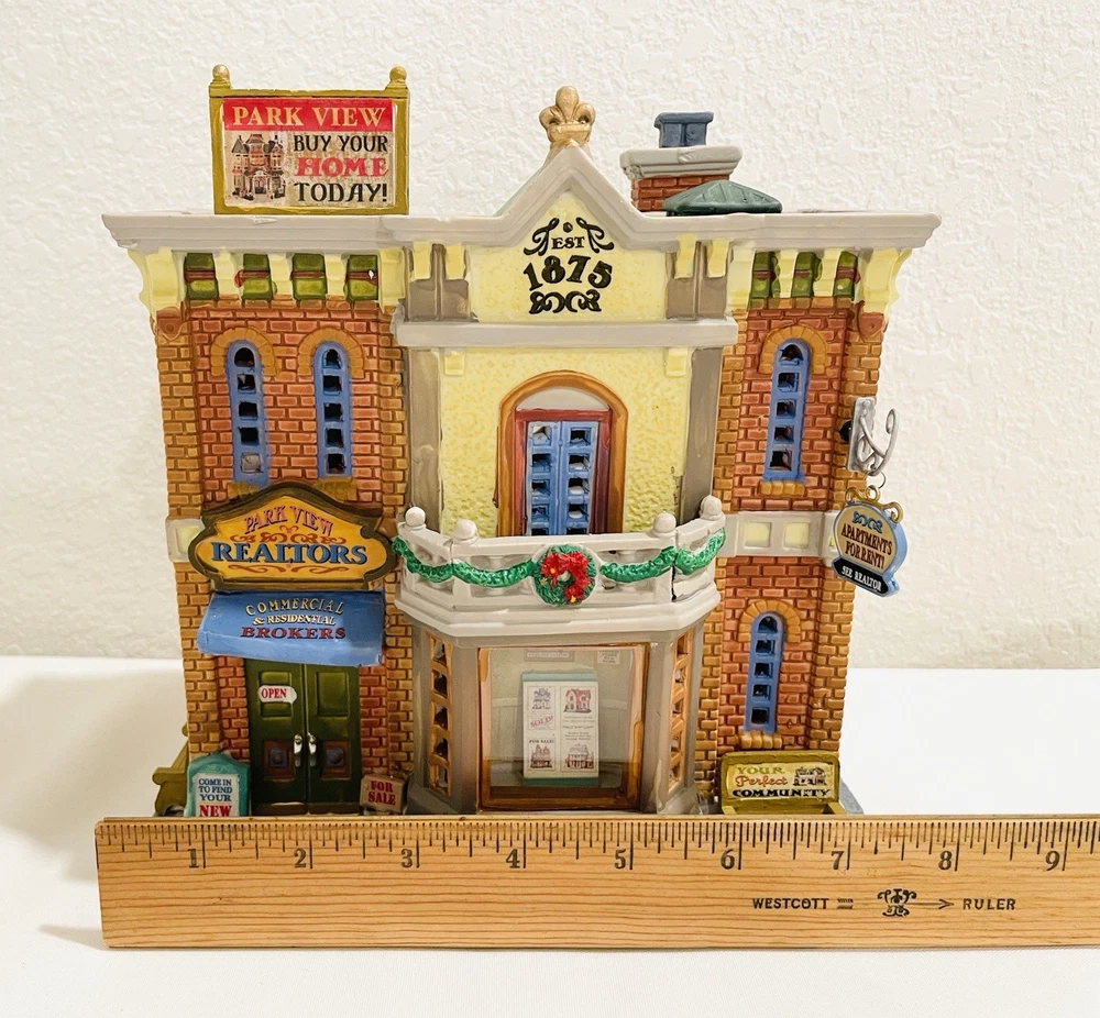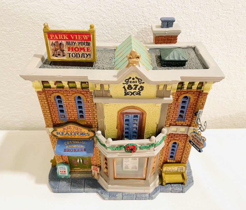 This rare and collectible Lemax 15253 Park View Realtors Building is a must-have for any serious collector. The building is designed with intricate details and features a retired status, making it a valuable addition to any collection. *NO LIGHT CORD IN THE BOX* Thank you for taking the time to view our items. If you have any concerns please ask prior to your purchase, all questions are welcome. By making a purchase, the buyer explicitly recognizes and accepts both the condition and material of the item.