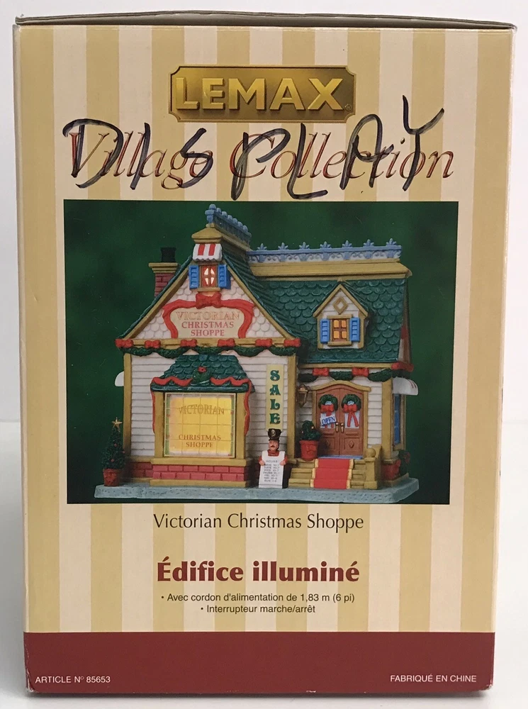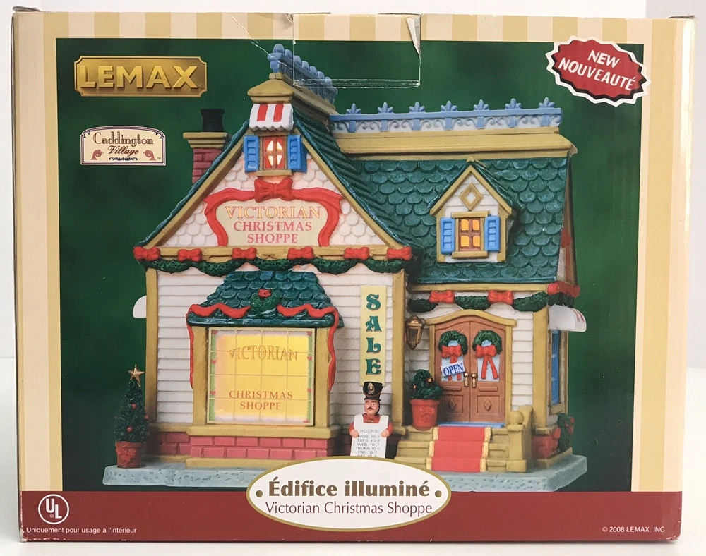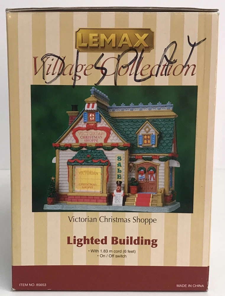 Lemax Caddington Village Christmas Victorian Christmas Shoppe - No Light Cord The building is in great condition. No light cord. The box has some writing on it. Please see photos for details.
