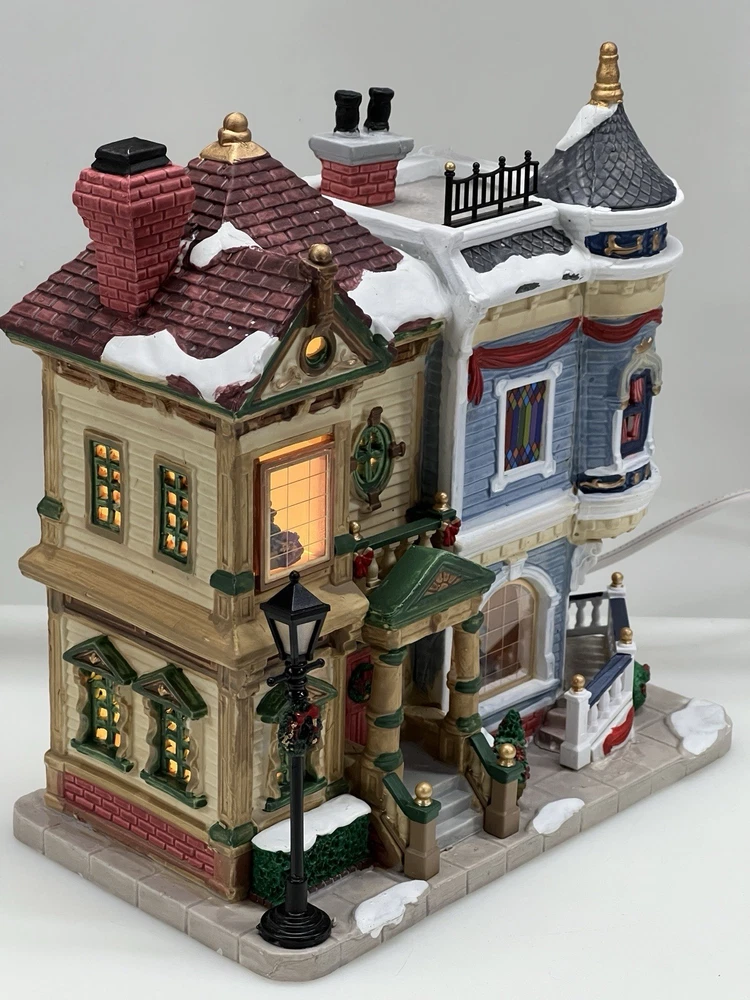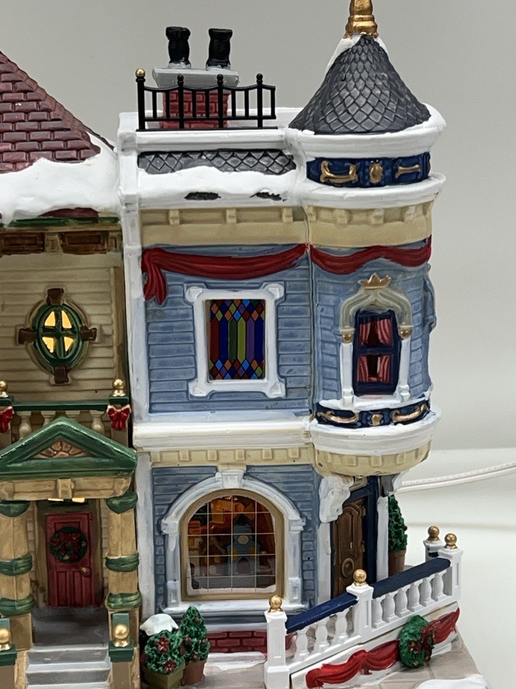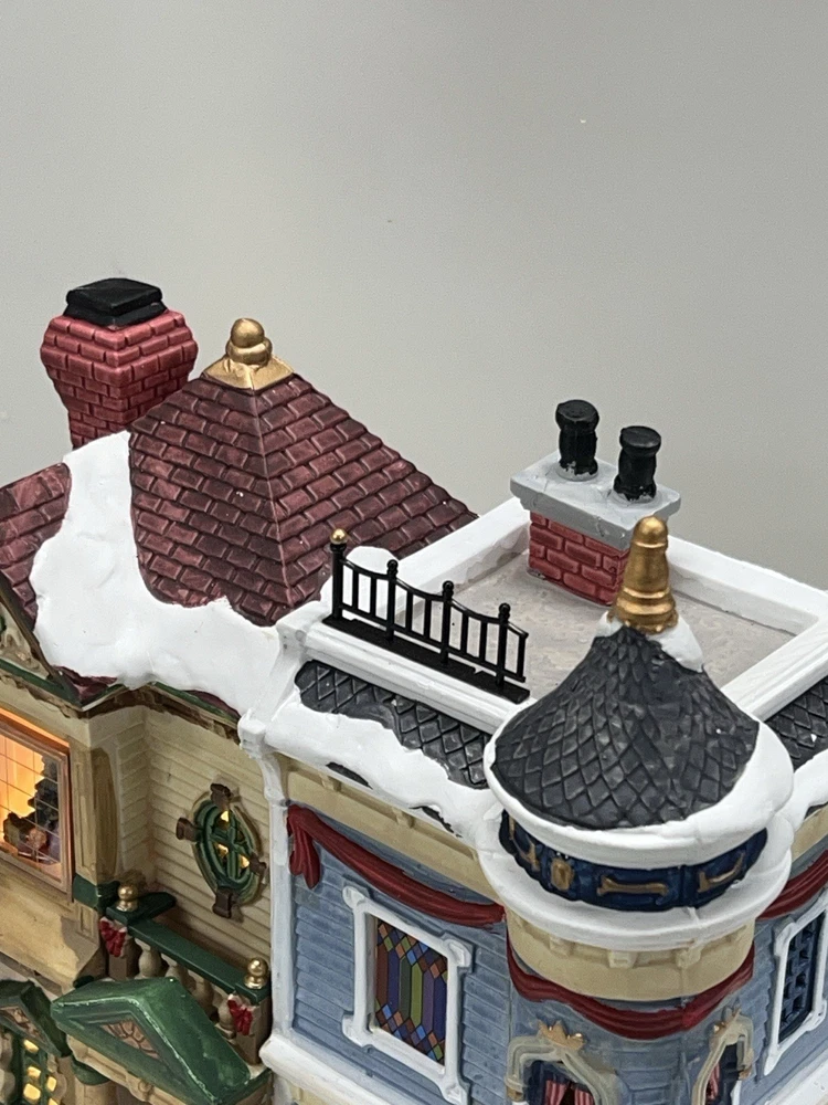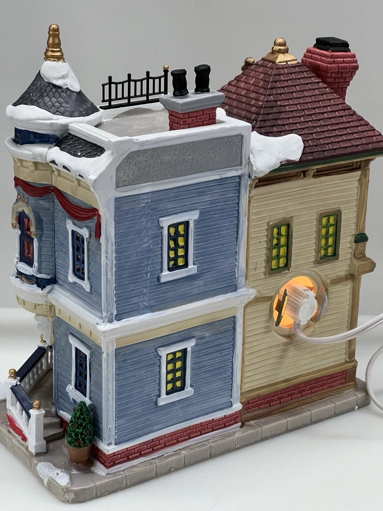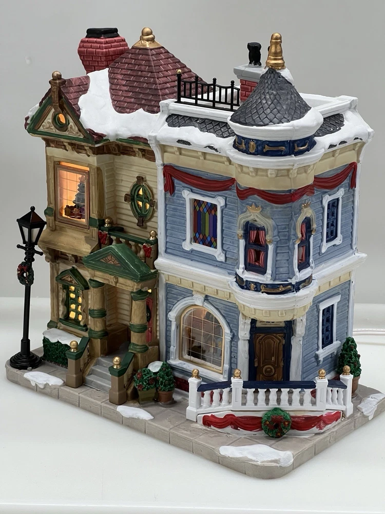 This is a beautiful Lemax "Christmas In The City" 25th Year Anniversary Lighted Building. It features a whimsical Victorian home with hand-painted details and a multicolor finish. The asymmetrical building is illuminated to create a 3D effect, making it a perfect addition to any Christmas village display. This large porcelain piece is boxed and retired, making it a great collector's item. It was manufactured in 2018 in China and is suitable for adults. The building measures 9" in height, 8" in length, and 5" in width. It is an original piece from the 21st century (2000-Now) and is part of the Lemax Christmas In Just a beautiful piece to add to your seasonal village. Comes with all clean original packaging including cord & light . Note : one section of small black fencing missing on roof top otherwise excellent pristine condition.