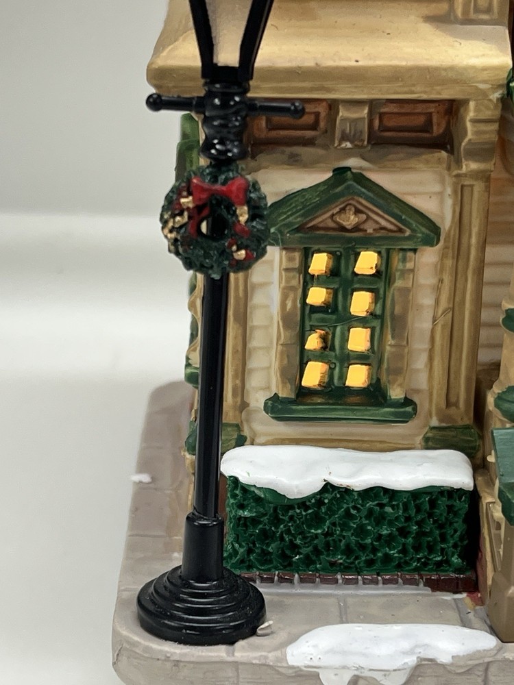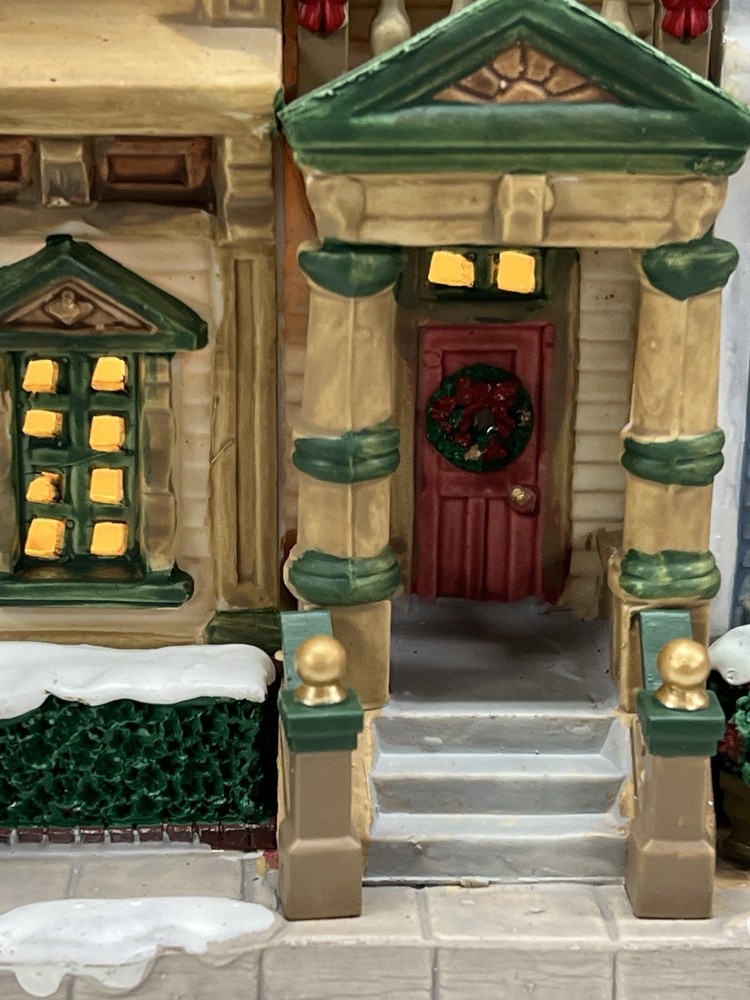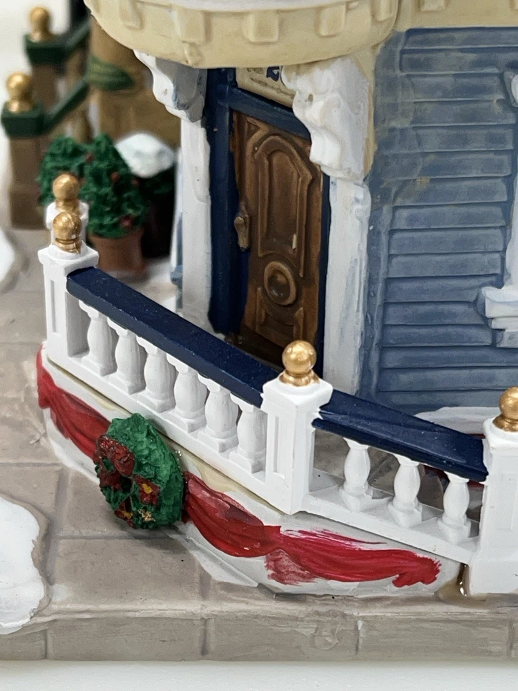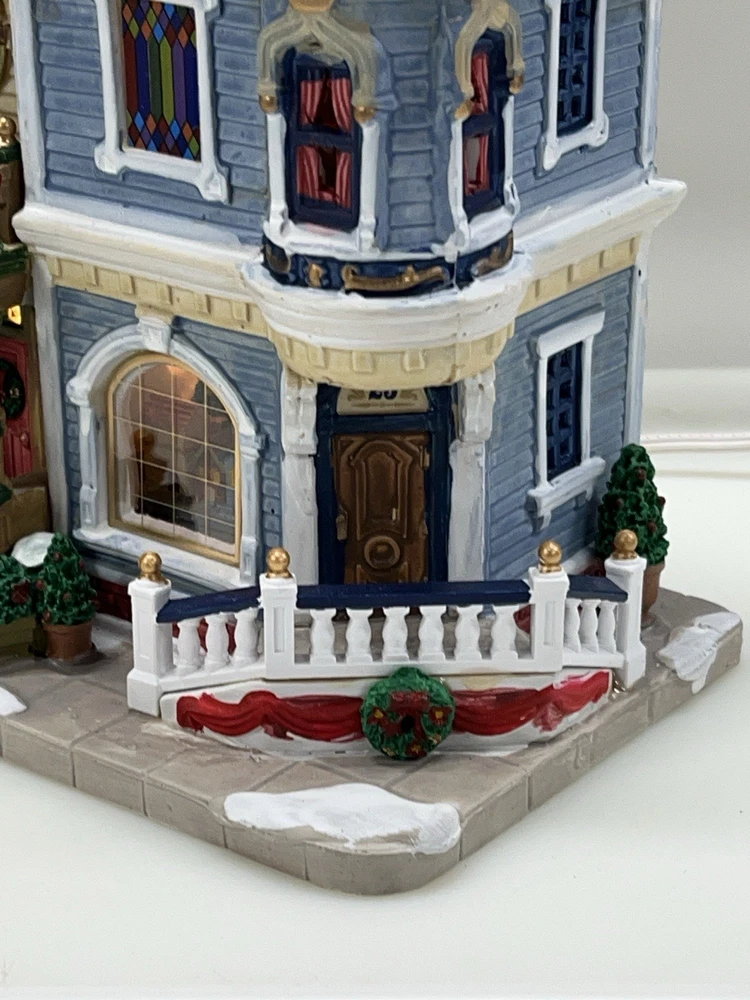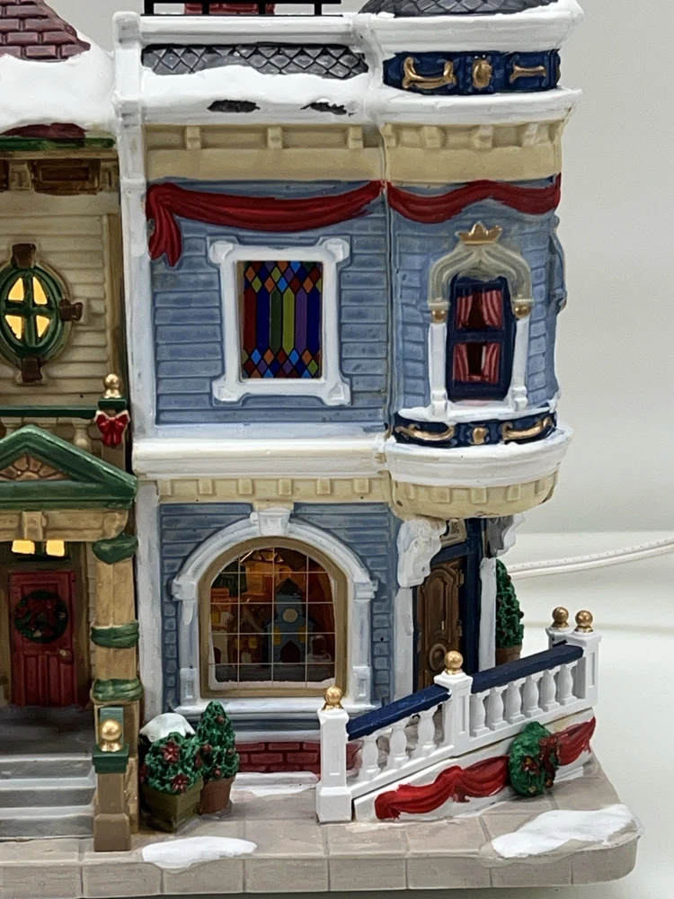 This is a beautiful Lemax "Christmas In The City" 25th Year Anniversary Lighted Building. It features a whimsical Victorian home with hand-painted details and a multicolor finish. The asymmetrical building is illuminated to create a 3D effect, making it a perfect addition to any Christmas village display. This large porcelain piece is boxed and retired, making it a great collector's item. It was manufactured in 2018 in China and is suitable for adults. The building measures 9" in height, 8" in length, and 5" in width. It is an original piece from the 21st century (2000-Now) and is part of the Lemax Christmas In Just a beautiful piece to add to your seasonal village. Comes with all clean original packaging including cord & light . Note : one section of small black fencing missing on roof top otherwise excellent pristine condition.