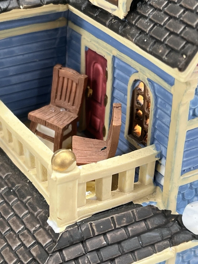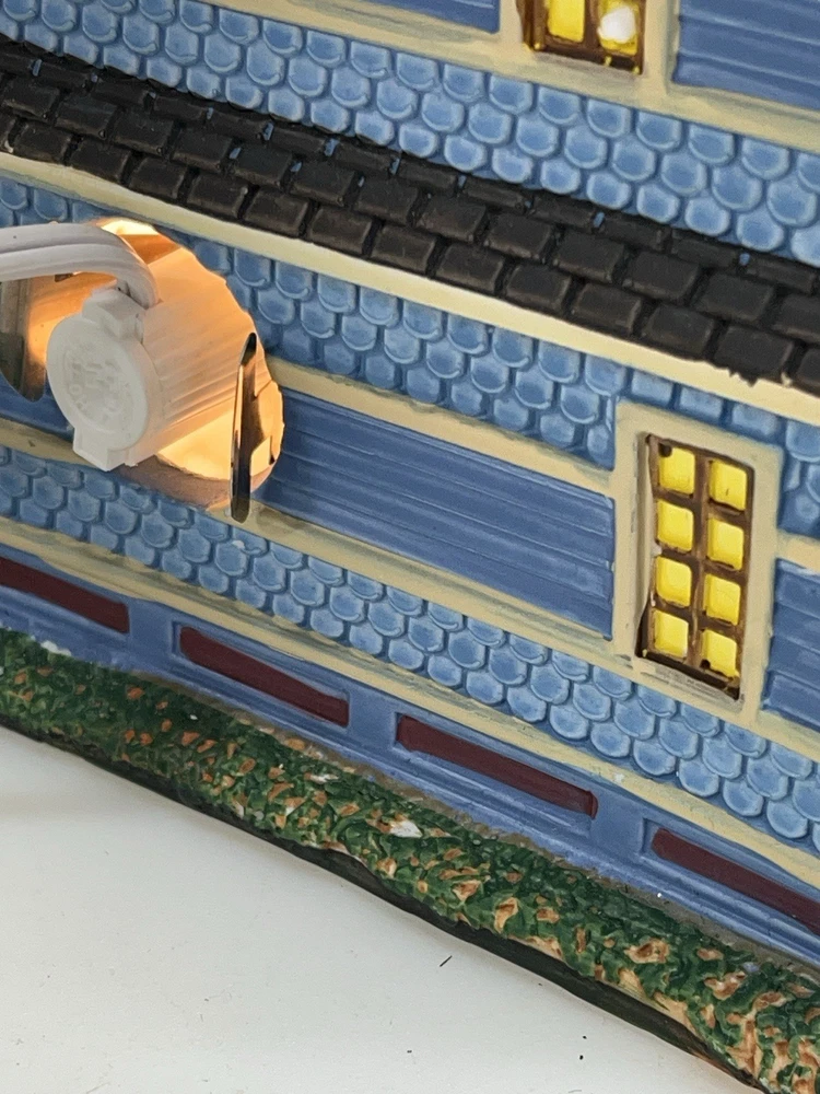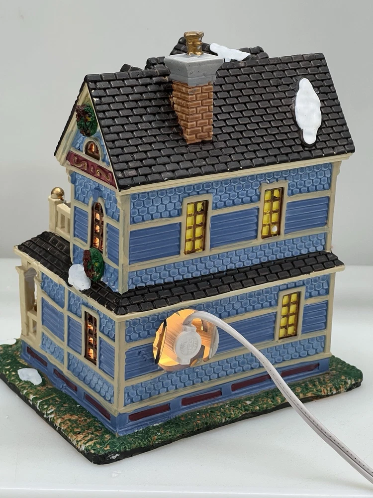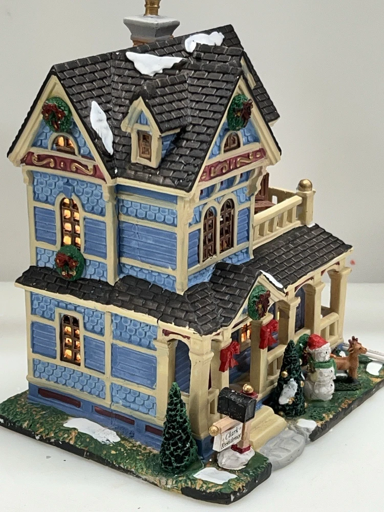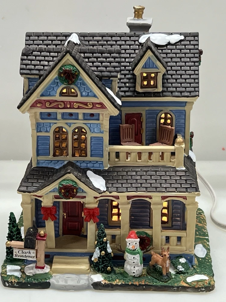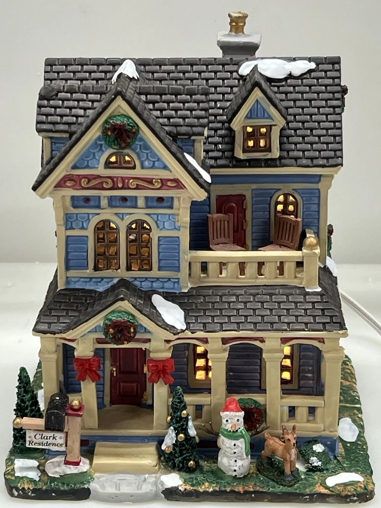 The Lemax "Clark Residence" Porcelain Lighted House is a charming addition to any Christmas Village display. This traditional-style house, featuring intricate carvings and illumination, is crafted from porcelain and measures 7" in length, 8" in height, and 5-1/2" in width. The multicolor finish and all-occasion appeal make it suitable for teens and adults alike. This collectible item, part of Lemax's Village collection, captures the essence of the 21st century with its original design and seasonal theme. Perfect for decorating any room during the holiday season. Note : fissures on bottom of house is where the factory joined the two pieces together. I’ve seen this on many occasions and in no way does it impair the integrity of the piece . Comes with all original packaging including cord & light .