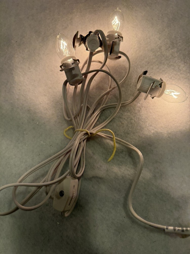 Will not guarantee life of bulbs due to used condition. Bulbs are working and tested at time of sale. C7 4 Socket Light Cord Set Dept 56 Lemax Christmas Village Sets On/Off Switch Set A13
