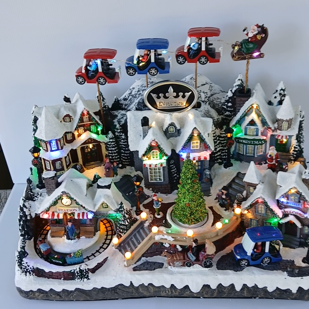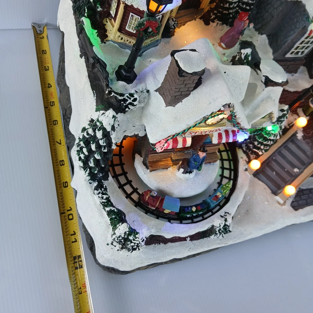 This is not a branded item but it will fit in with most brands today. Lighted with motion and music. Music can be muted in mode 1. Item is pre-loved, includes everything shown and in working order. The lights will flicker slightly while powering on and off only but will work just fine once set. The cart on the bottom is loose from base as shown but can be placed back in with ease if desired. I used to put small figures in the open area. Comes as shown, no returns once shipped. Thanks for looking!