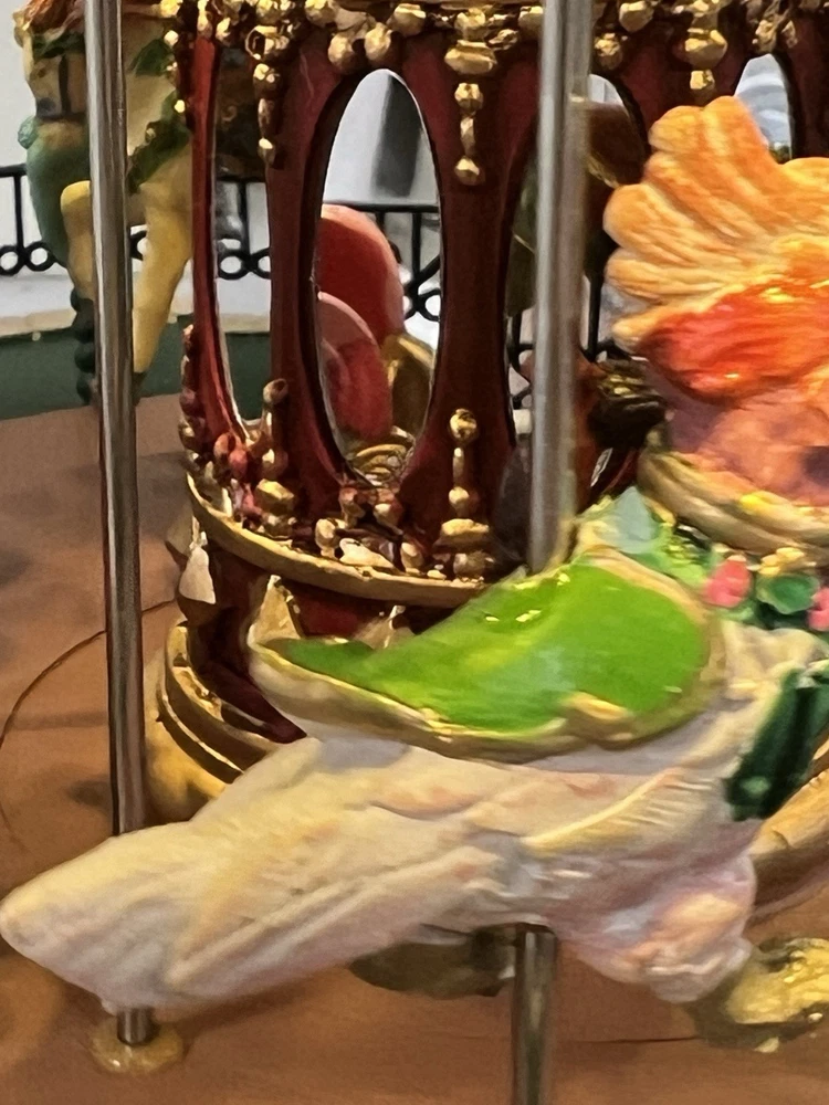 Tight shipping packing ensured this carousel would arrive without damage. This is a beautiful, mint condition carousel addition to my large Christmas market setting. Seller was very responsive to my many questions. I will be watching his items.