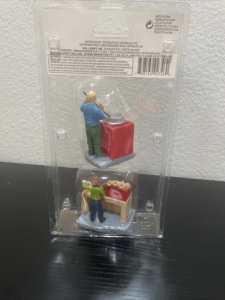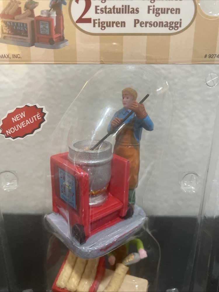 The Lemax KETTLE CORN STAND is a 2-piece Holiday Village Carnival Train Accent Set perfect for adding a festive touch to your holiday décor. Made of resin and featuring a colorful multicolor design, this set includes a train subject with a unique carnival theme. The item is part of the Lemax brand's Carnival Figurines series and is a part of the Snow Village collection, making it a charming addition to any room in your home. With excellent packaging and never removed from its original package, this set is a collectible item that captures the spirit of a carnival, fair, or amusement park atmosphere.