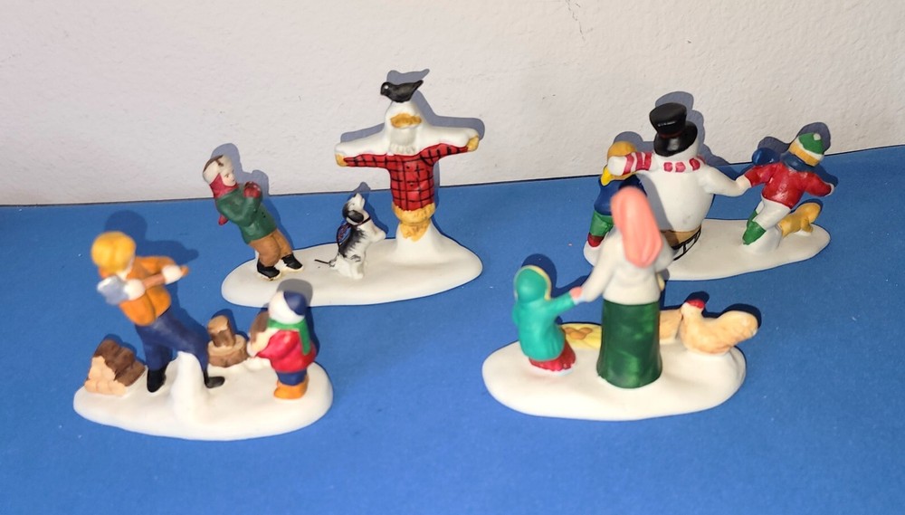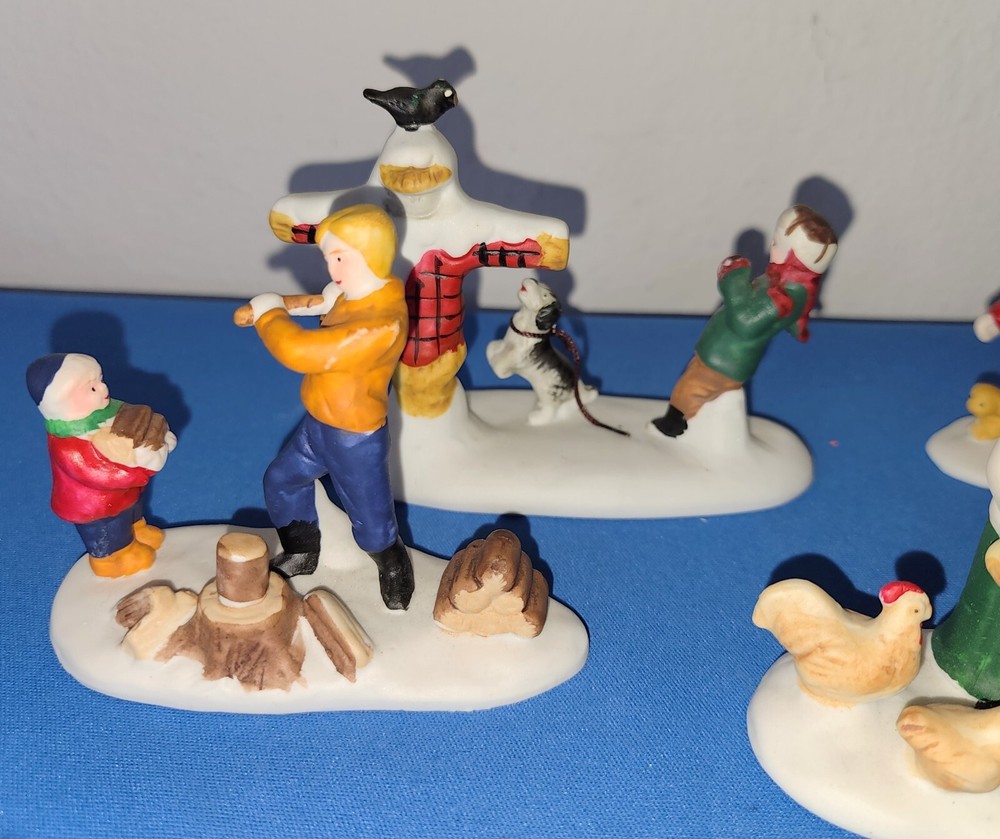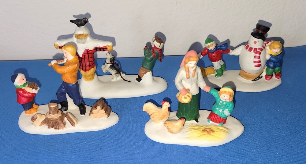 4 Lemax Accessories Chopping Wood, Our Snowman, Gathering Eggs, Forgotten Summer All are in Good to Very Good Condition. Expect minor Flaws Years Made 1993, 1996, 1997