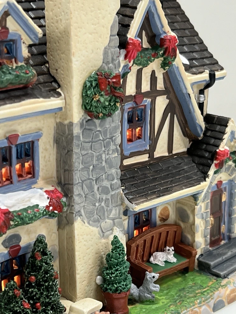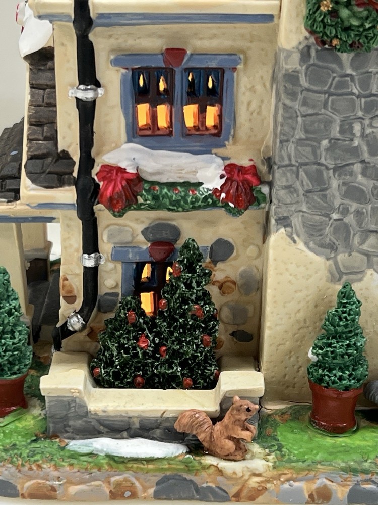 The Lemax Lighted Christmas Village "Morrison Manor" #75221 is a beautifully painted ceramic house in an asymmetrical shape, depicting a whimsical country home perfect for Christmas village displays. This American-style residence features a multicolor design and stands at 8 inches in length, 7 inches in height, and 5 inches in width. Manufactured in 2017, this retired piece from Lemax is suitable for any room and adds a festive touch to your holiday decor with its lighted house design. The Lemax Morrison Manor is a charming addition to any Christmas Village collection, offering a unique and detailed representation of a seasonal, period-inspired home. Absolutely incredible detail & color ! Perfect pristine condition! Comes with all original packaging including cord & light .