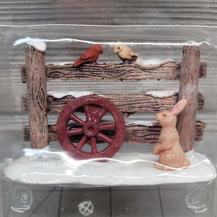 This charming rustic fence adds so much life to my Christmas village! The little rabbit and birds are adorable, and the red wheel gives it a cozy farmhouse feel. The resin construction is sturdy yet detailed—perfect for bringing a miniature scene to life. It blends beautifully with my Lemax collection and creates such a warm, nostalgic vibe. Definitely a must-have for village displays!